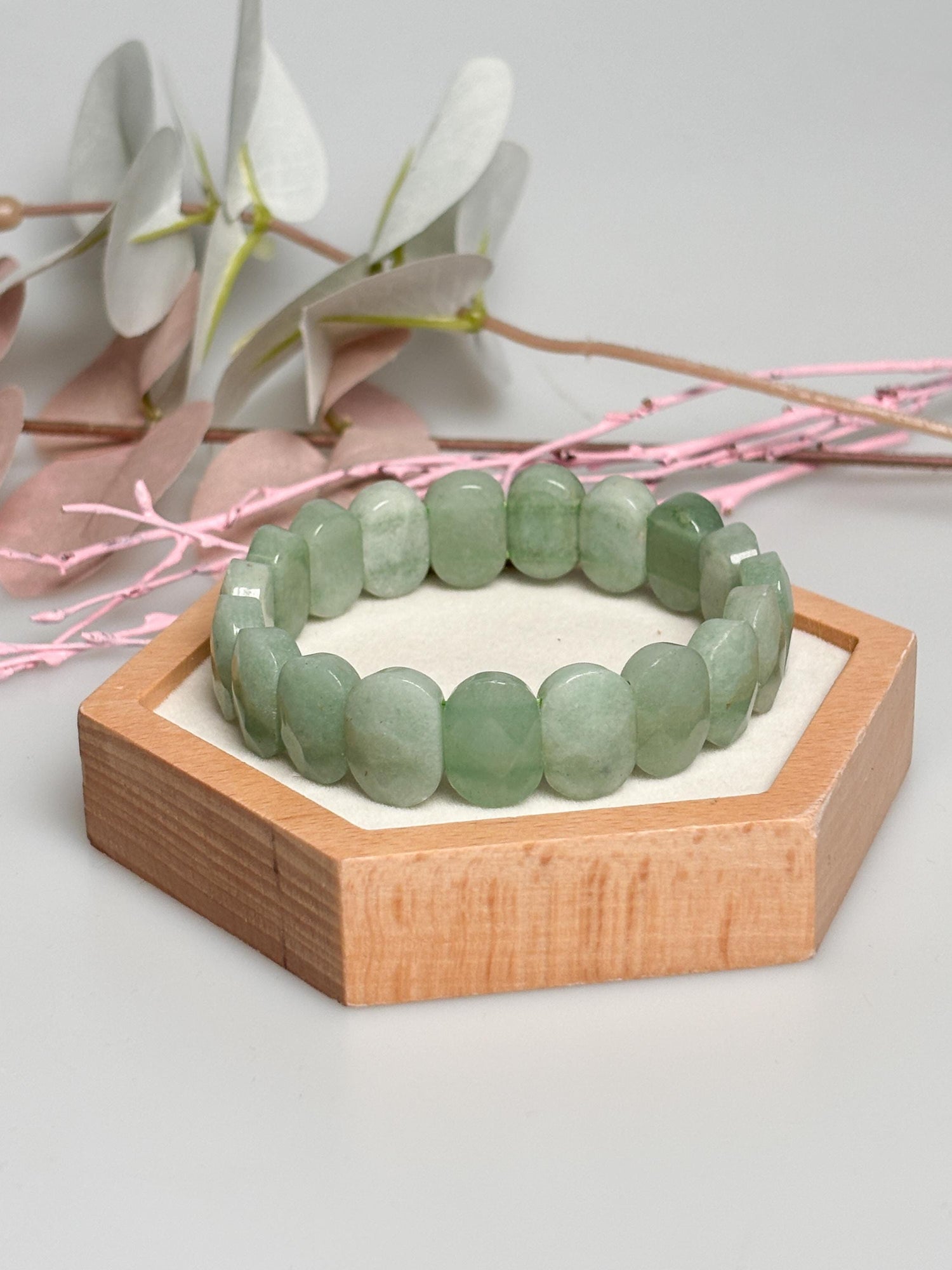 Grüner Aventurin Armreif mit facettierten quadratischen Perlen, weich poliert, ca. 1,5 × 1,1 cm