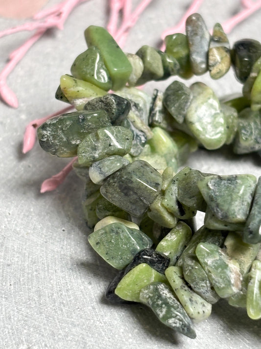 Serpentin Splitterarmband elastisches Edelstein Armband ca. 17,5 cm, grüner Naturstein Schmuck, Kristall Armband 8 mm