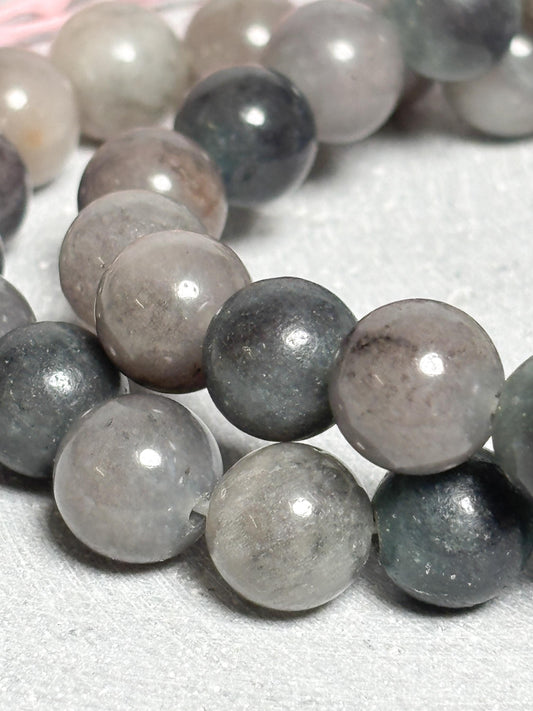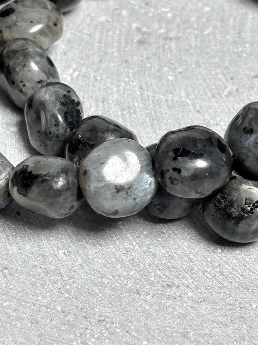 Larvikit Armband elastisches Perlenarmband ca. 17,5 cm mit 9 mm Nuggets, Edelstein Schmuck in Grau mit Schimmer