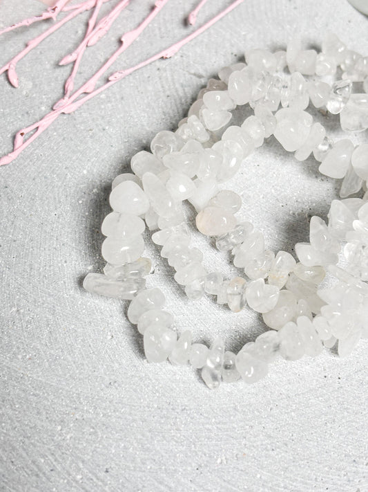 Bergkristall Splitterarmband elastisches Edelstein Armband ca. 17,5 cm, milchig klar, Kristall Schmuck, Naturstein Armband 8 mm