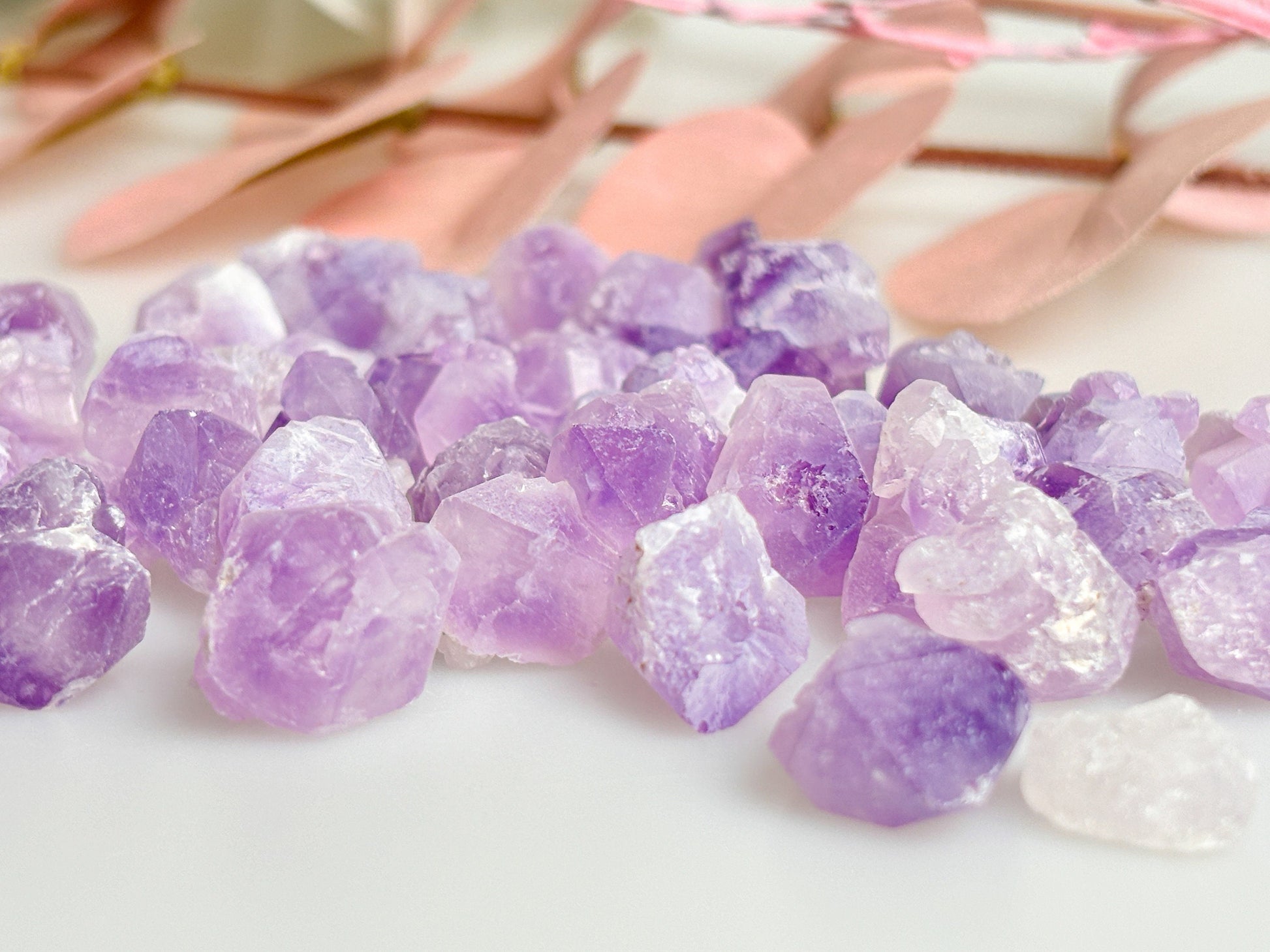 Amethyst rough stone chips small – Perfect for water energization & decoration – Energetic healing stones for the home