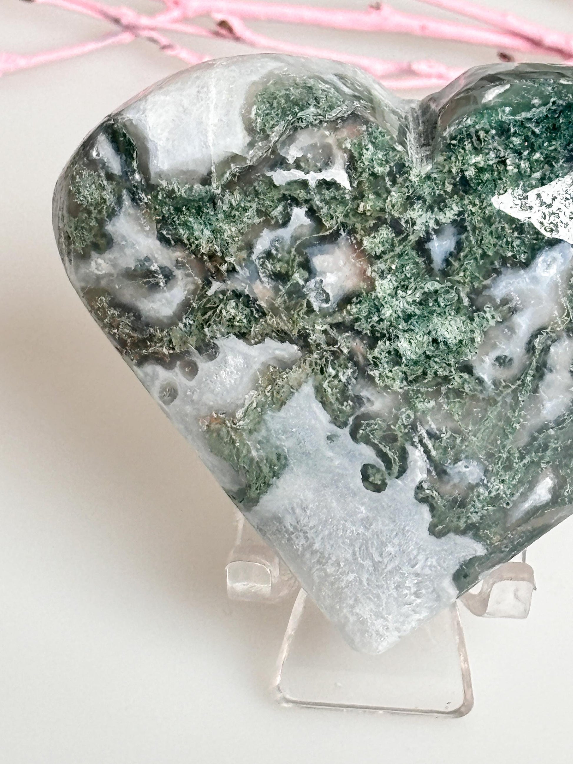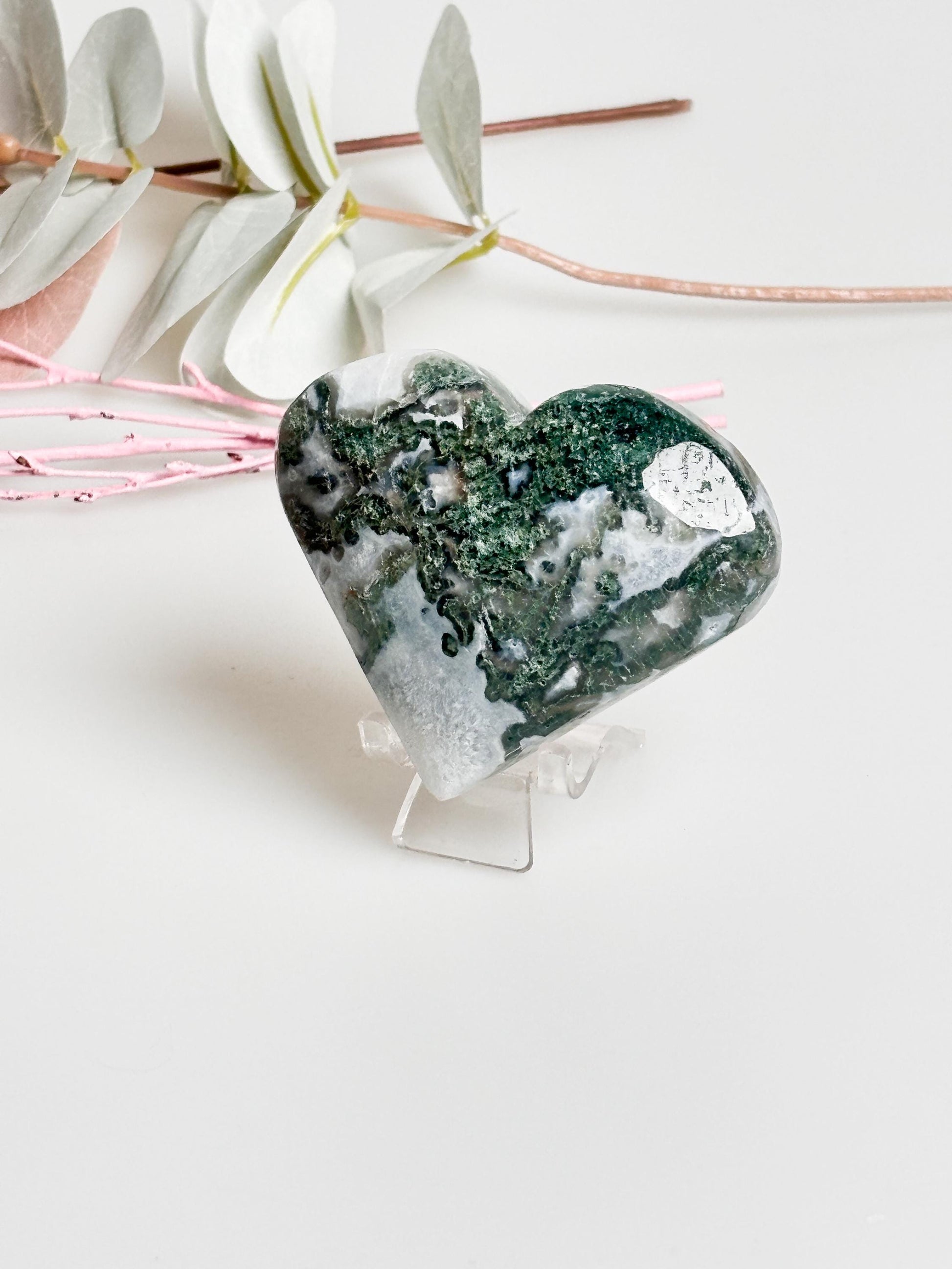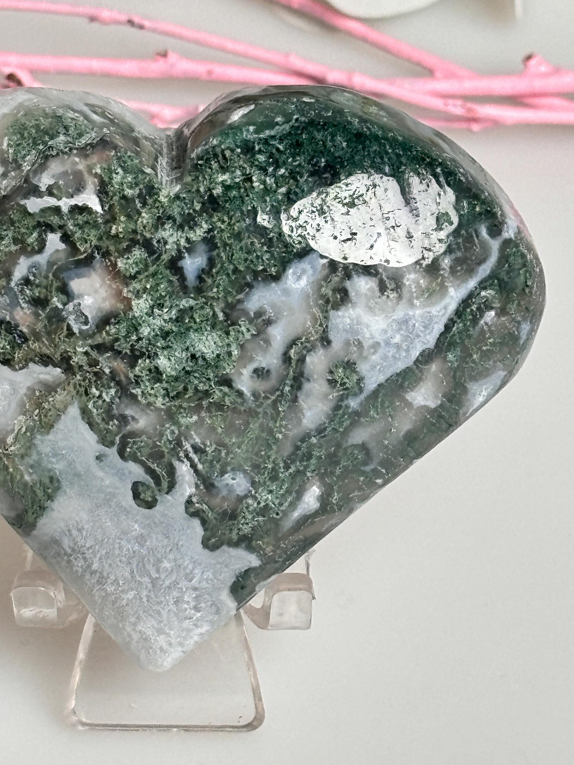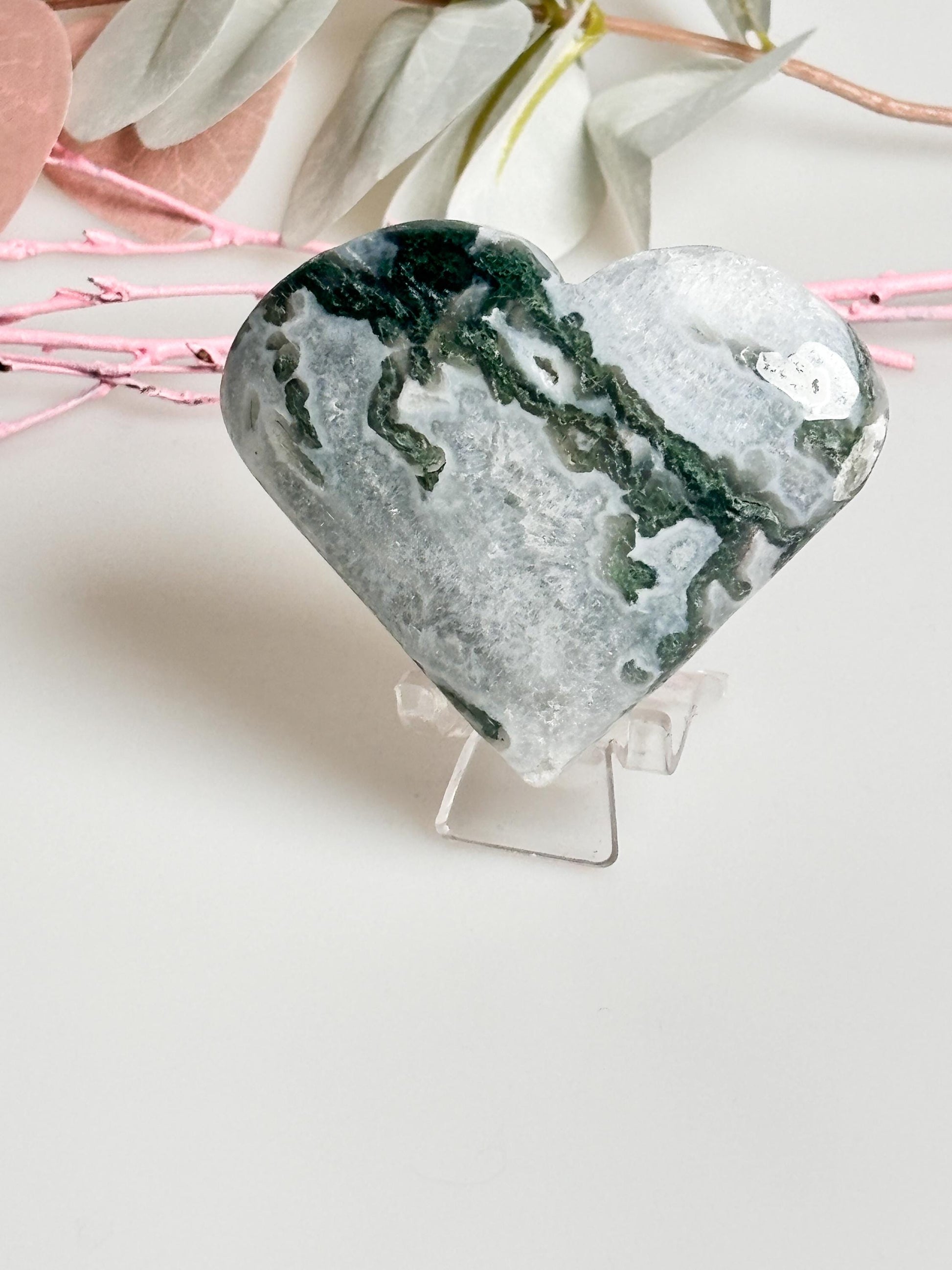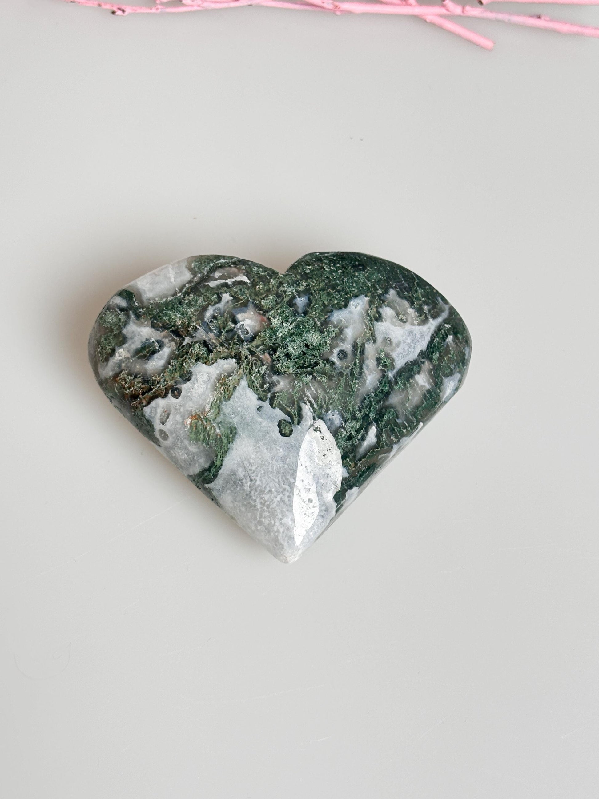 Kaufen Sie jetzt Ihr einzigartiges Moosachat Herz und bringen Sie Harmonie und Schönheit in Ihr Zuhause!