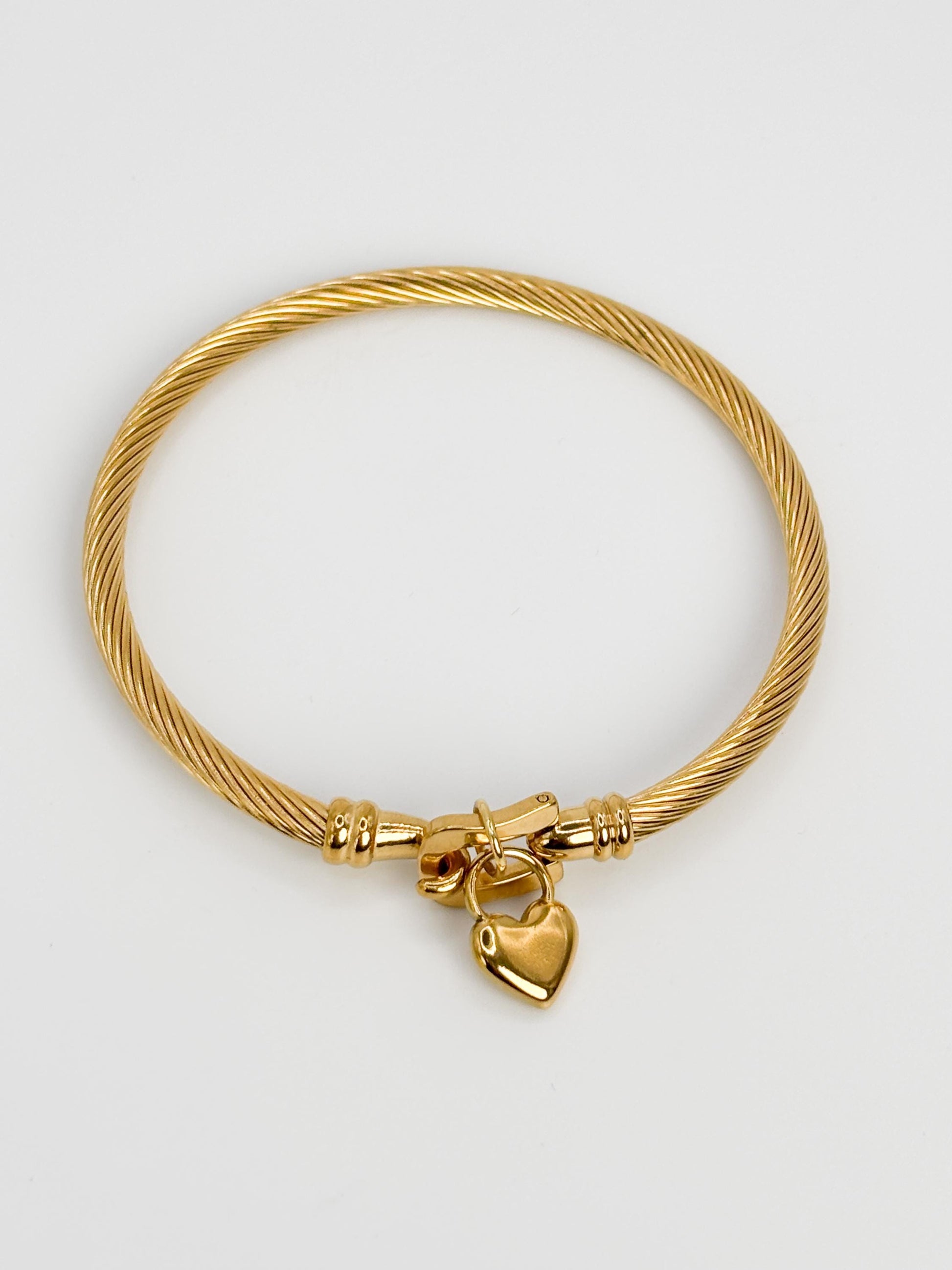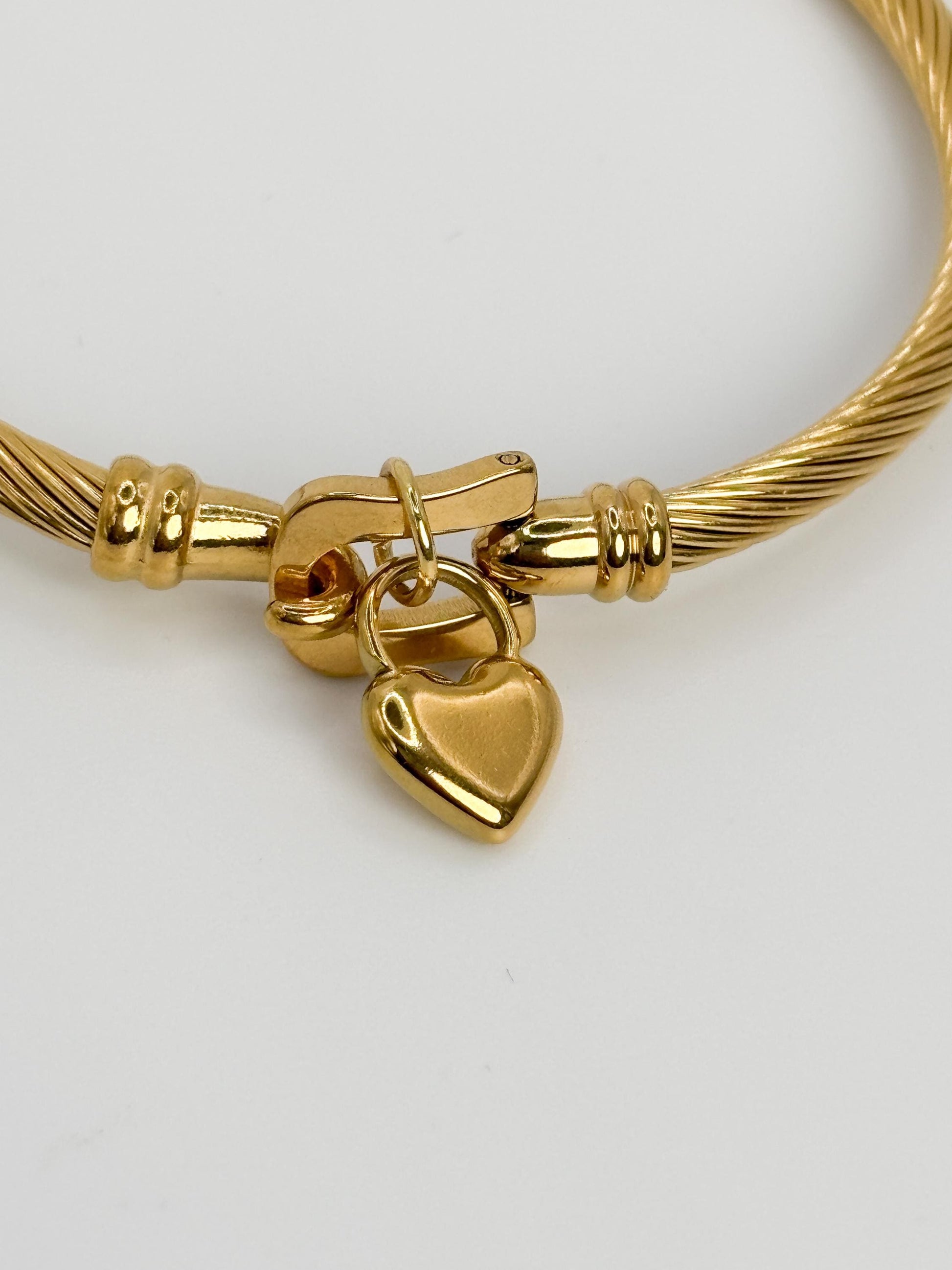 Edelstahl Armreif goldfarben mit Herz Anhänger, Damen Schmuck, rundes Design, poliert, minimalistischer Edelstahl Schmuck