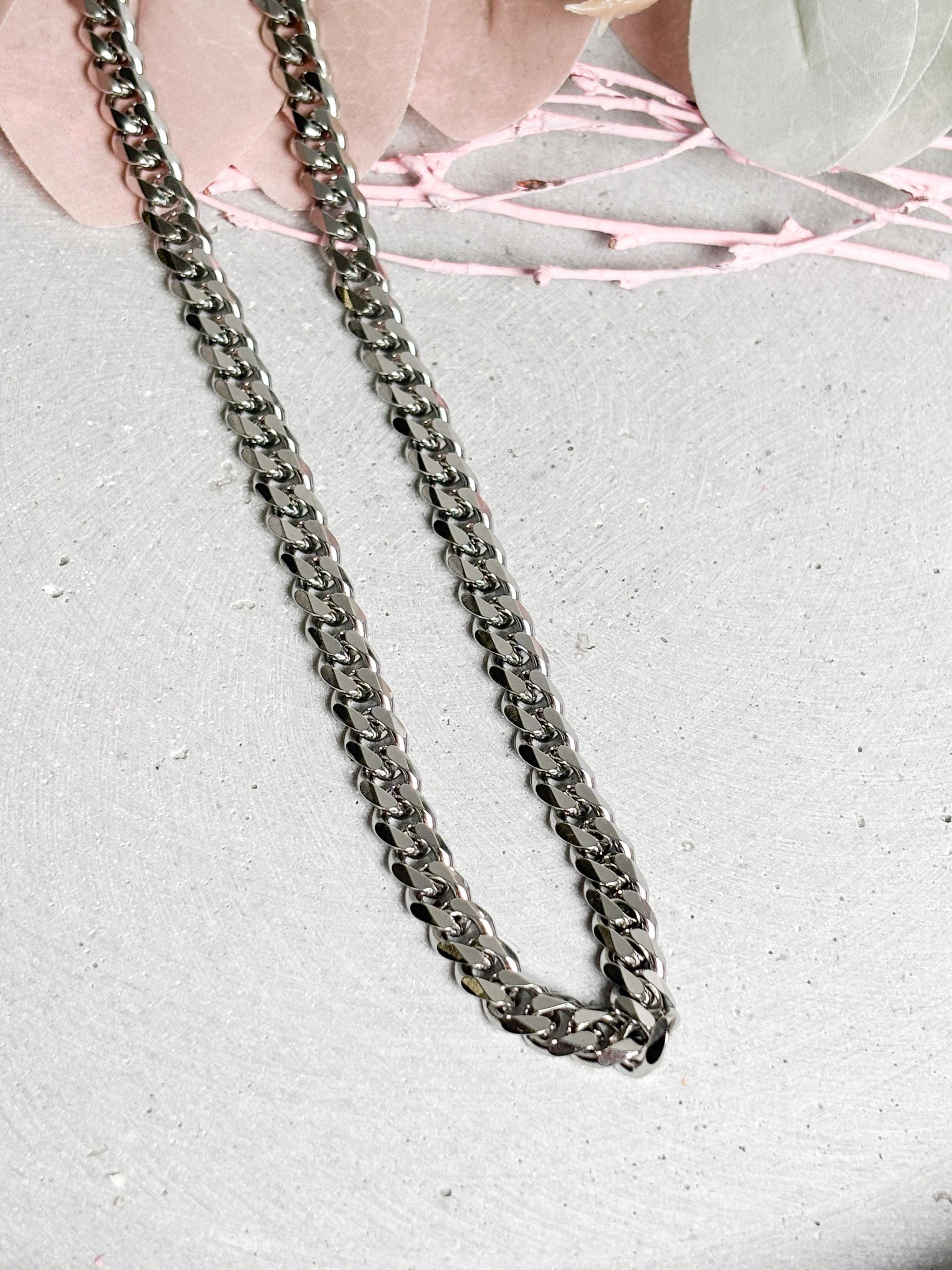Die klassische Panzerkette aus Edelstahl ist ein Schmuckstück mit markanter Ausstrahlung. Durch ihre 7 mm breite Gliederung wirkt sie kraftvoll und maskulin, bleibt jedoch dank des schlichten Designs zeitlos und elegant. Edelstahl symbolisiert Stärke, Beständigkeit und Moderne, was diese Kette zu einem perfekten Begleiter für jeden Tag macht. Ob im Alltag, beim Ausgehen oder zu besonderen Anlässen – die silberfarbene Kette verleiht jedem Outfit einen stilvollen Akzent. Der Panzerkettenstil zeichnet sich durch flach anliegende, eng verbundene Glieder aus, die angenehm zu tragen sind und sich geschmeidig um den Hals legen. So entsteht eine Kombination aus Komfort und markanter Optik, die sowohl zu sportlicher Kleidung als auch zu eleganter Garderobe passt. Die Halskette ist vielseitig kombinierbar und lässt sich allein tragen oder mit einem Anhänger ergänzen. Ein Schmuckstück, das durch seine schlichte Klarheit überzeugt und sich hervorragend auch als Geschenk eignet.