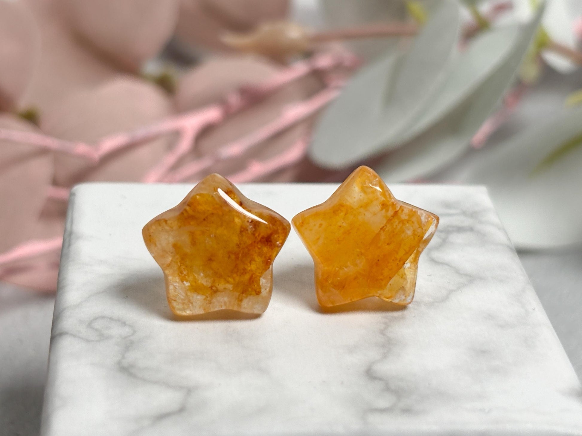 Edelstein Ohrstecker Golden Healer Stern 925 Silber Nadel | Heilstein Schmuck Damen | Naturstein Ohrringe | Boho Sternschmuck