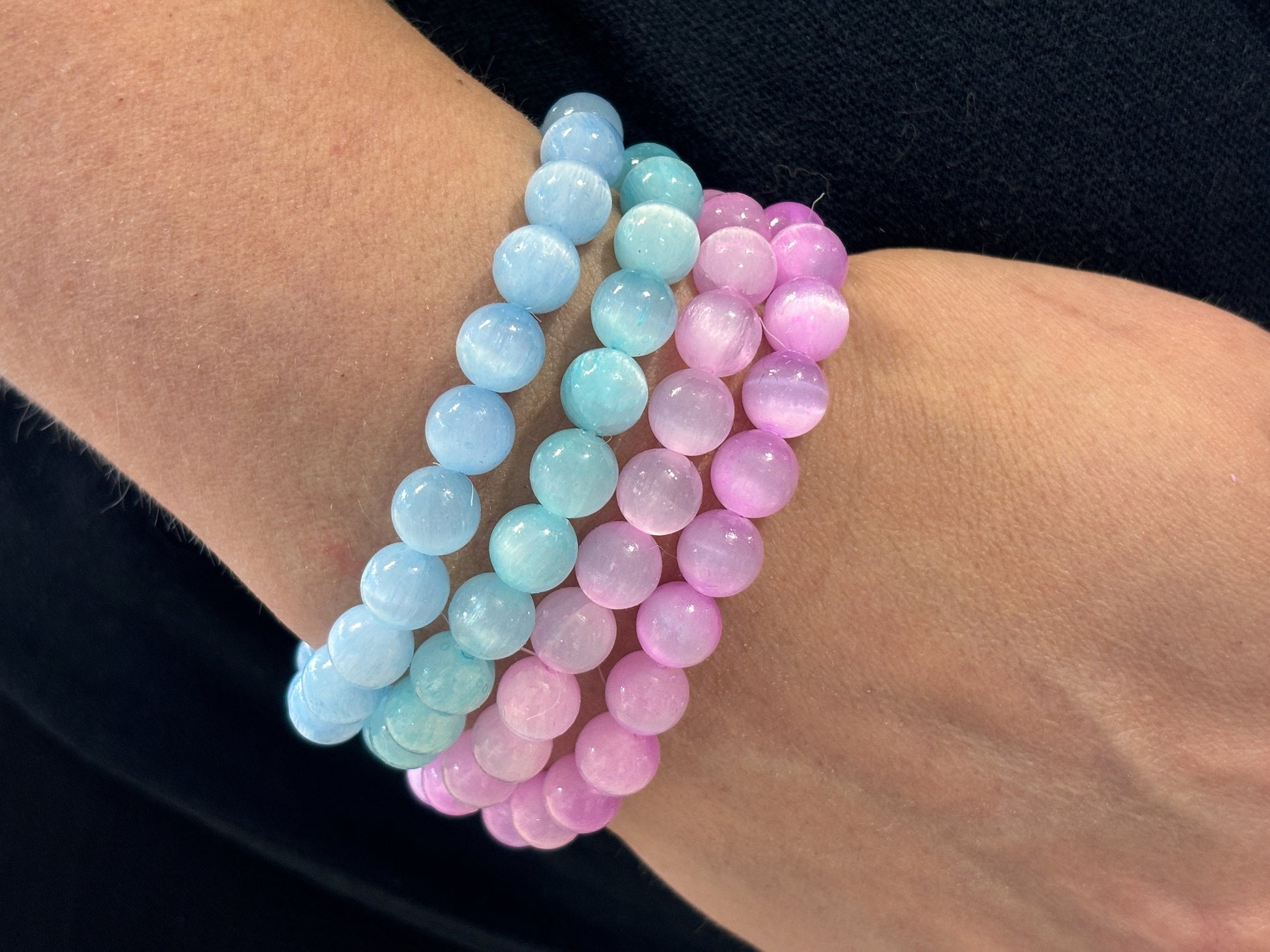 Elastic Selenite Bracelets 8mm | Summer Colors | Handmade Jewelry | Spiritual Energy | Gift Idea