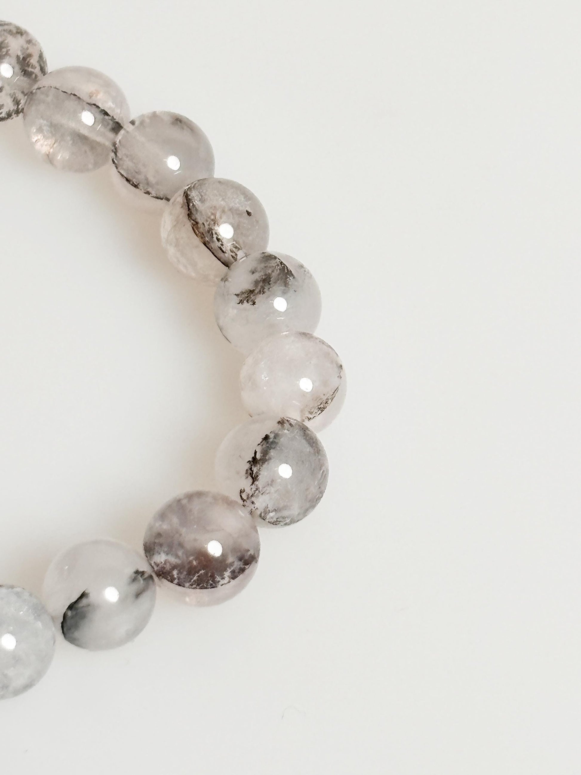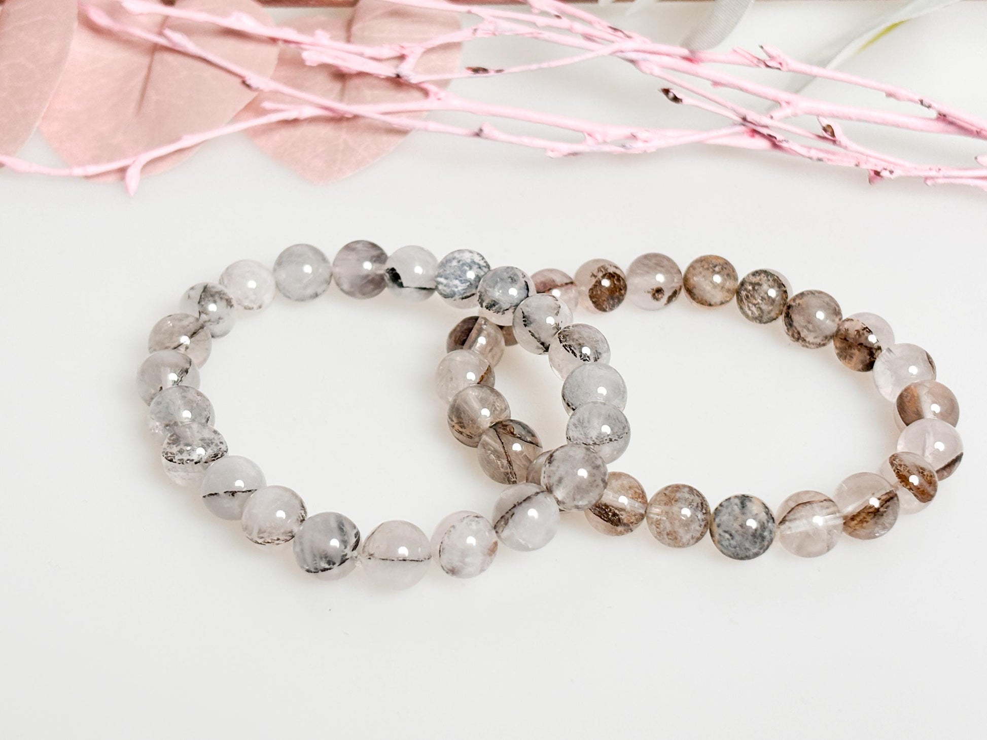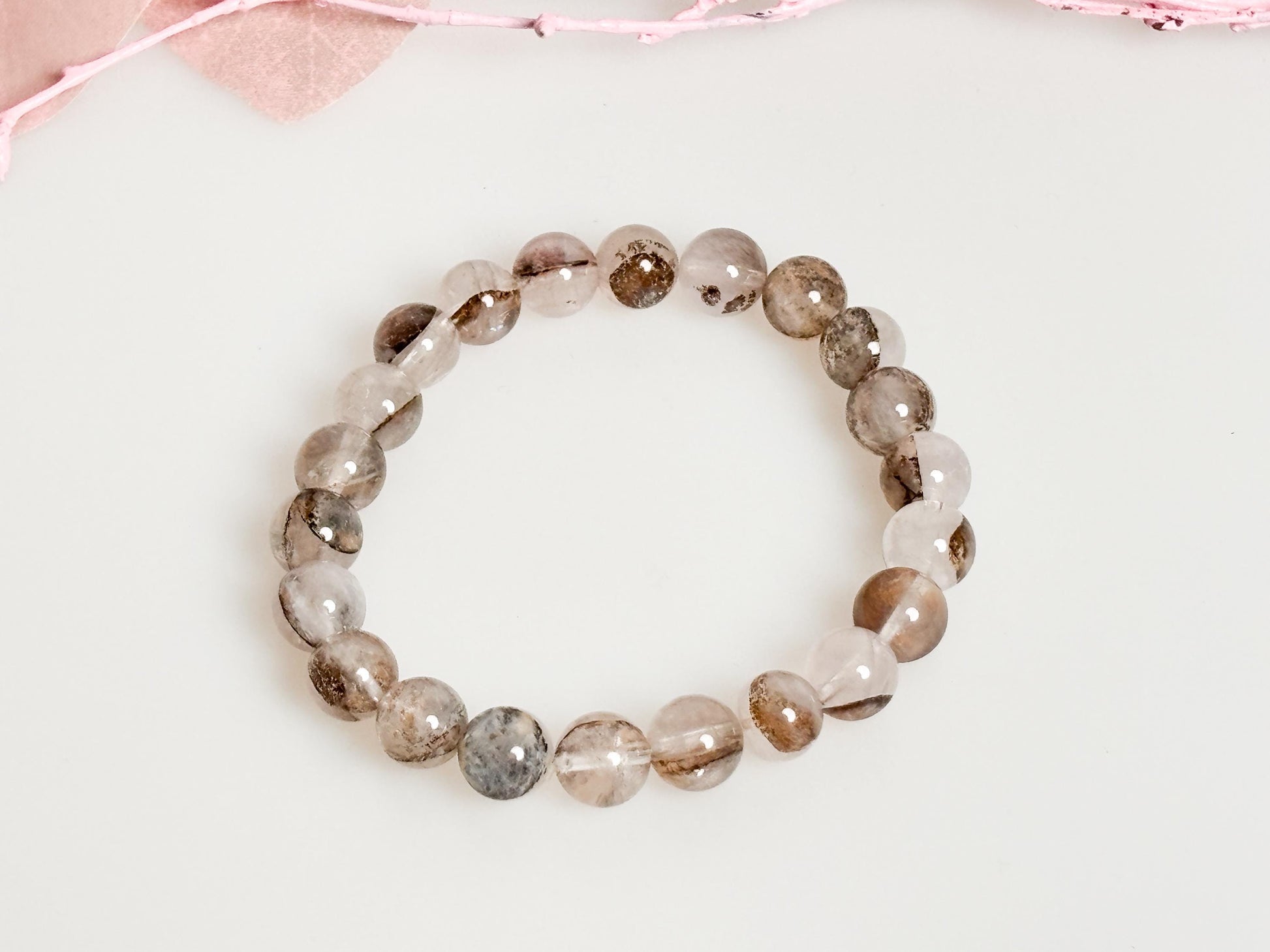 Elastic garden quartz bracelet 8mm | 17cm length | Natural tones in grey & brown | Handmade | Gemstone jewelry
