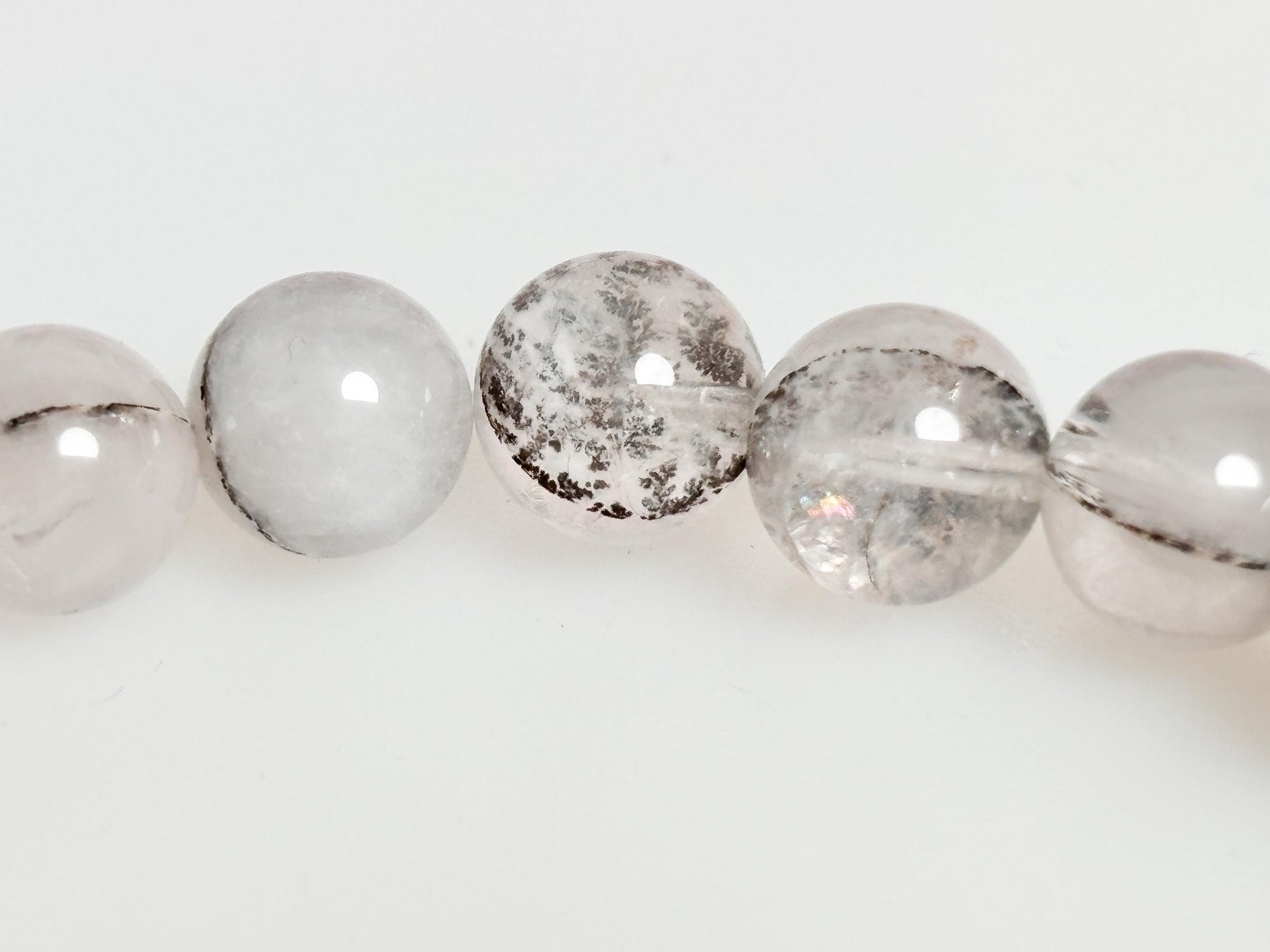 What makes this bracelet special is the exceptional clarity of the garden quartz beads, which look like small gardens in stone form. Each bead contains fascinating inclusions that are reminiscent of moss, earth or small plants and give the piece of jewelry a deep, natural beauty. These insights into the wonders of nature make each bracelet unique. The colors vary from a soft gray to a warm brown, which means that each bracelet has its own characteristic coloring - one appears more grayish, the other more brownish.