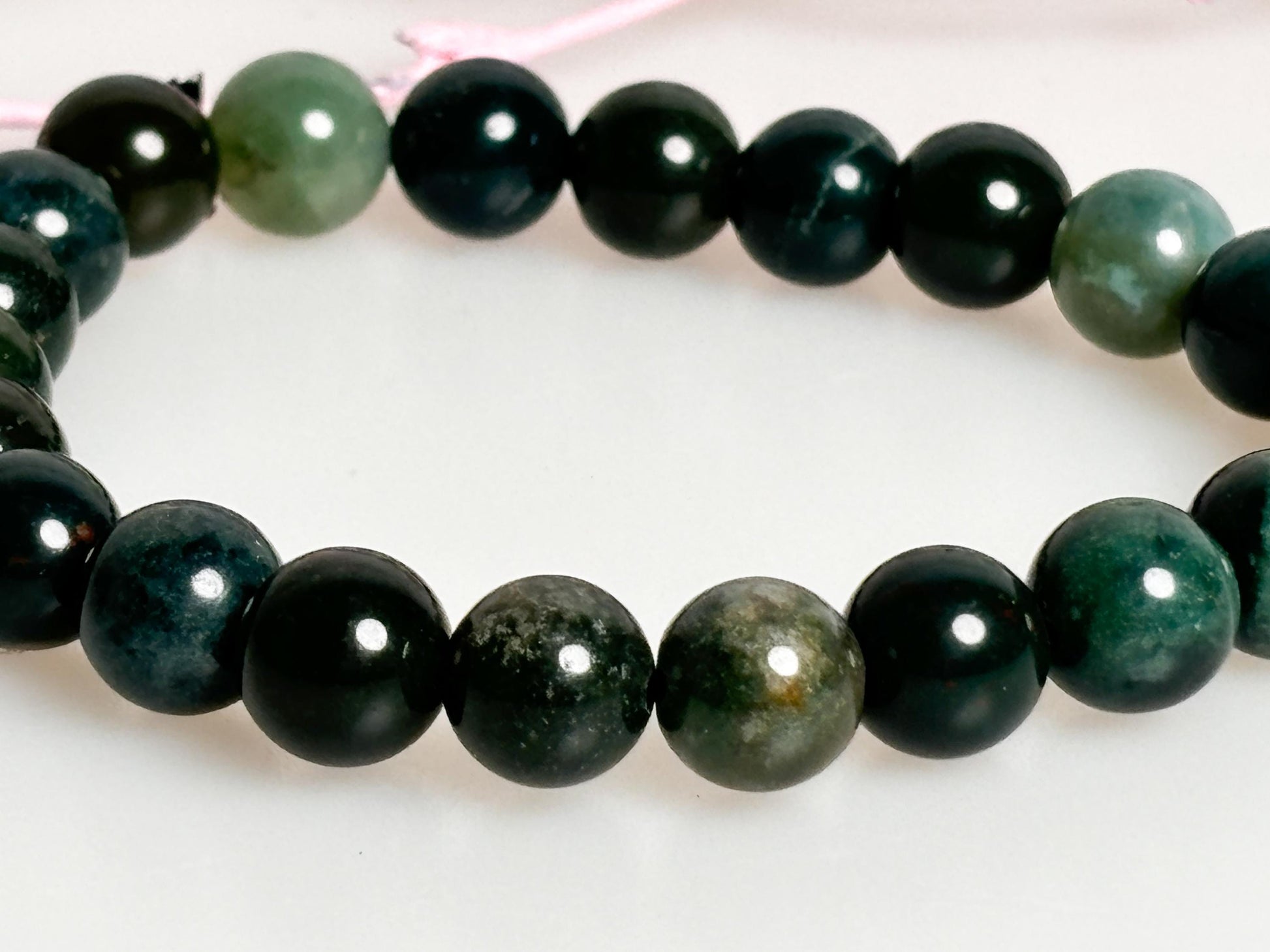 Elastic Moss Agate Bracelet - 8mm Dark Green - 17cm