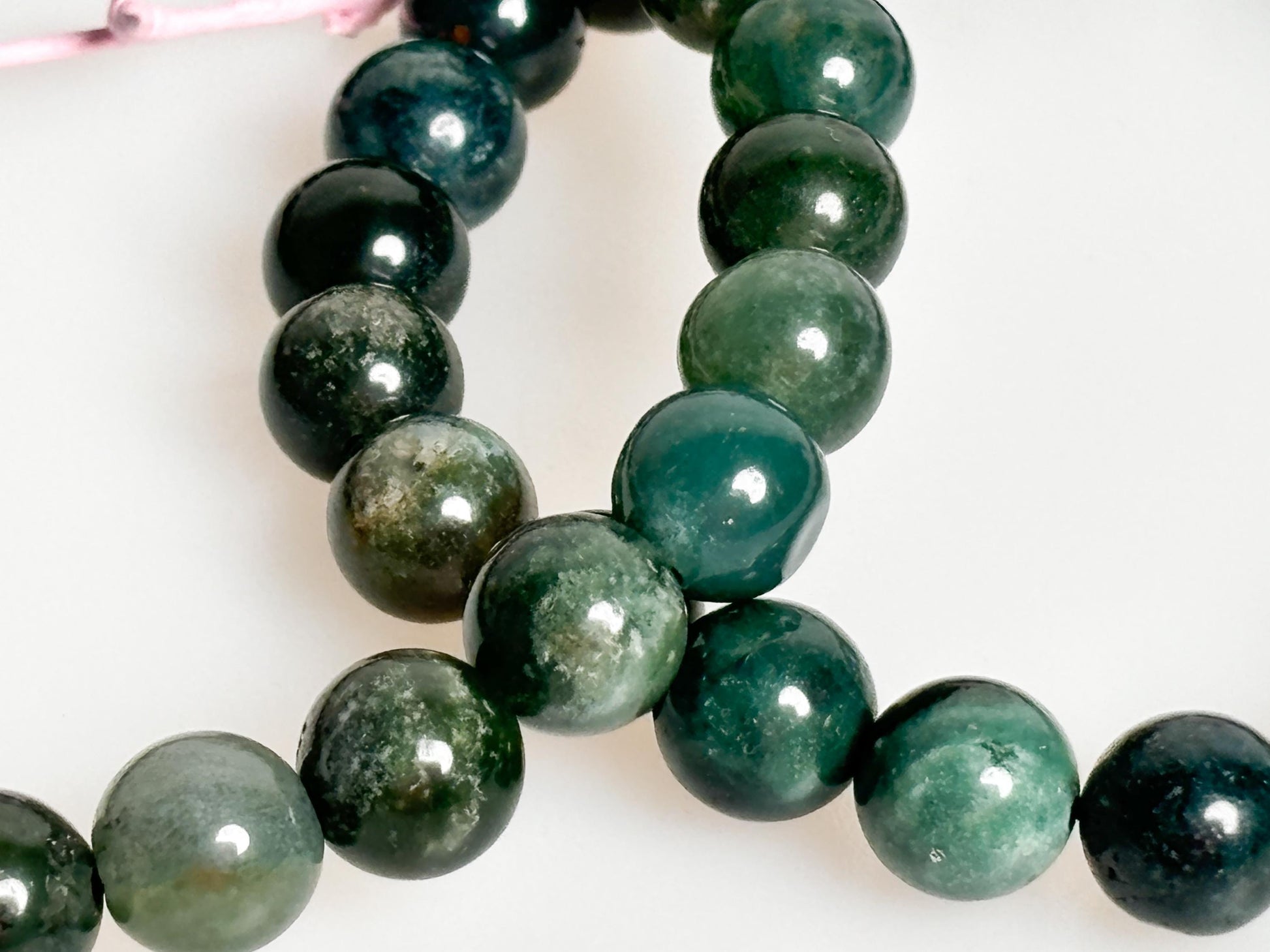 Elastic moss agate bracelet 8mm | Natural stone jewelry for balance & harmony | Handmade spiritual accessory