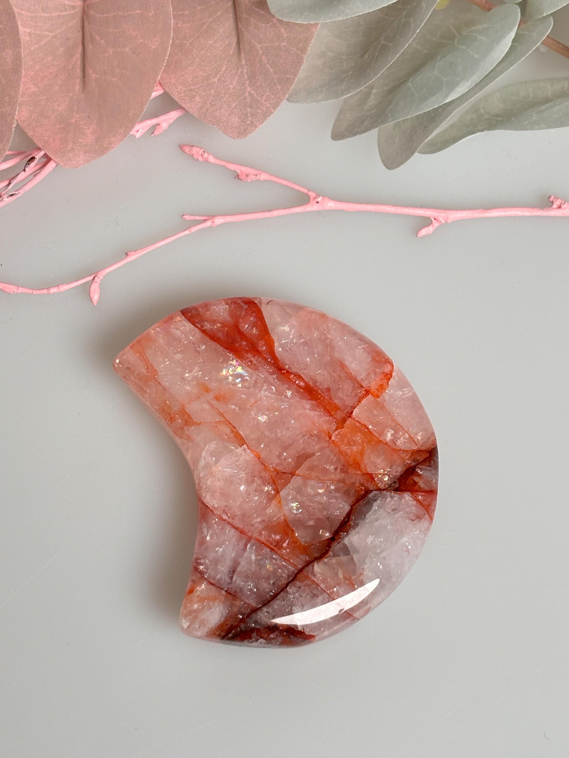 Feuerquarz Mond Carving - kleines Deko-Highlight mit tollen Regenbögen, spirituelle Deko für Harmonie und Energie