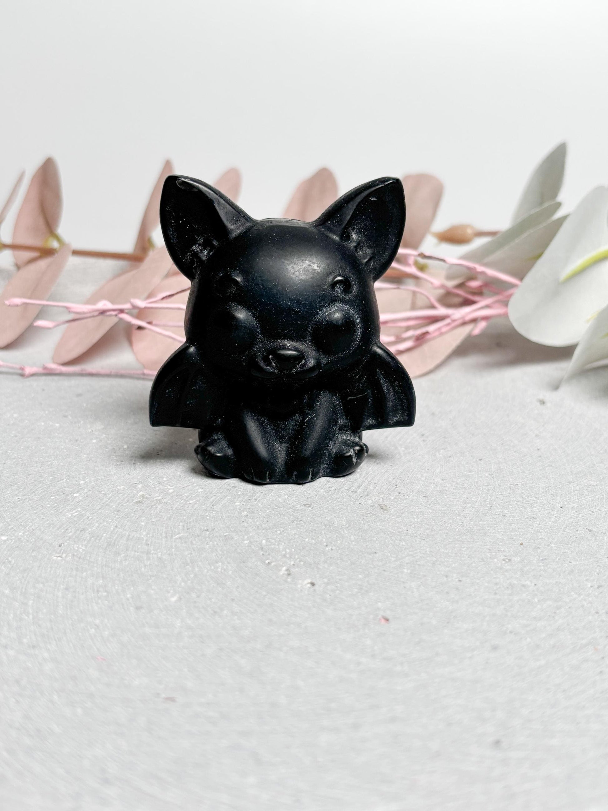 Obsidian gilt als kraftvoller Schutzstein, der negative Energien abwehrt, innere Blockaden löst und Klarheit im Denken schenkt. Er hilft, Vergangenes loszulassen und neue Stärke zu finden. Die Fledermaus steht symbolisch für Wandlung, Mut und Intuition – sie erinnert uns daran, den eigenen Weg auch im Dunkeln zu erkennen. Diese Kombination aus Obsidian und Fledermaus vereint Erdung, Transformation und spirituellen Schutz – ein kleiner Begleiter mit großer energetischer Wirkung.