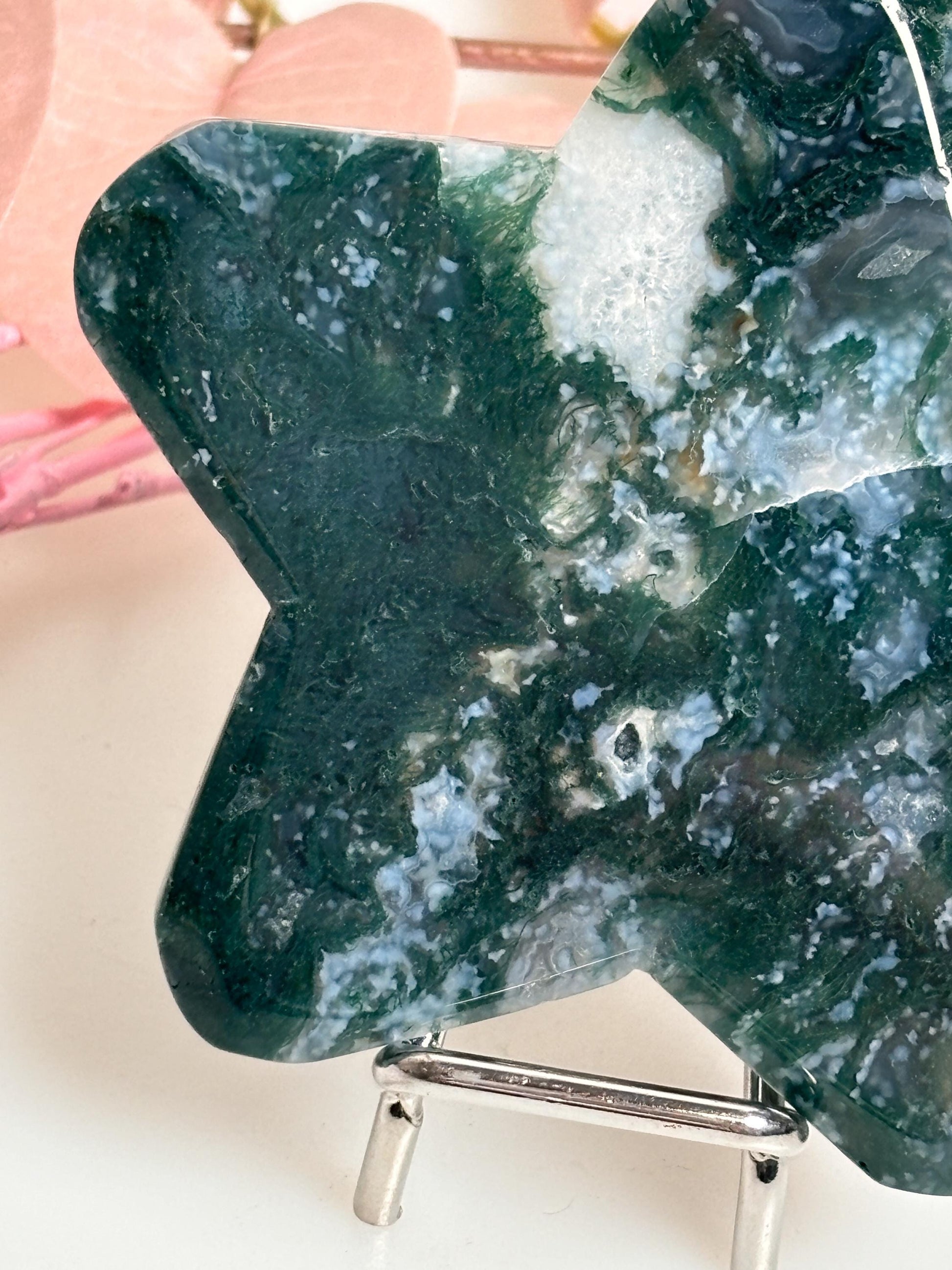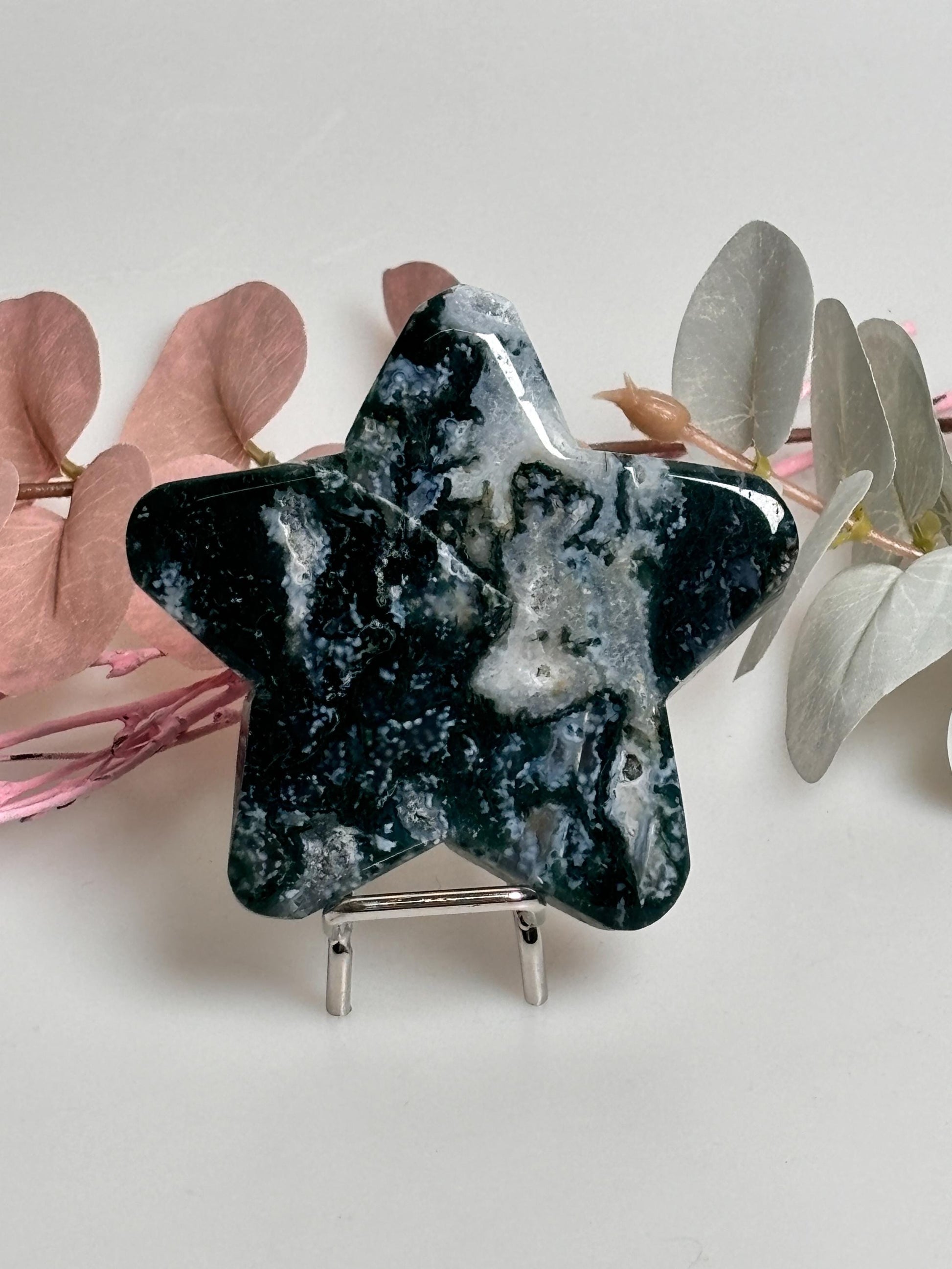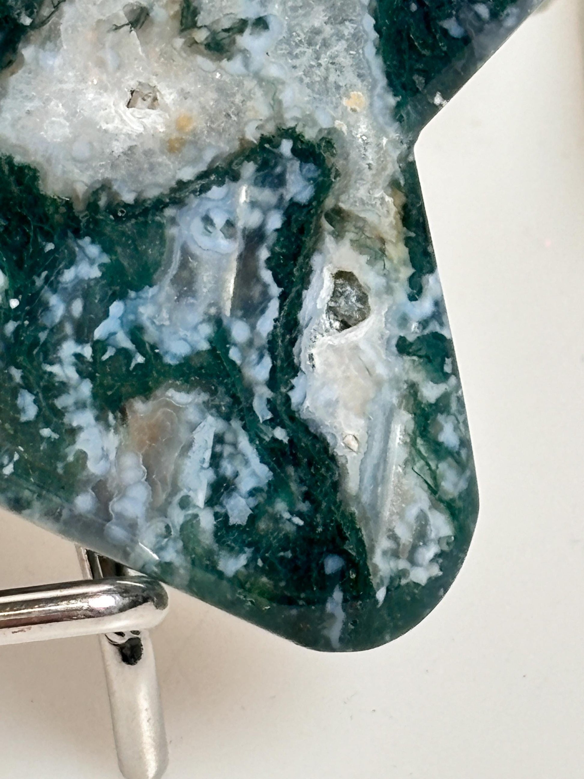 Großer Moosachat Stern 8,1cm , einzigartige Moosstruktur, Deko-Unikat 114g