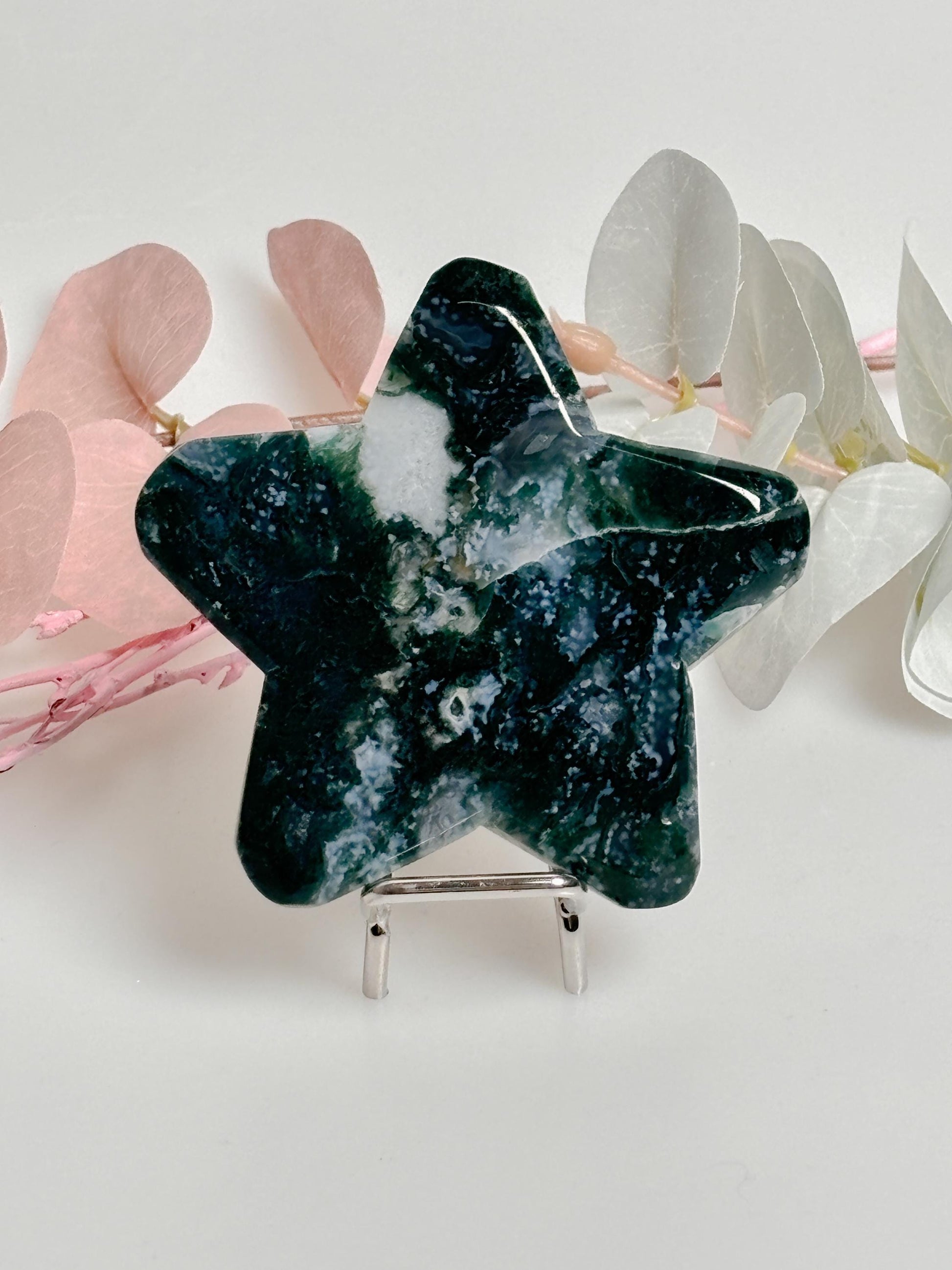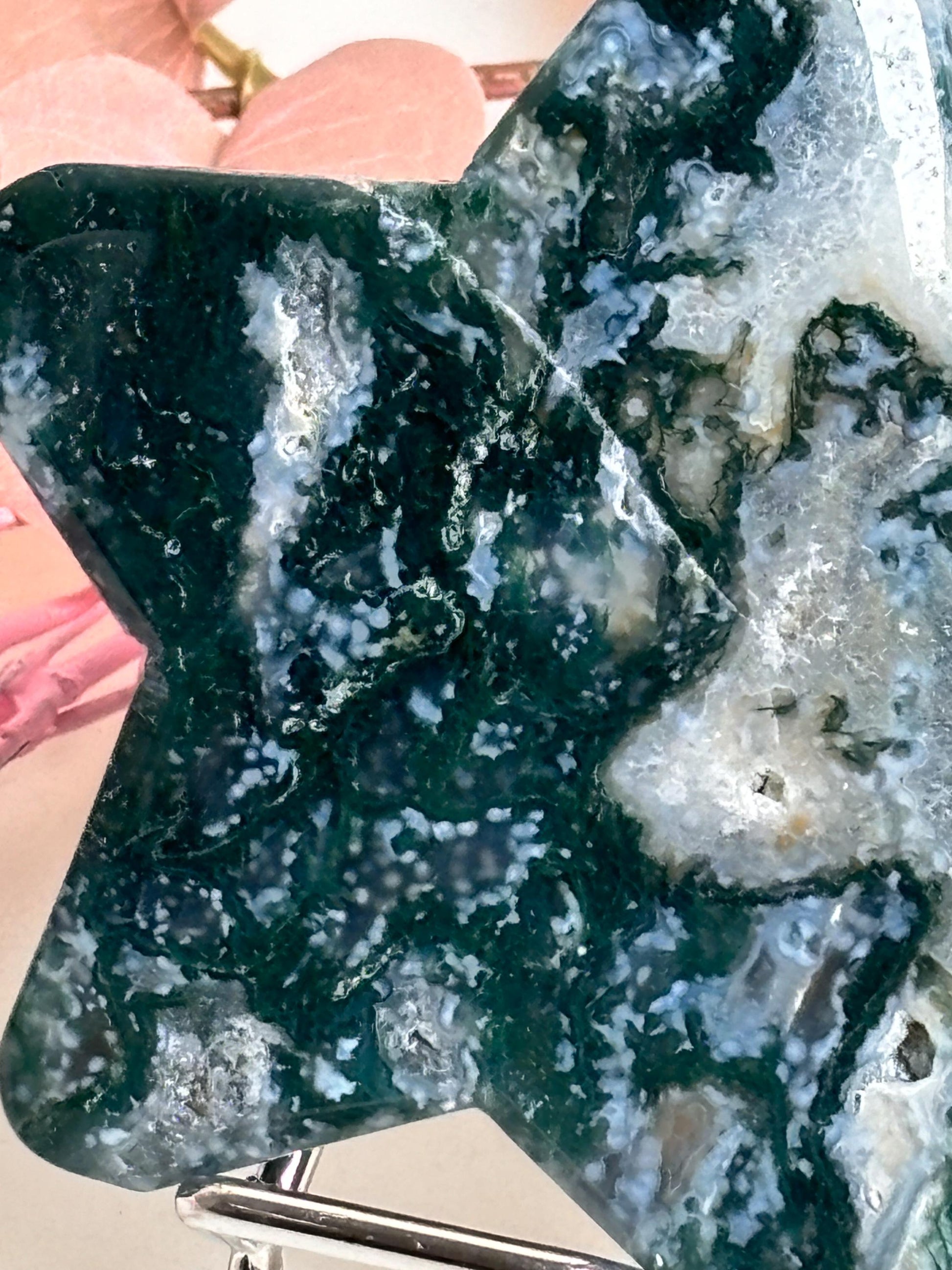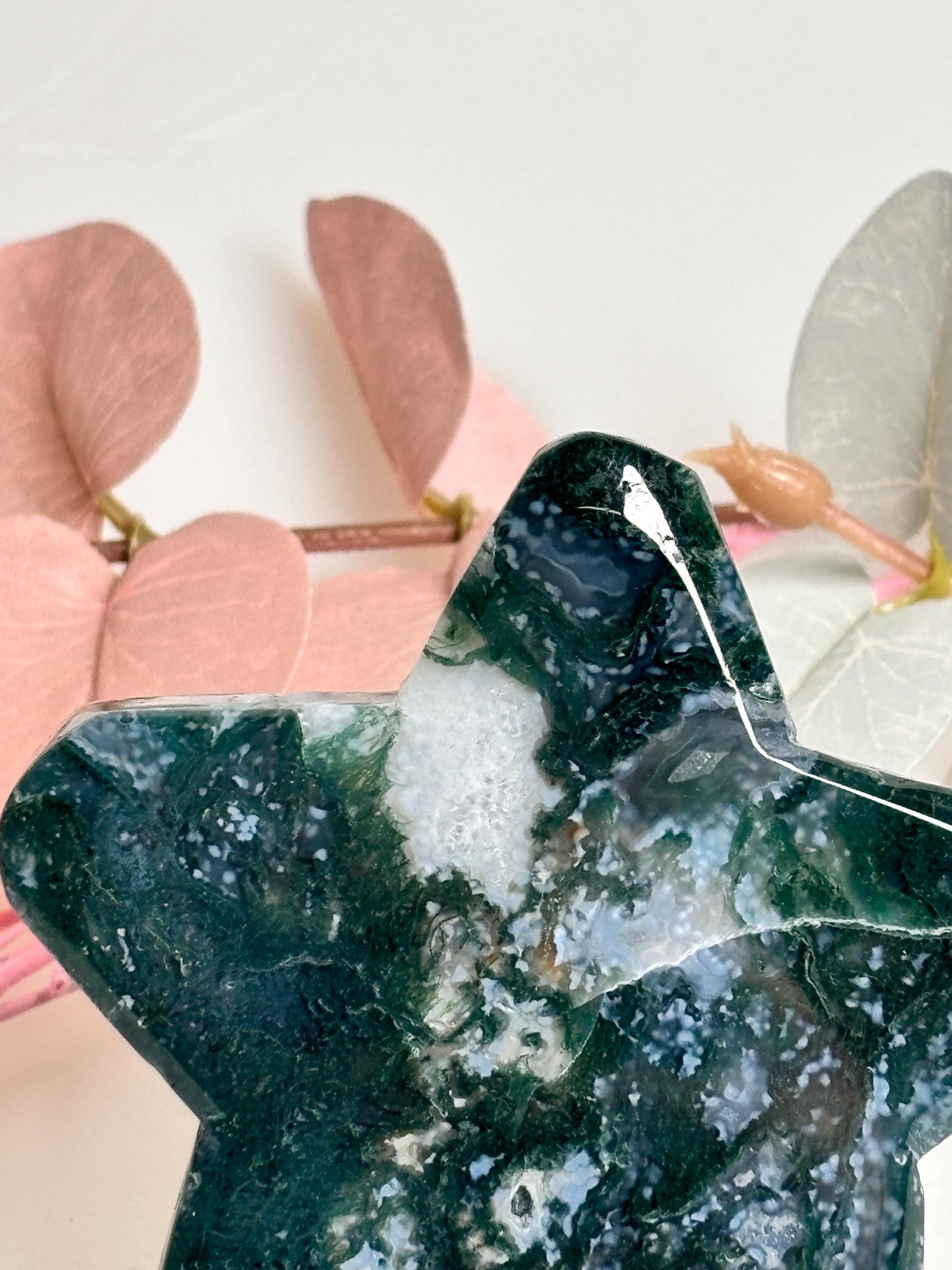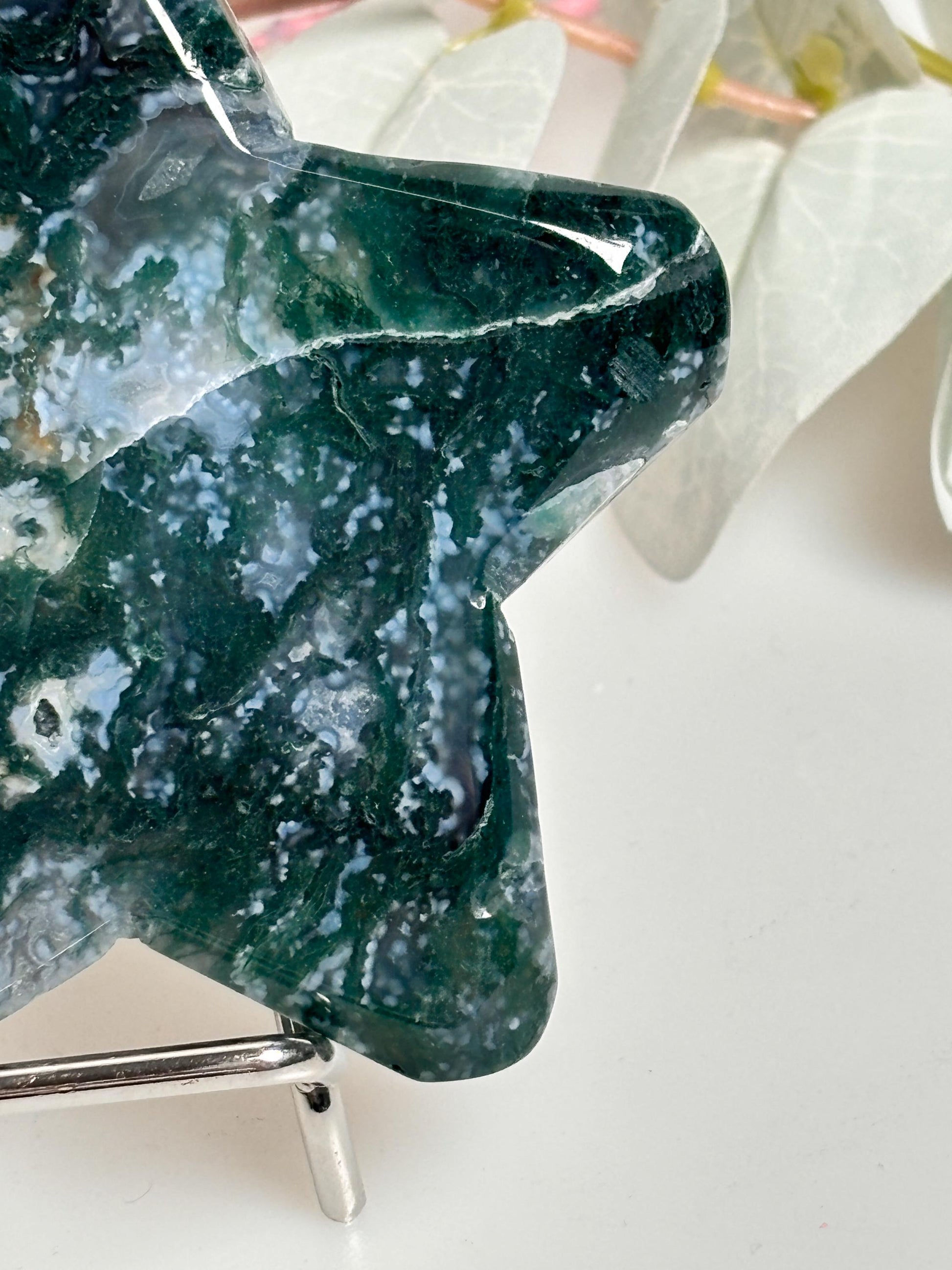 Großer Moosachat Stern 8,1cm , einzigartige Moosstruktur, Deko-Unikat 114g