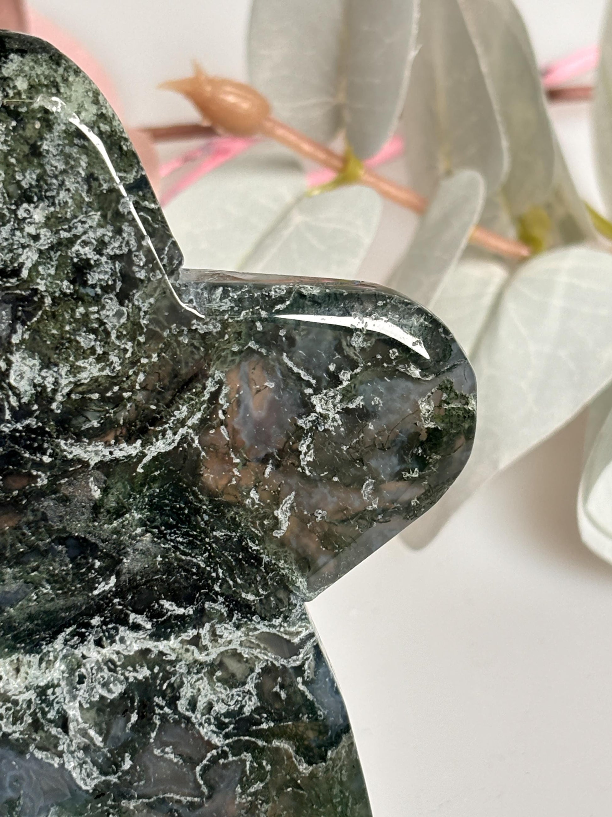 Dem Moosachat wird nachgesagt, eine harmonisierende und beruhigende Wirkung zu haben, die für Erdung und Ausgleich sorgen kann. Bitte beachte, dass es sich hierbei um überlieferte Überzeugungen handelt, die wissenschaftlich nicht nachgewiesen sind.