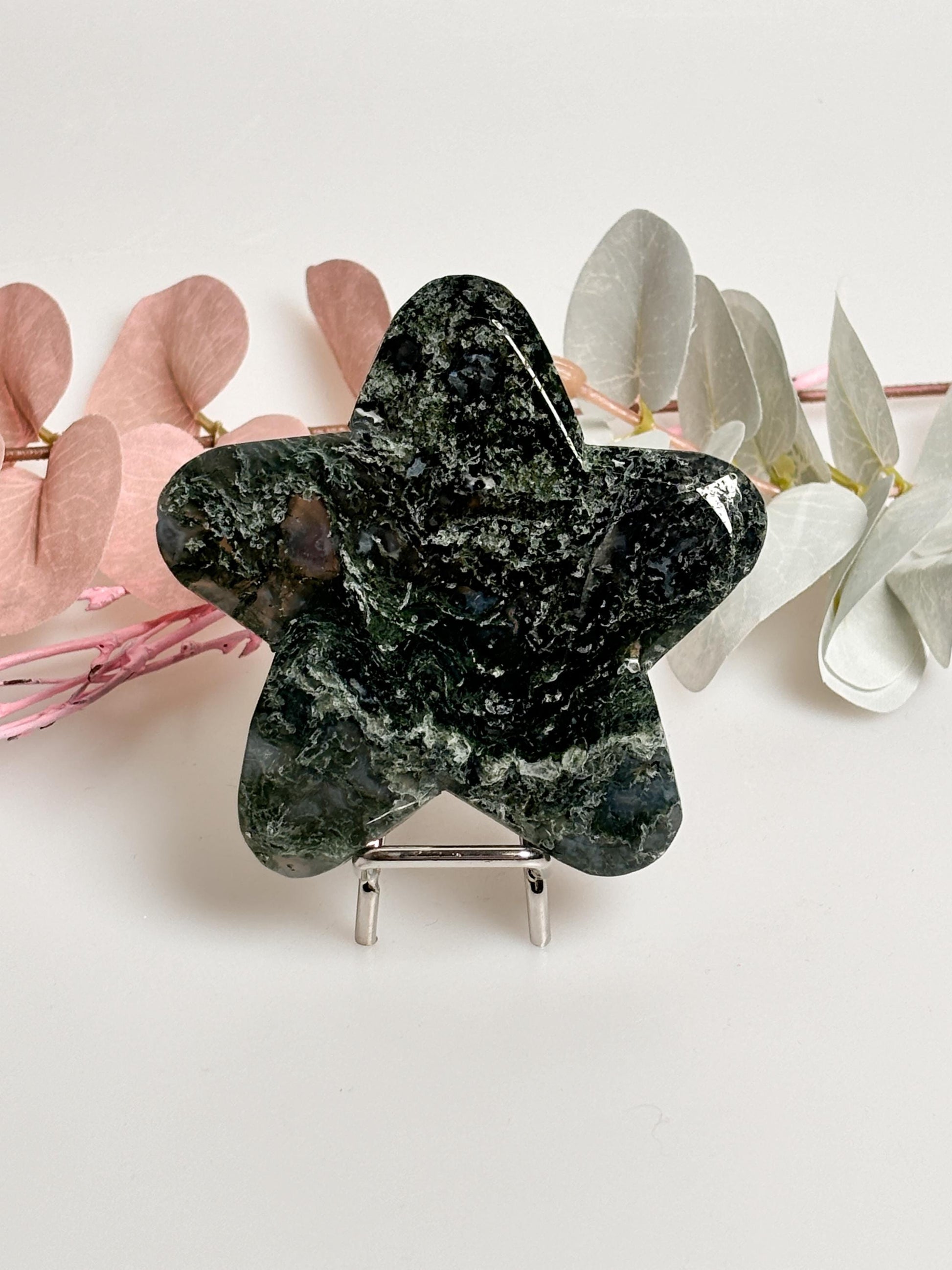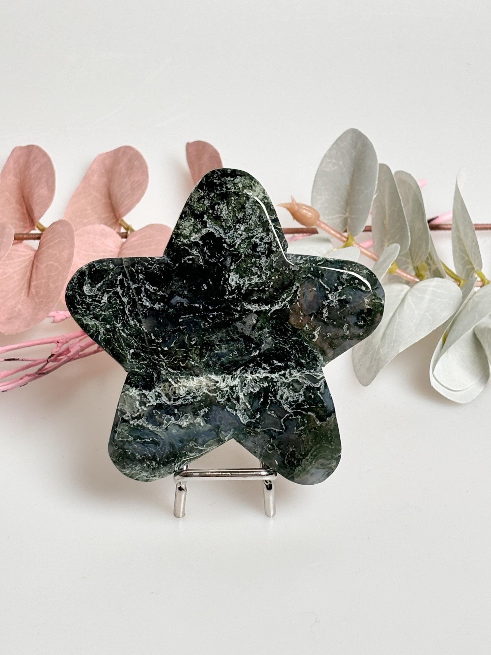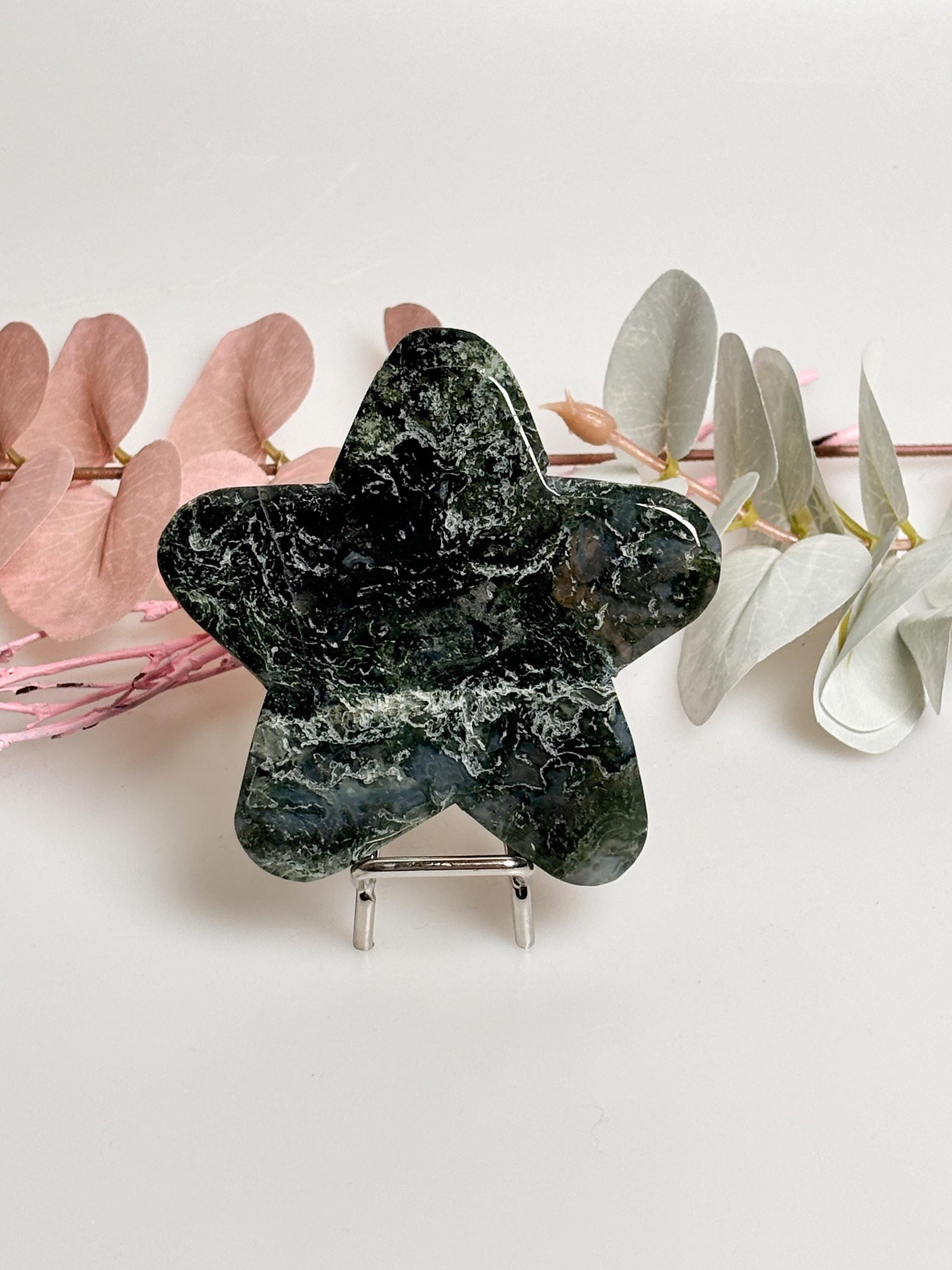 Großer Moosachat Stern 8,3cm , einzigartige Moosstruktur, Deko-Unikat 124g