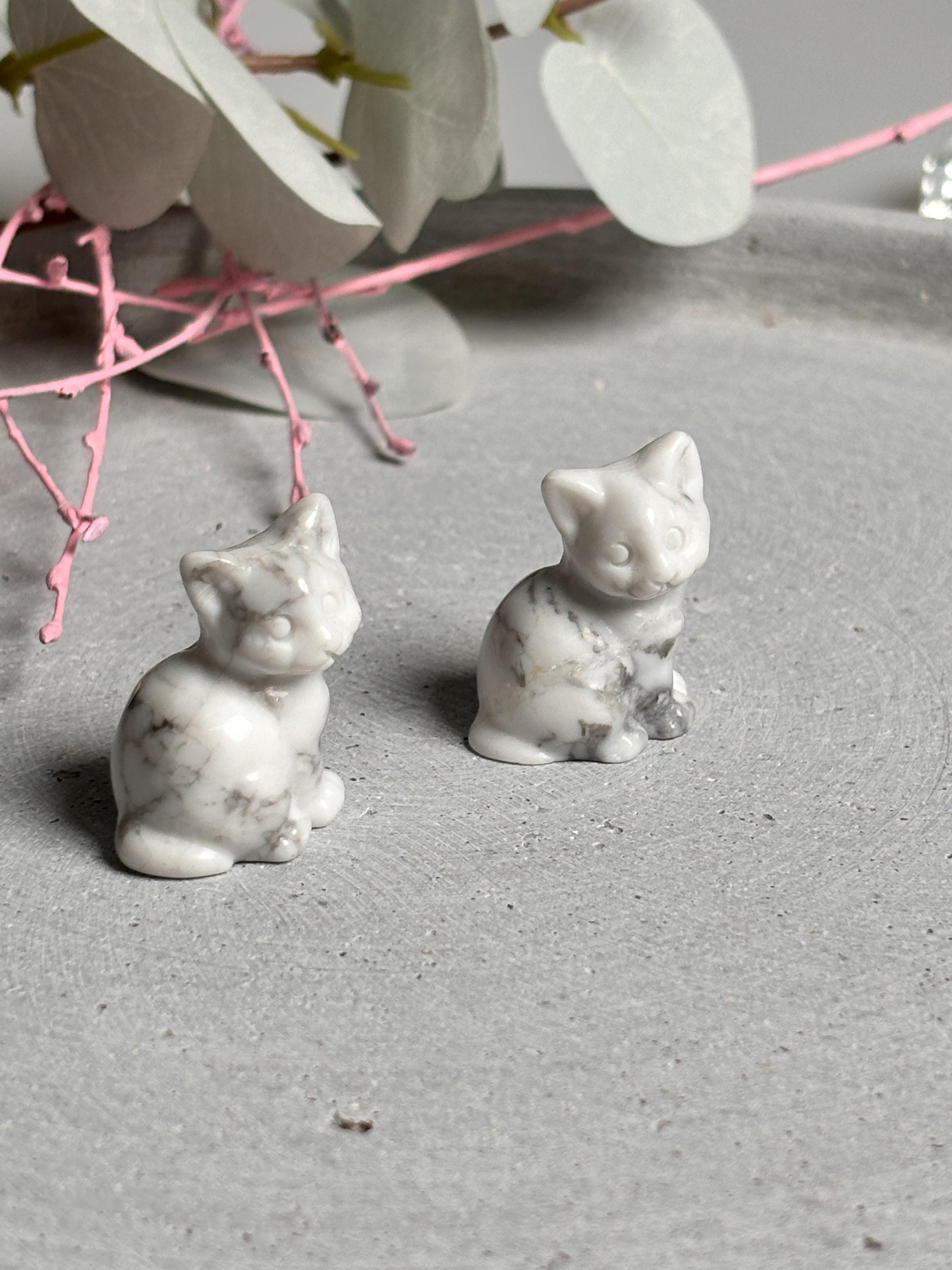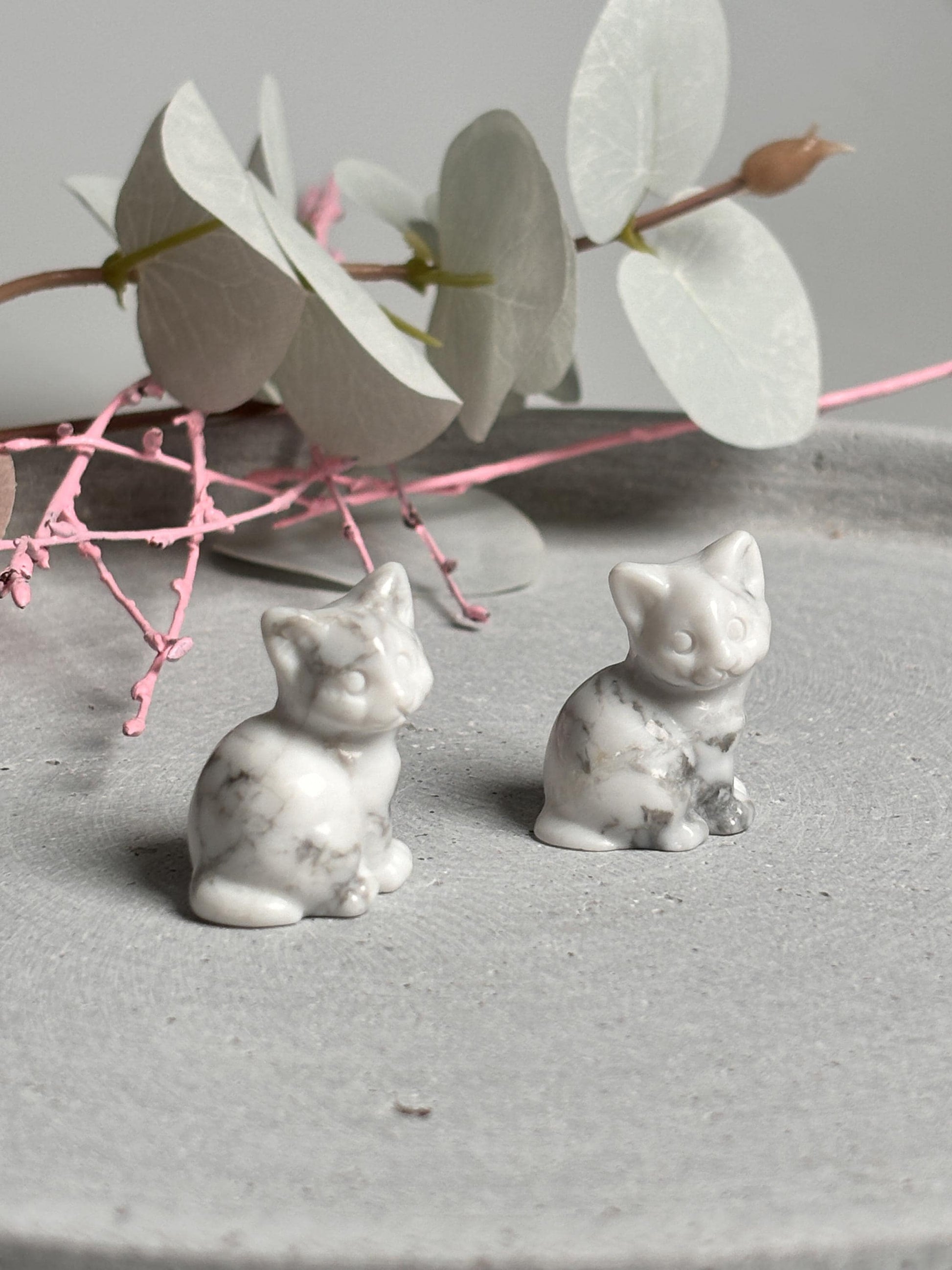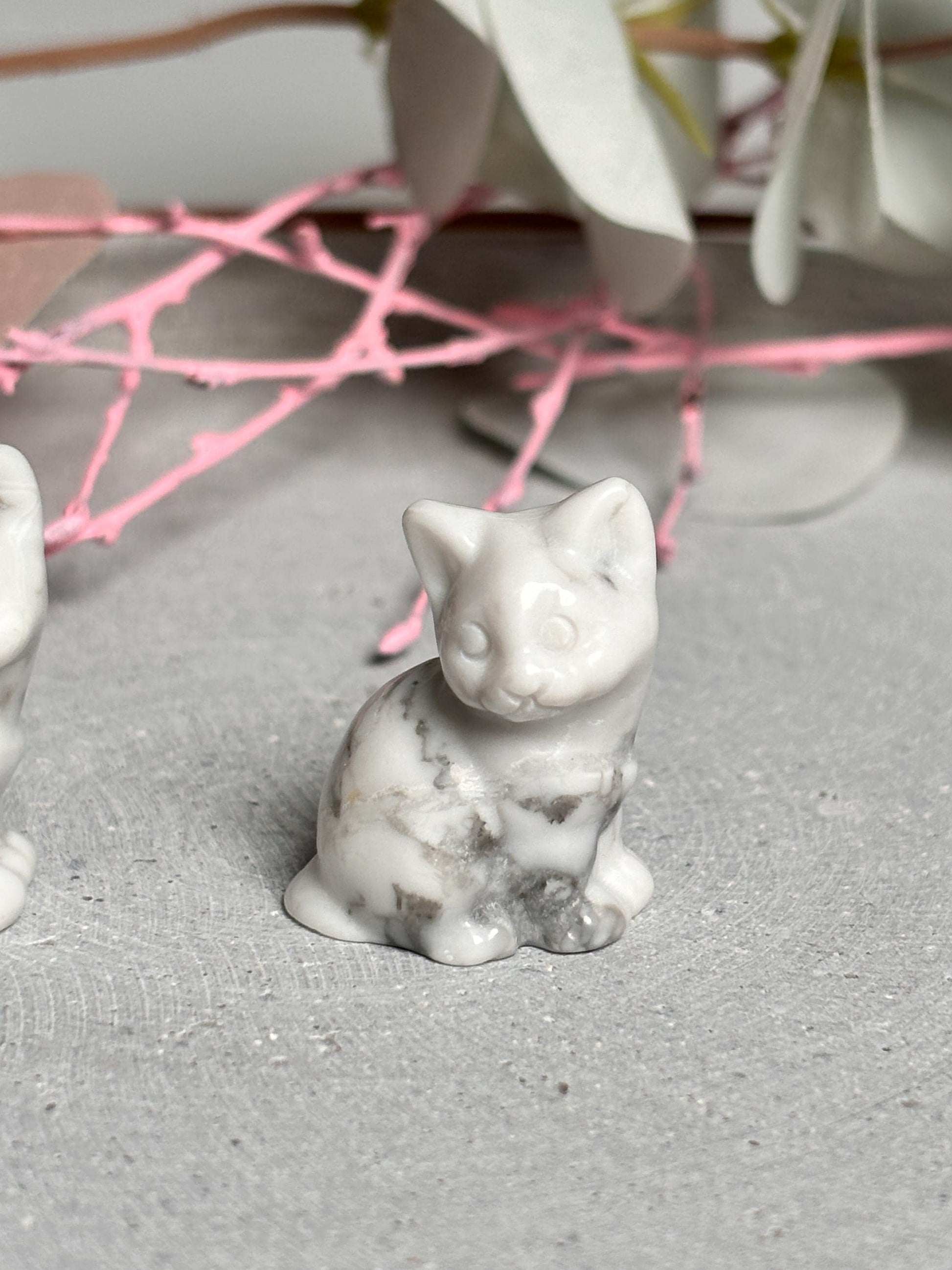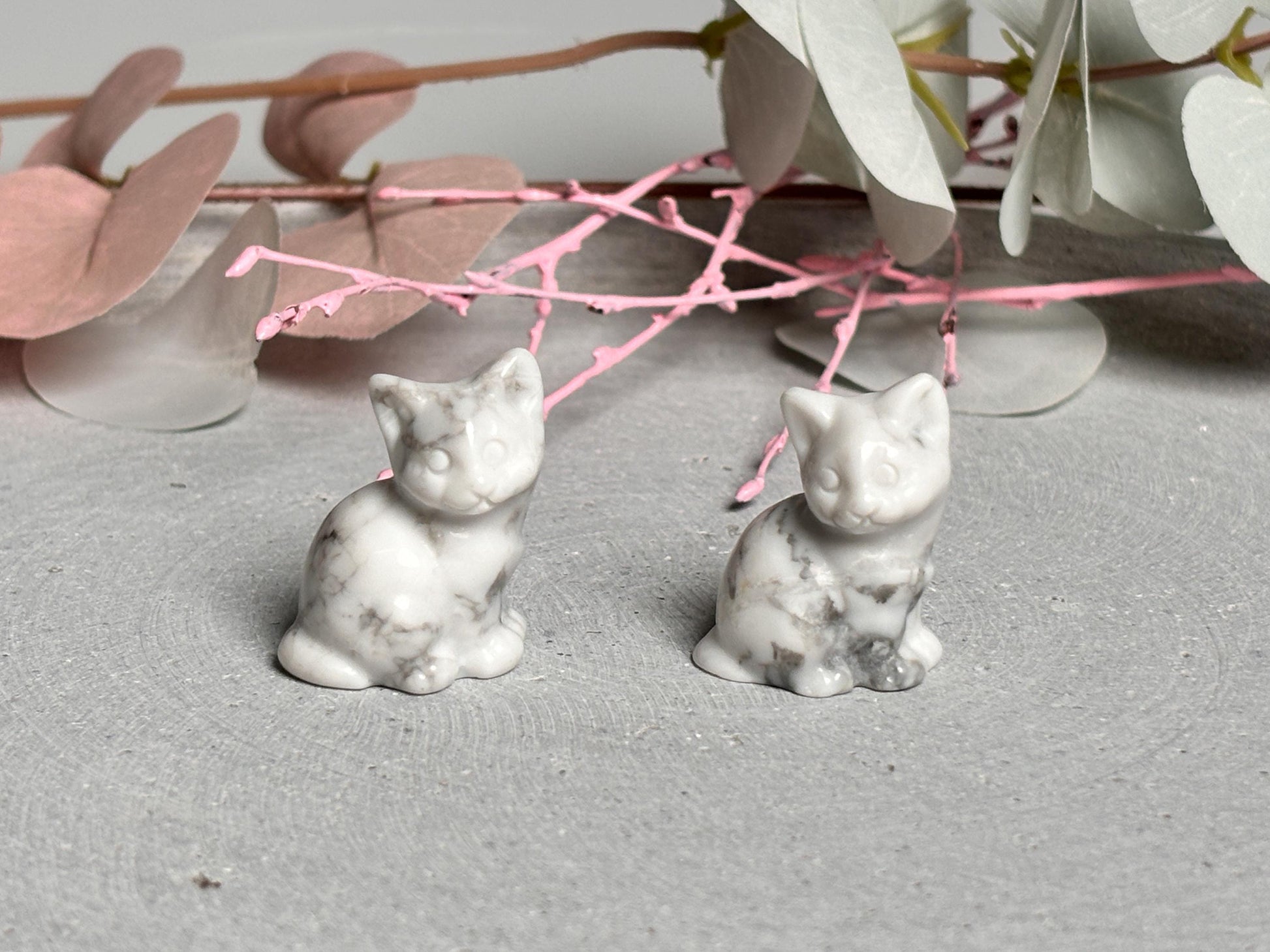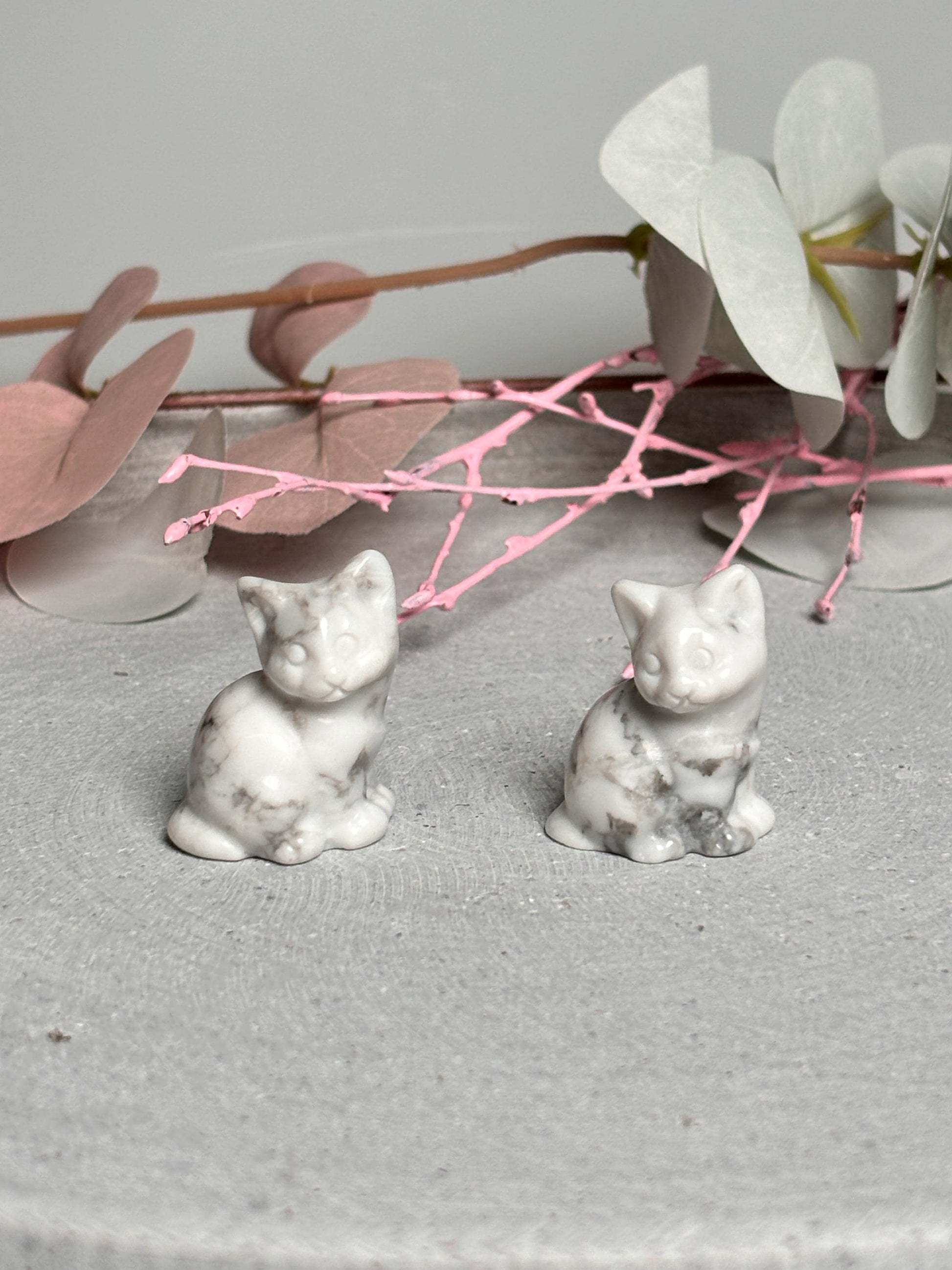 Kleine Howlith Katze Dekoration aus Edelstein, Kristallfigur