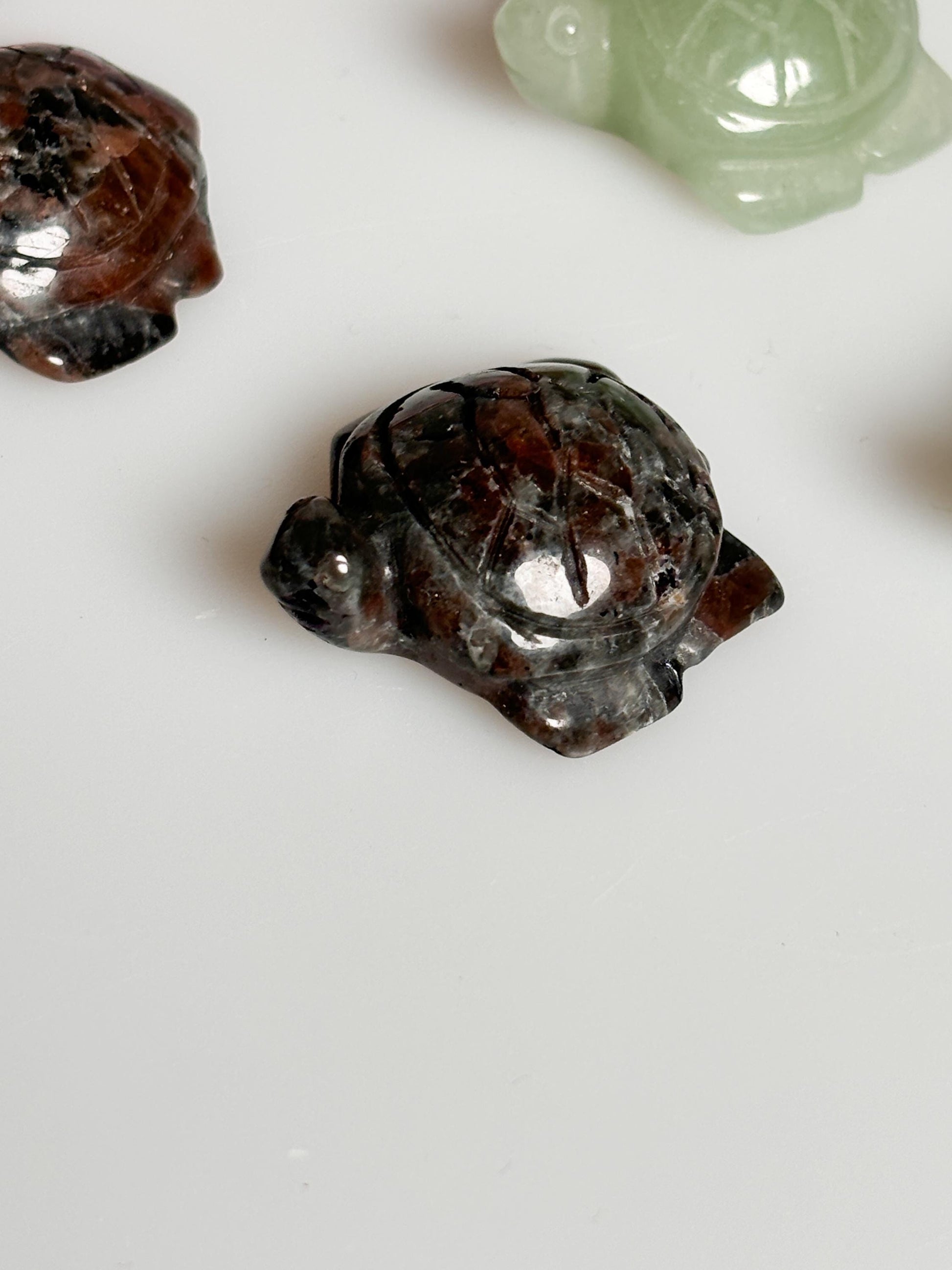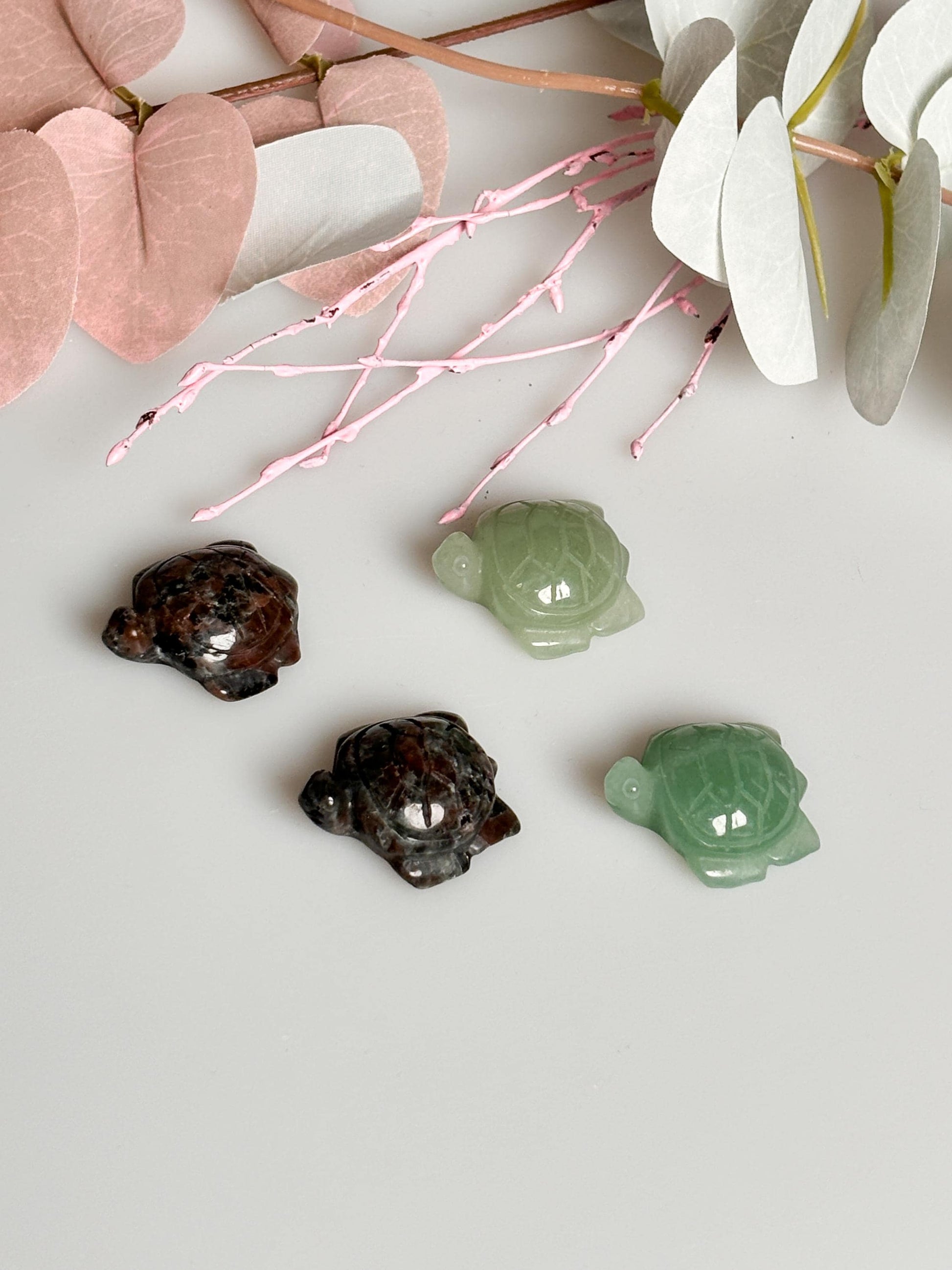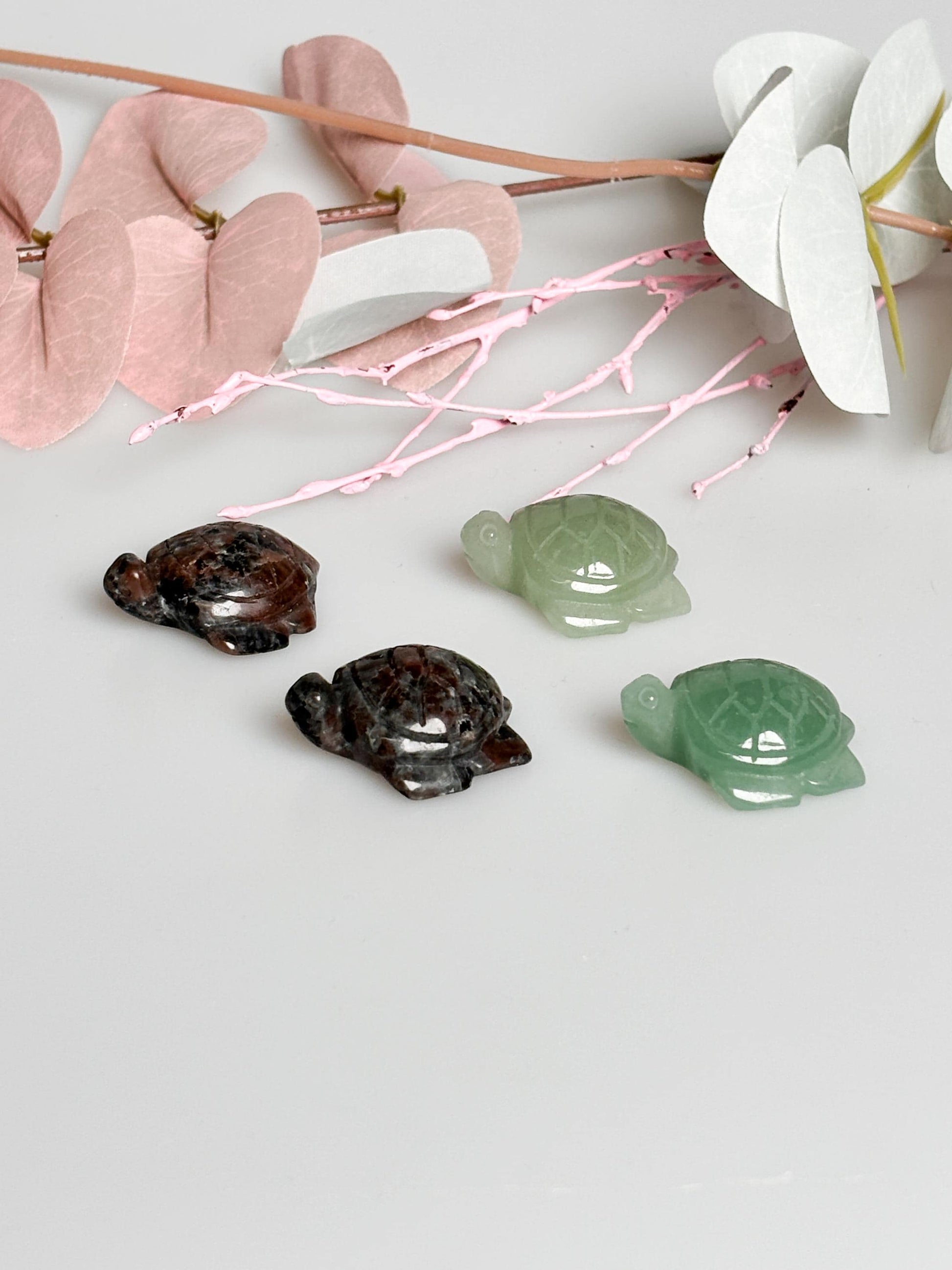 Kleine Schildkrötencarvings aus Aventurin und Yooperlite Kristallfiguren für Dekoration und spirituelle Harmonie