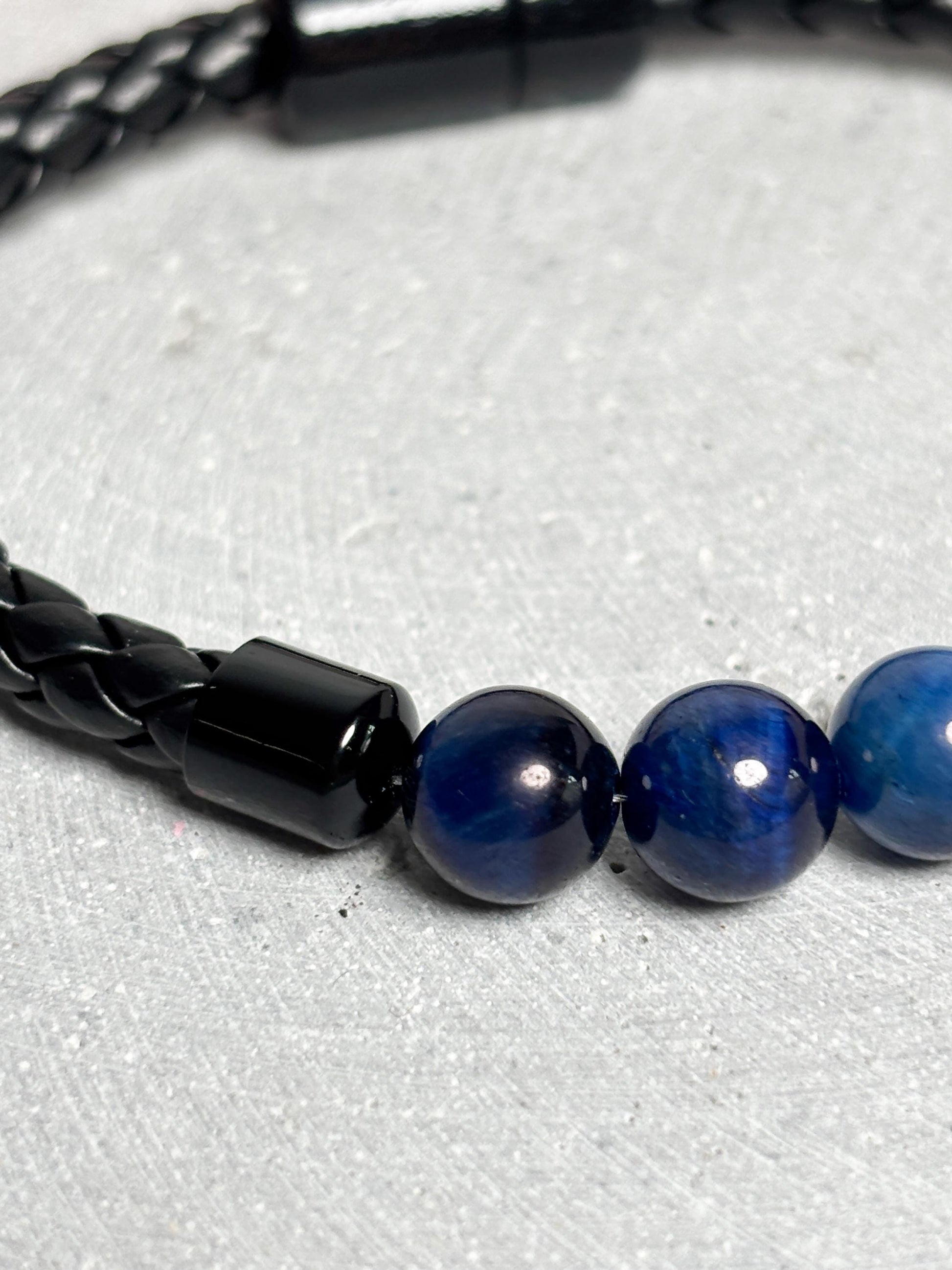 Dieses Lederarmband mit blauen Tigerauge-Perlen vereint maskuline Eleganz mit einer besonderen Symbolik. Tigerauge gilt als Schutz- und Fokusstein, der innere StĂ€rke, Klarheit und Durchhaltevermögen fördern soll. In der blauen Variante steht er zusĂ€tzlich fĂŒr Ruhe, Intuition und Gelassenheit. Die tiefblauen Perlen mit ihrem charakteristischen Schimmer wirken edel und setzen einen ausdrucksstarken Akzent zum schwarzen, geflochtenen Leder. Durch die Kombination entsteht ein modernes SchmuckstĂŒck, das nicht nur optisch, sondern auch symbolisch StĂ€rke und Ausgeglichenheit vermittelt. Das Armband ist vielseitig tragbar â ob im Business-Look, in der Freizeit oder zu besonderen AnlĂ€ssen. Der hochwertige Magnetverschluss macht das Anlegen einfach und sorgt fĂŒr sicheren Halt. Ein stilvolles Accessoire fĂŒr MĂ€nner, die Wert auf QualitĂ€t, Bedeutung und ein markantes, aber dennoch dezentes Design legen.