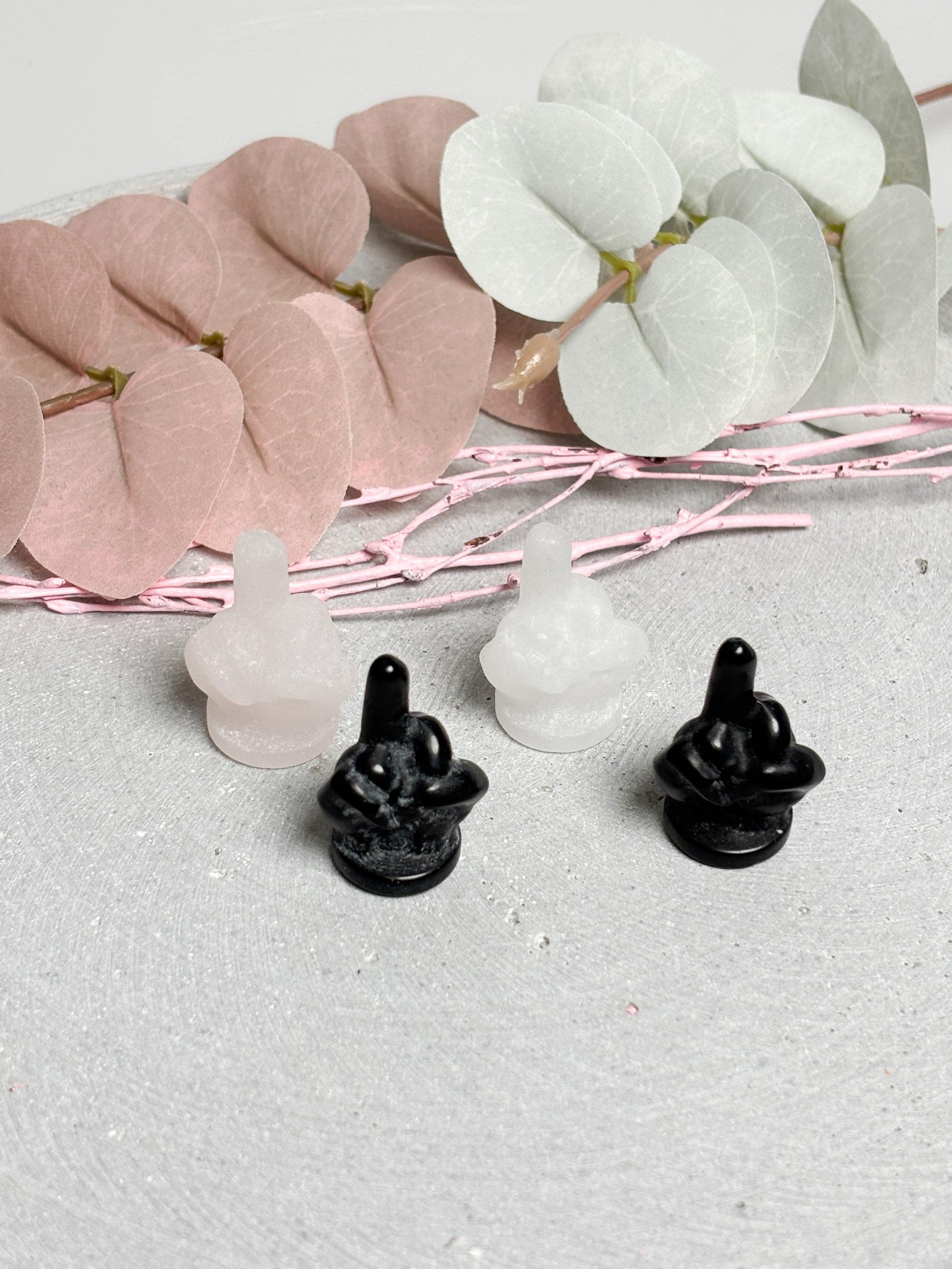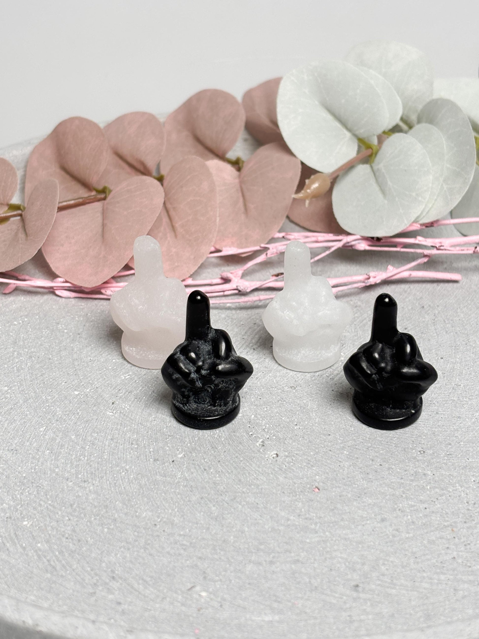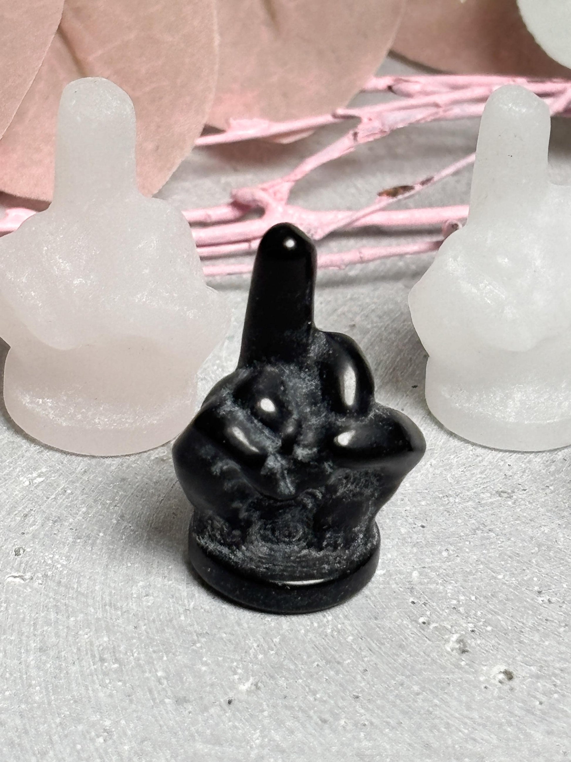 Mittelfinger Kristall Carving Obsidian Bergkristall Rosenquarz kleine Figur Hand Geste Edelstein Stein Deko Sammlung
