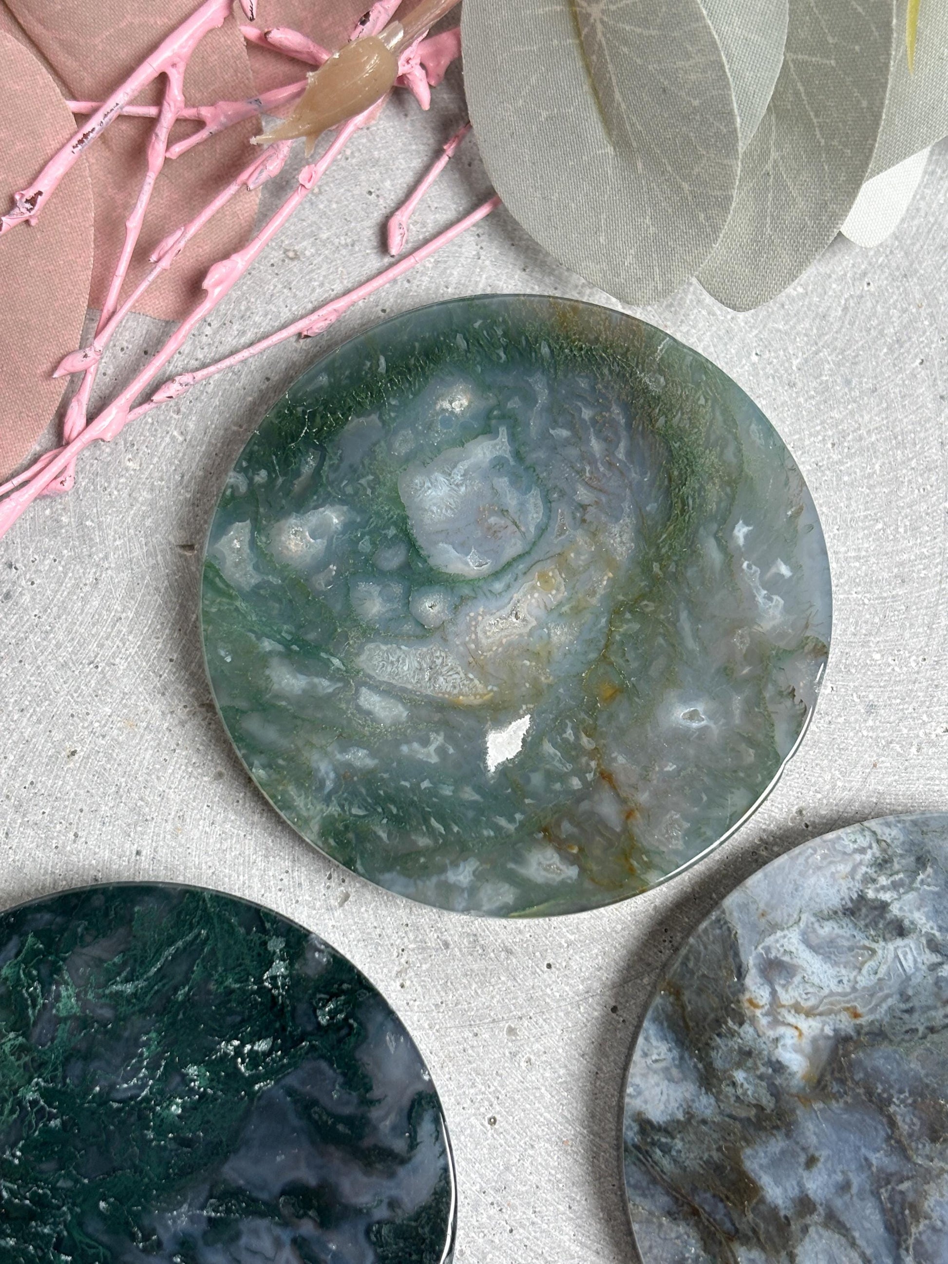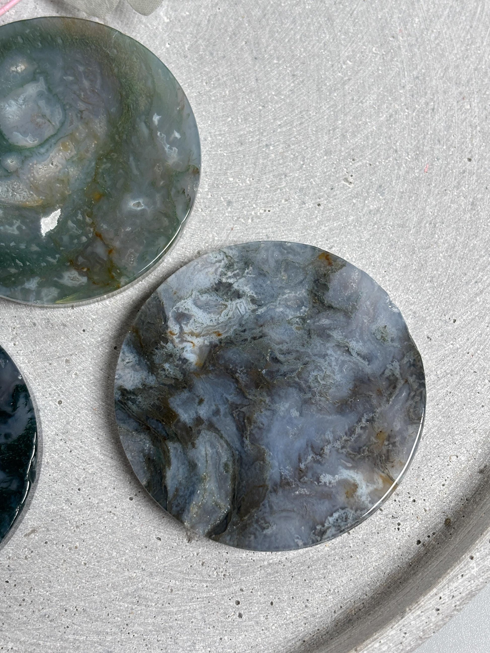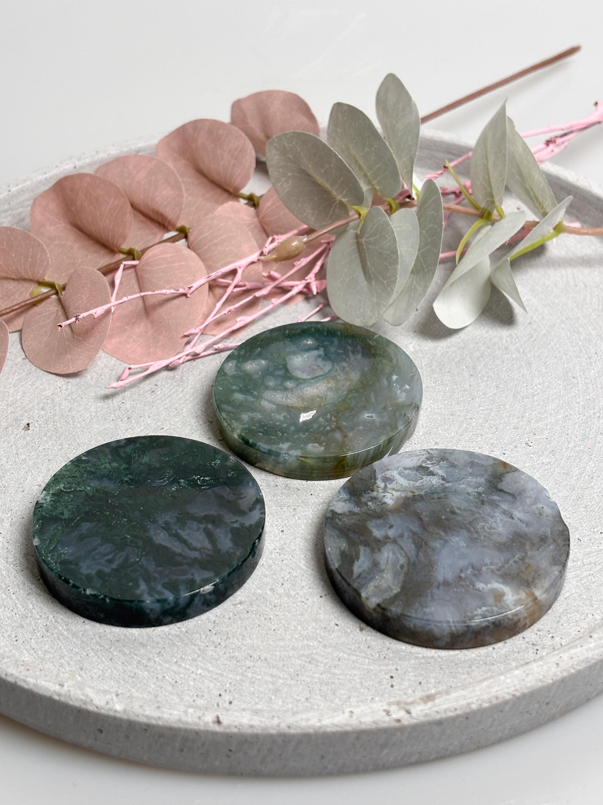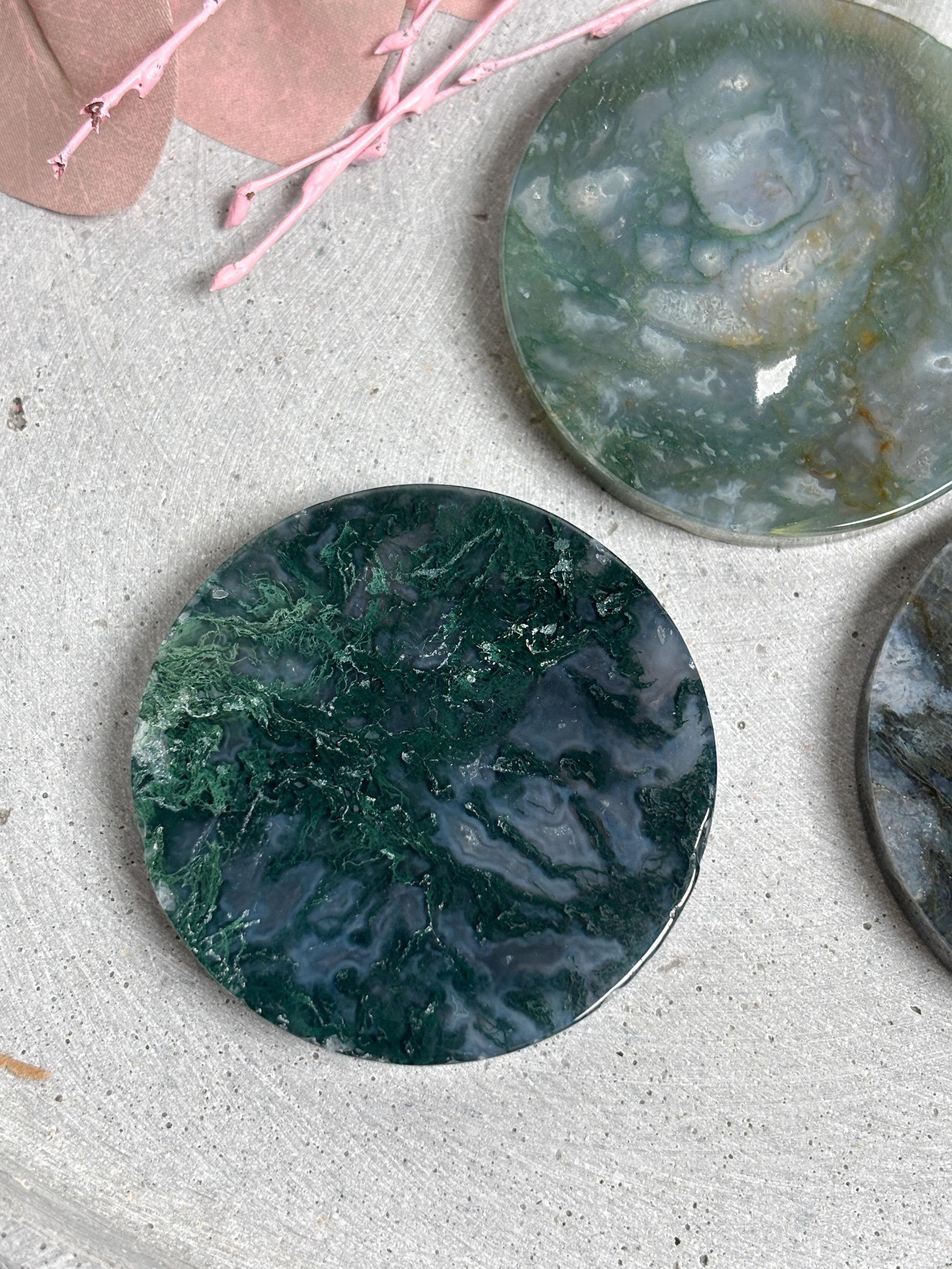 Moosachat Untersetzer aus Naturstein ca. 5,7cm große Scheiben mit einzigartigem Muster, ideal für Altare, Deko oder Kristallrituale