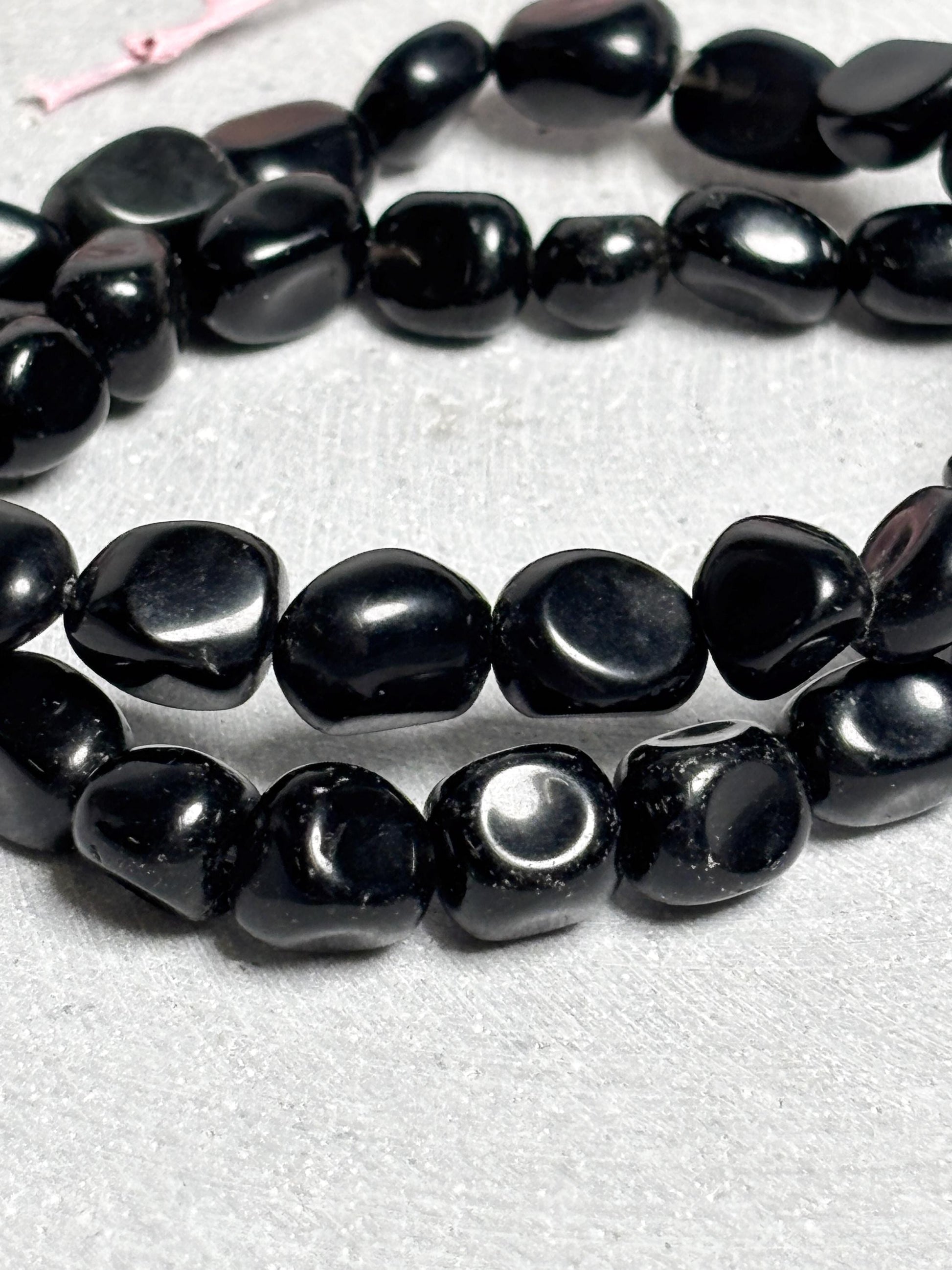Obsidian Armband elastisches Perlenarmband ca. 17,5 cm mit 9 mm Nuggets, Edelstein Schmuck in Schwarz mit Glanz