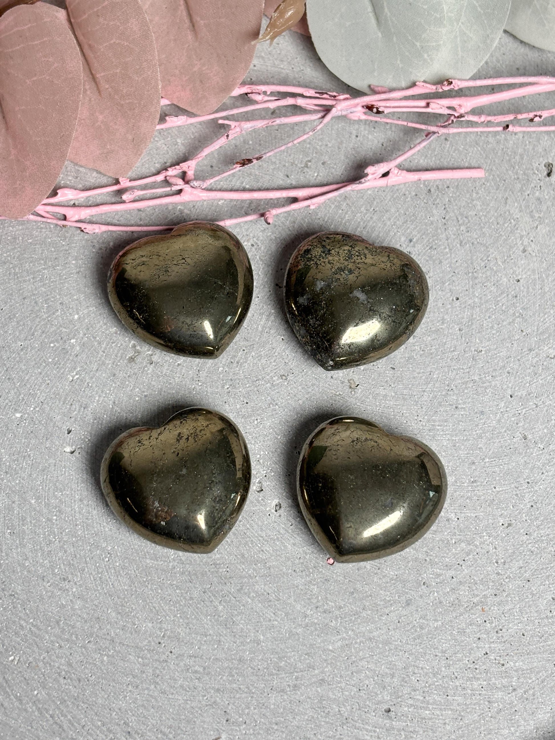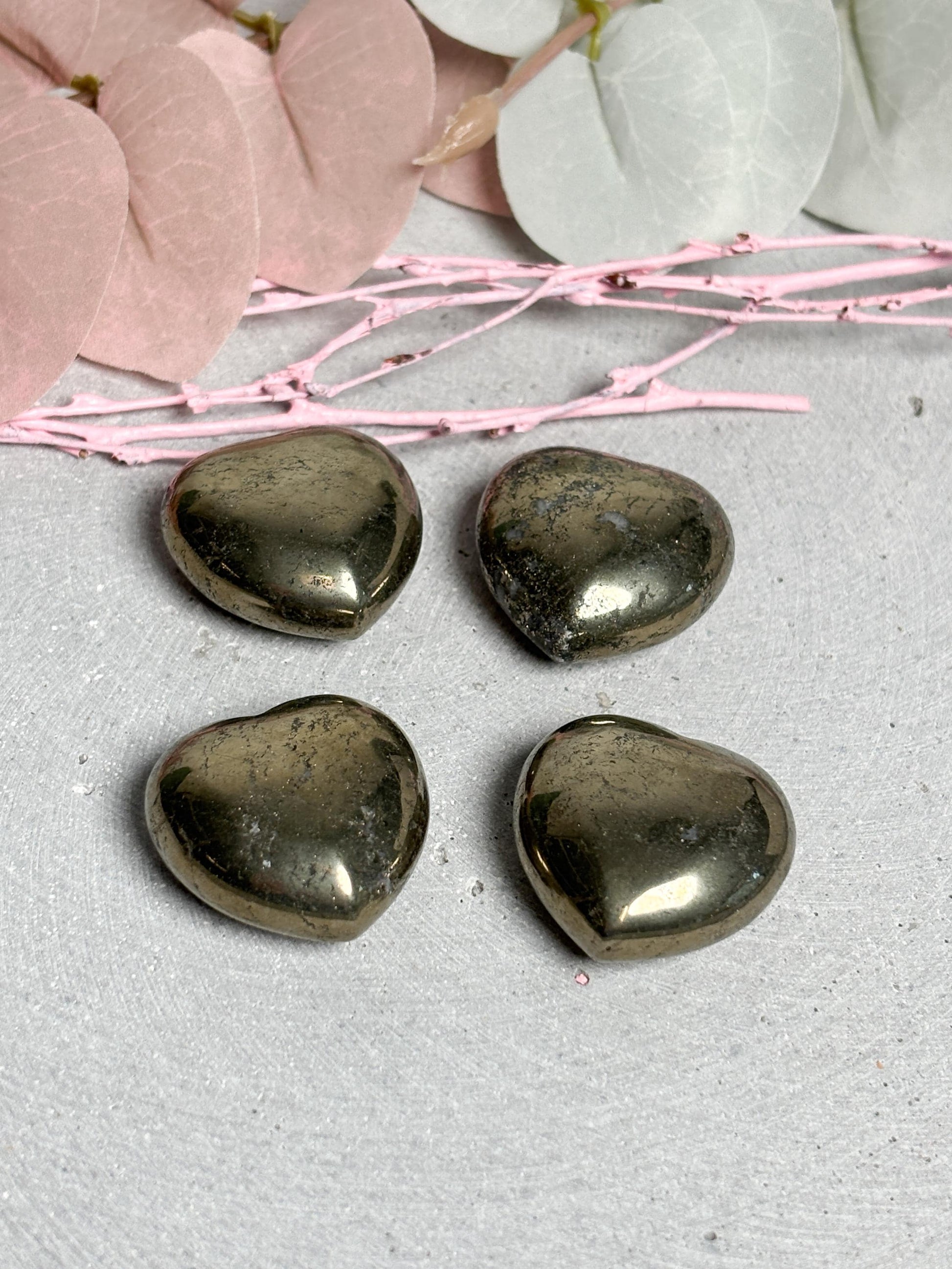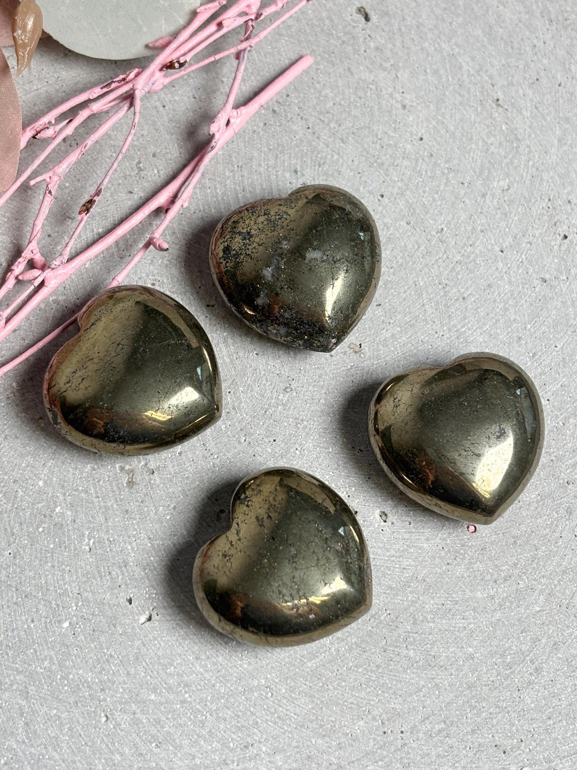 Pyrit, oft auch als „Katzengold“ bezeichnet, ist ein faszinierender Stein mit metallischem Glanz. In der Edelsteinlehre wird er mit Selbstbewusstsein, Willenskraft und Schutz assoziiert. Durch seine glänzende Oberfläche wirkt er kraftvoll und strahlend und ist ein beliebter Stein für Kristallsammlungen und Dekorationen. Als Herzform steht er zusätzlich für Liebe, Verbundenheit und Harmonie, was ihn zu einem besonderen Geschenk oder dekorativen Highlight macht. Mit seiner auffälligen Struktur, den kleinen natürlichen Vertiefungen und dem schimmernden Goldton ist jedes Herz ein individuelles Unikat. Pyritherzen eignen sich als edle Tischdeko, für Altäre, als Begleiter im Alltag oder als kleine Aufmerksamkeit für Menschen, die Kristalle und Mineralien lieben.