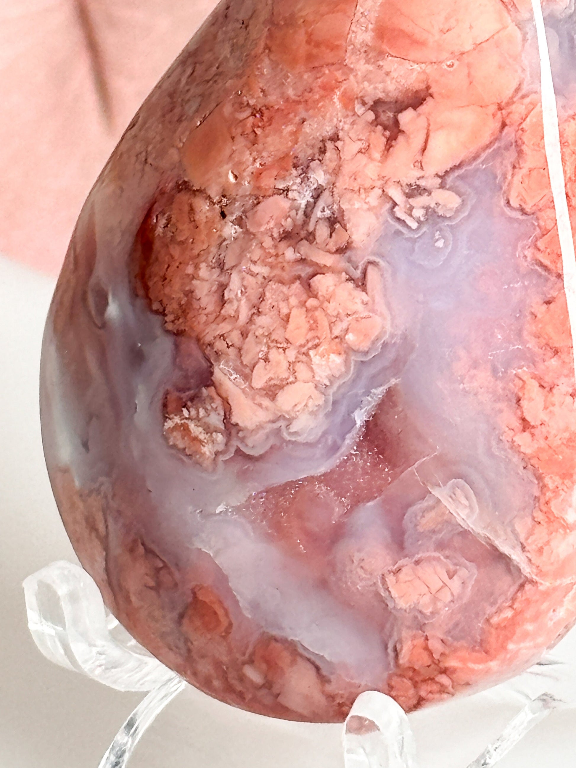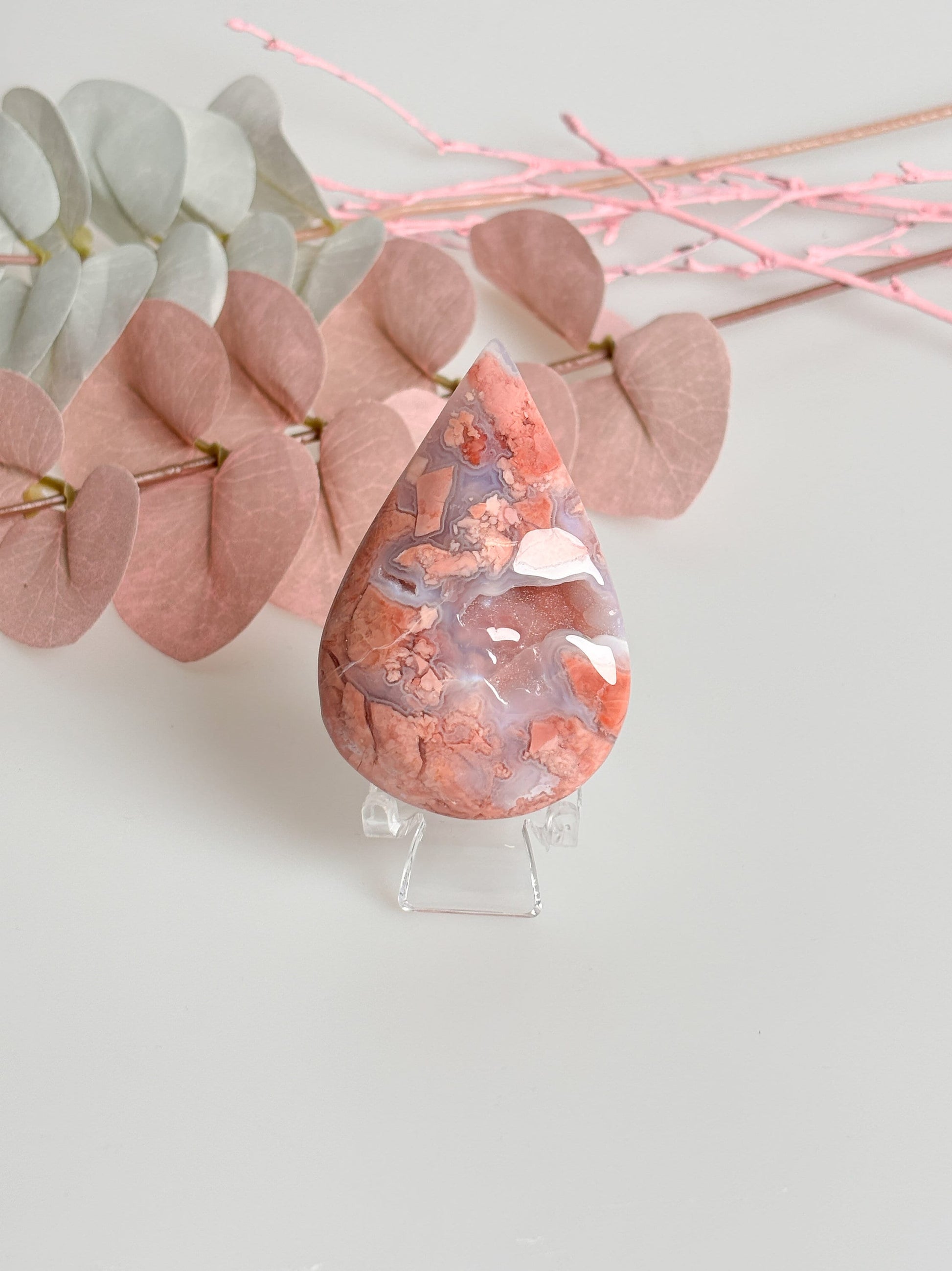 Verzaubernde Dekoration: Pink Candy Cotton Achat mit Drusen in Tropfenform