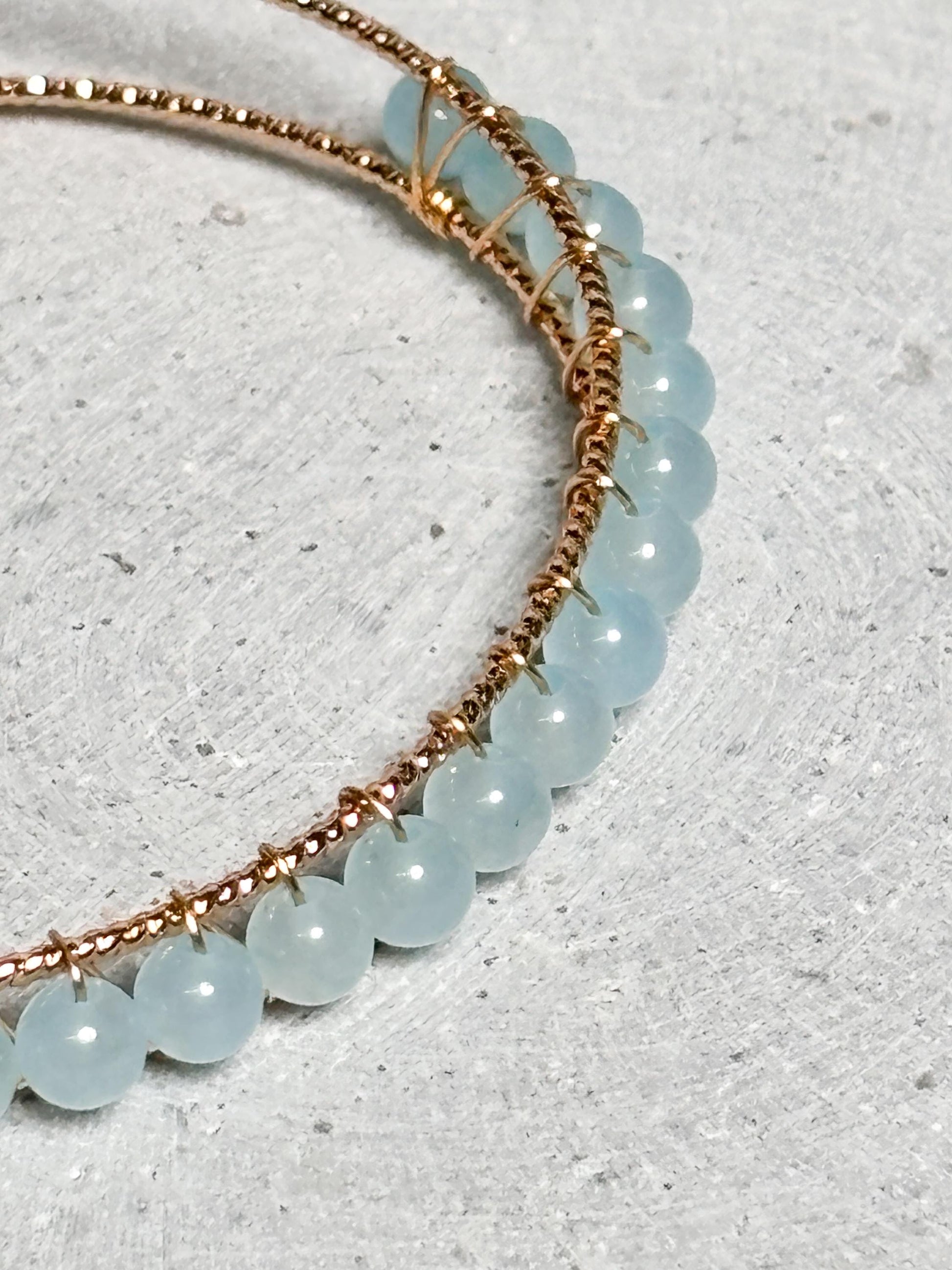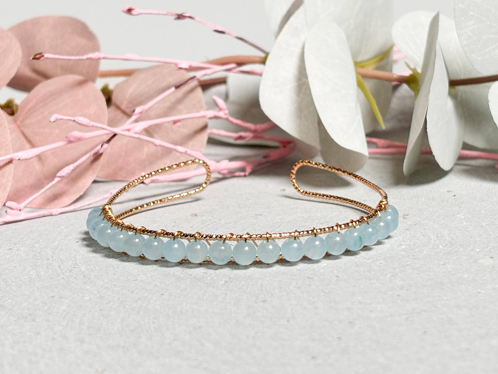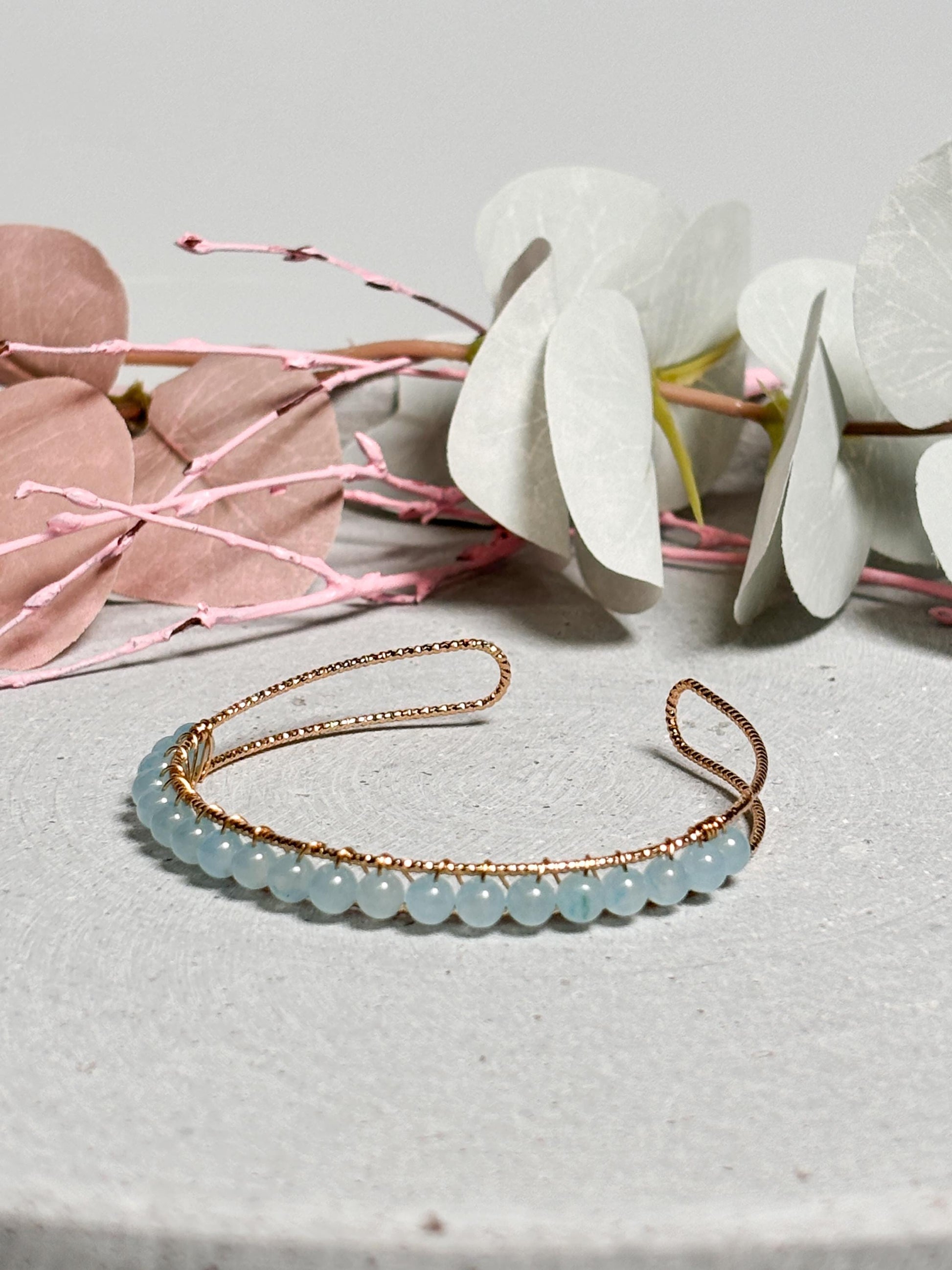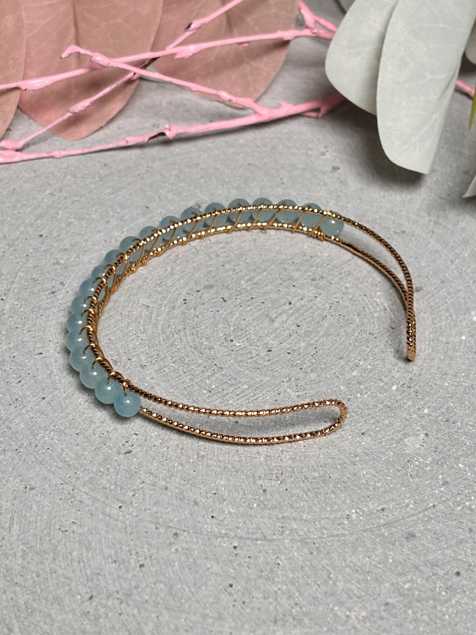 Vergoldeter Armreif aus Kupfer mit Calcedonperlen 17,5 cm, Biegsam, 4 mm Perlen