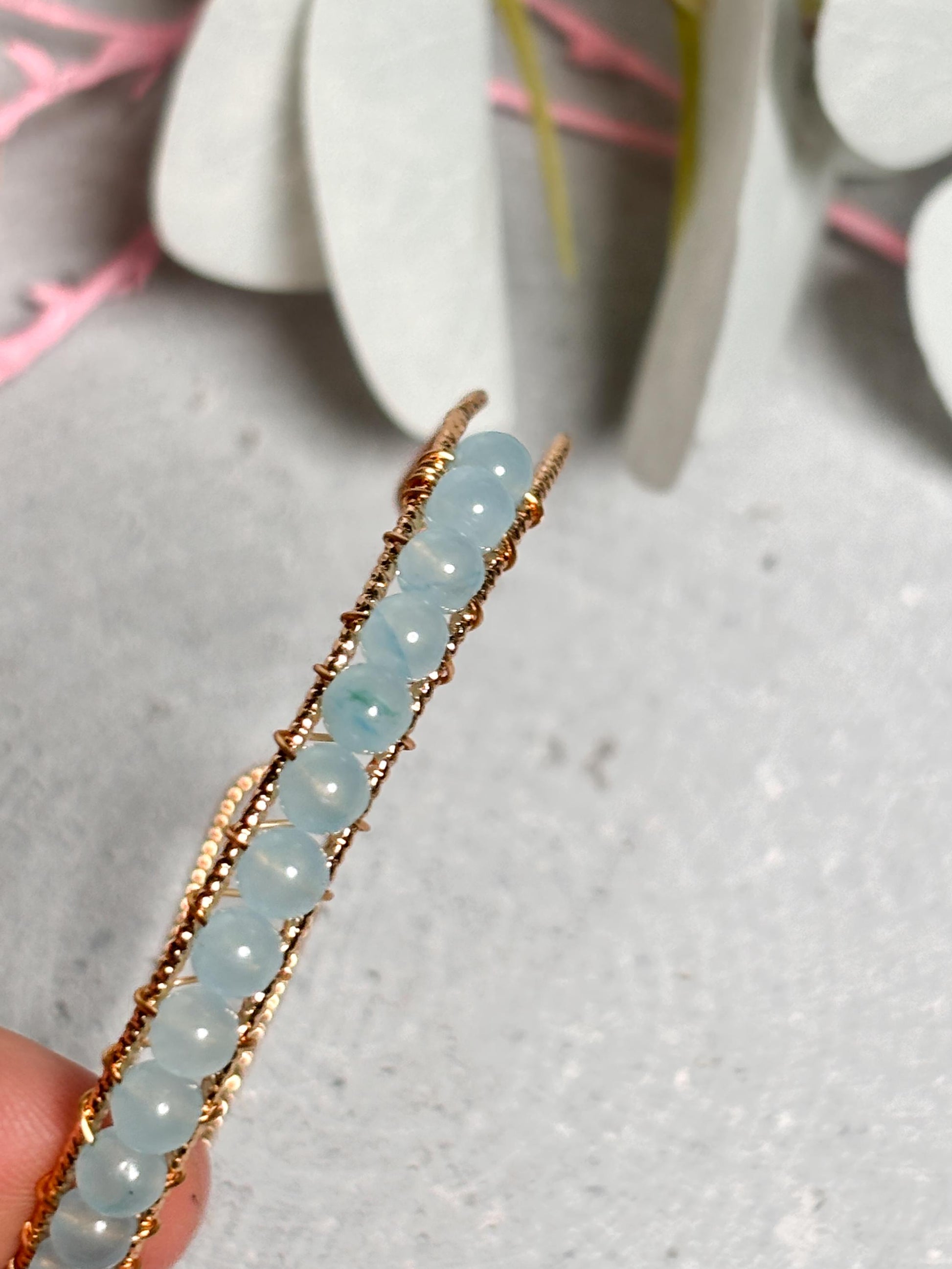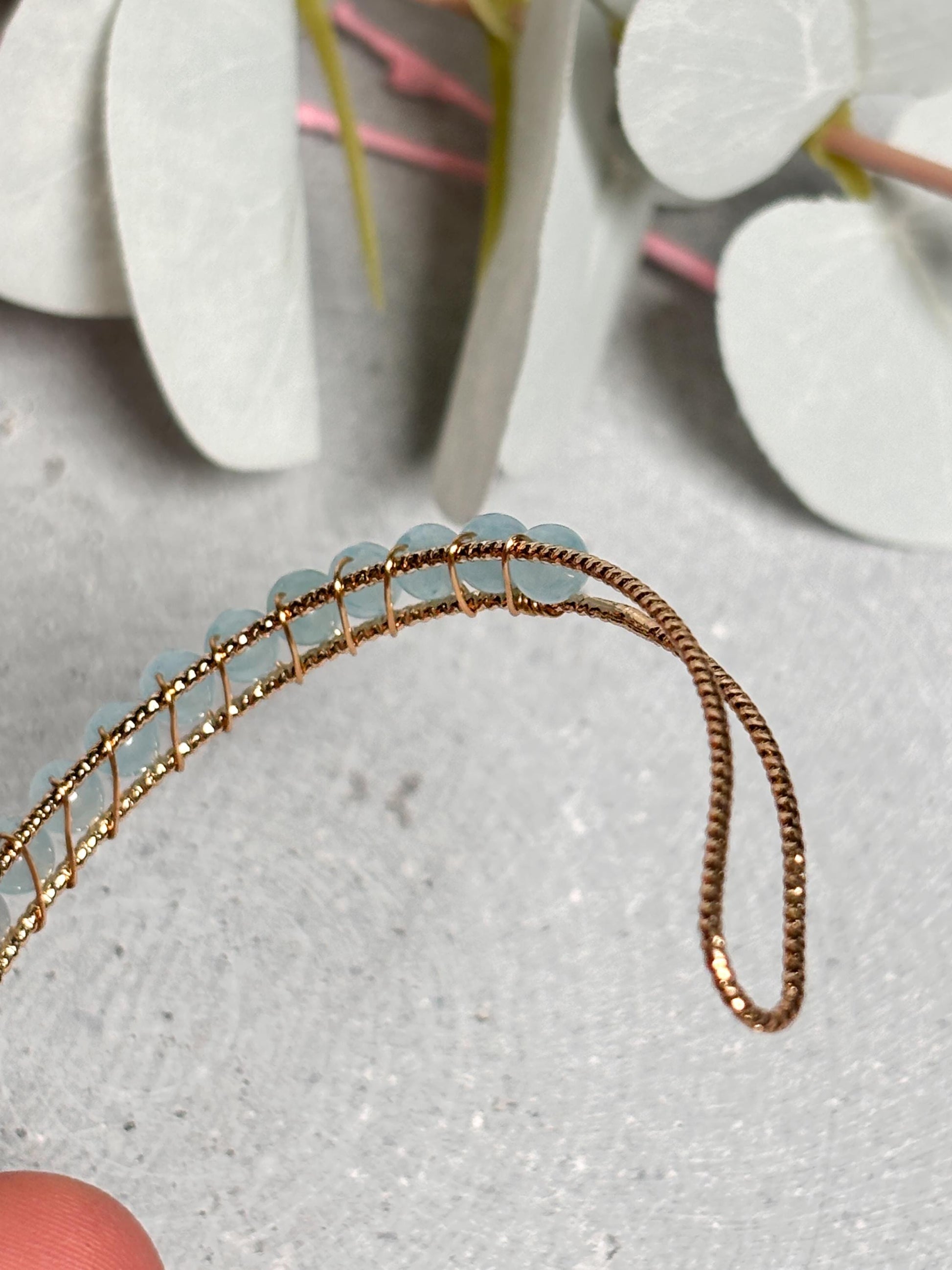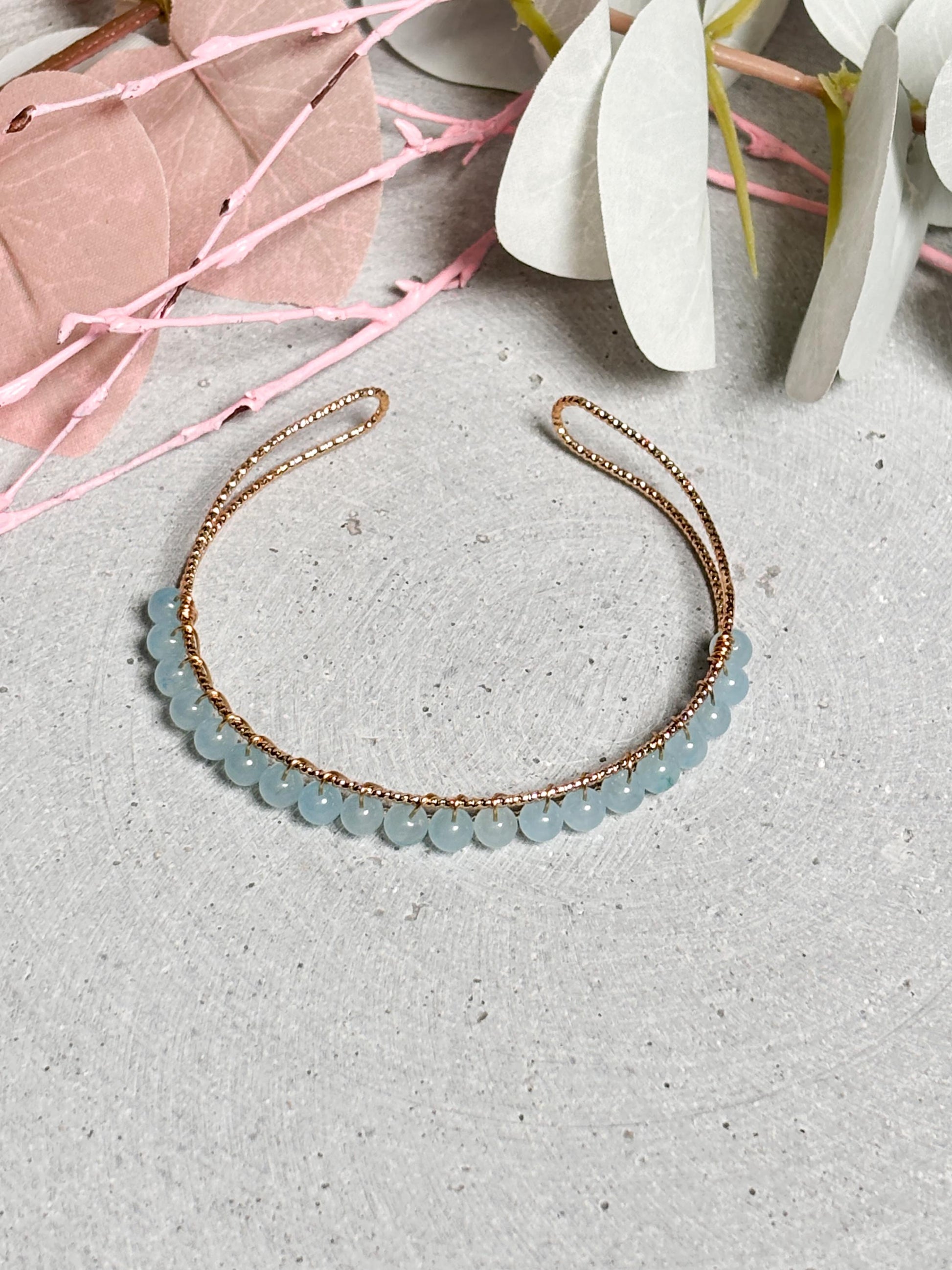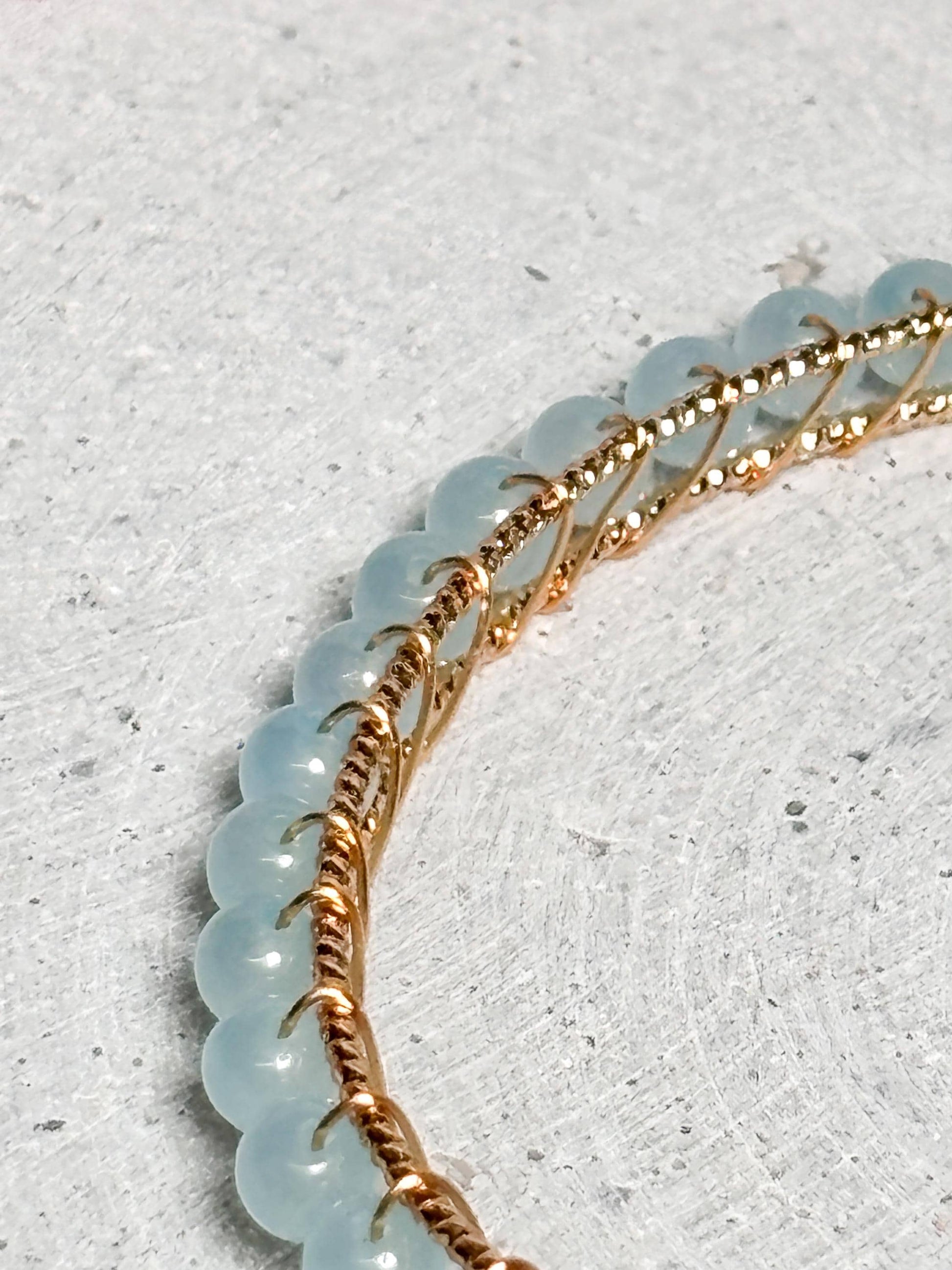 Vergoldeter Armreif aus Kupfer mit Calcedonperlen 17,5 cm, Biegsam, 4 mm Perlen