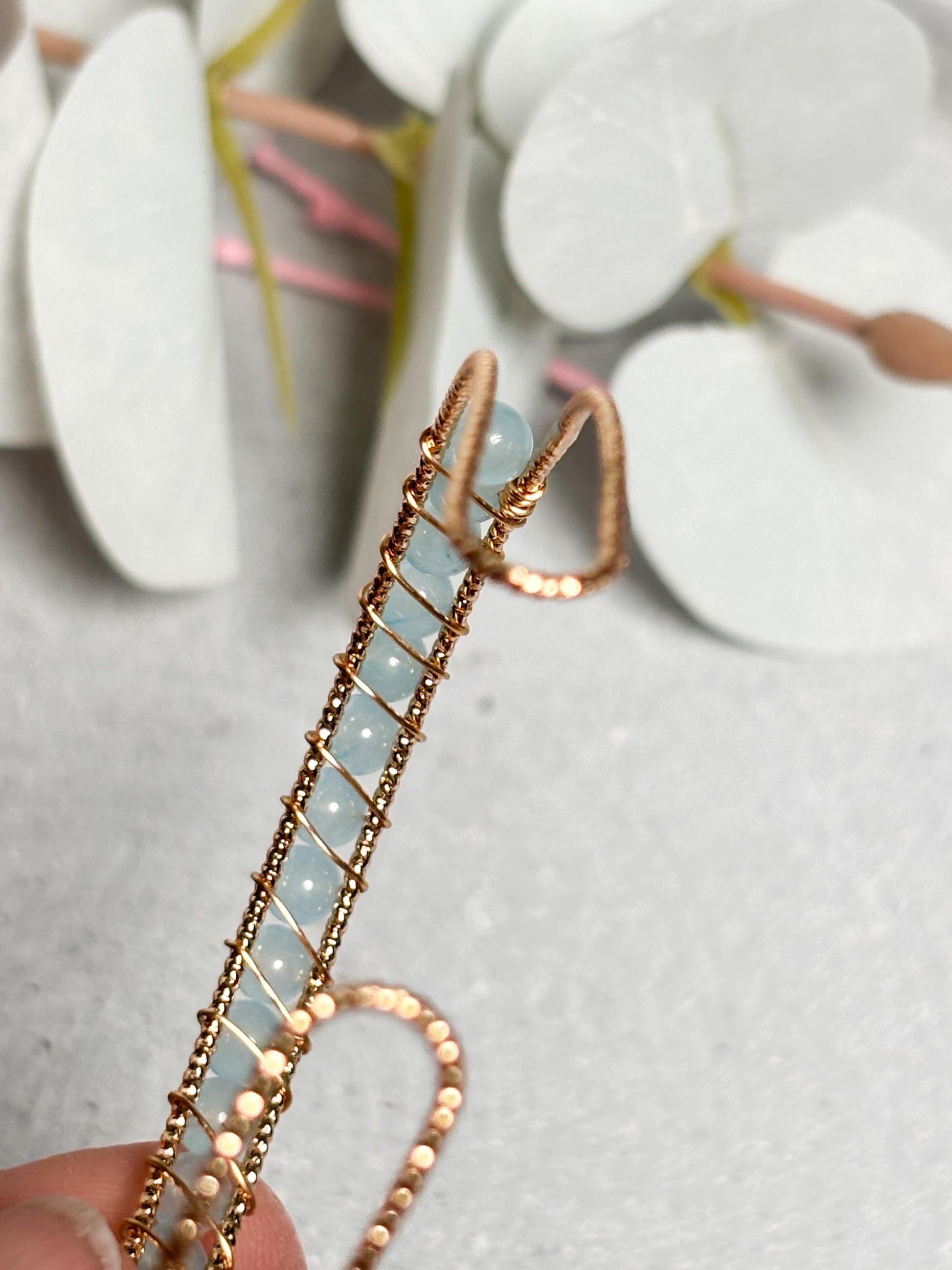 Dieser elegante Armreif aus hochwertigem Kupfer, das mit einer schimmernden Goldschicht überzogen ist, ist ein wunderschönes Schmuckstück, das sich perfekt an dein Handgelenk anpasst. Die 4 mm großen Calcedonperlen verleihen dem Armreif eine sanfte, beruhigende Ausstrahlung. Der Reif ist biegsam und lässt sich individuell anpassen, sodass er bequem getragen werden kann.