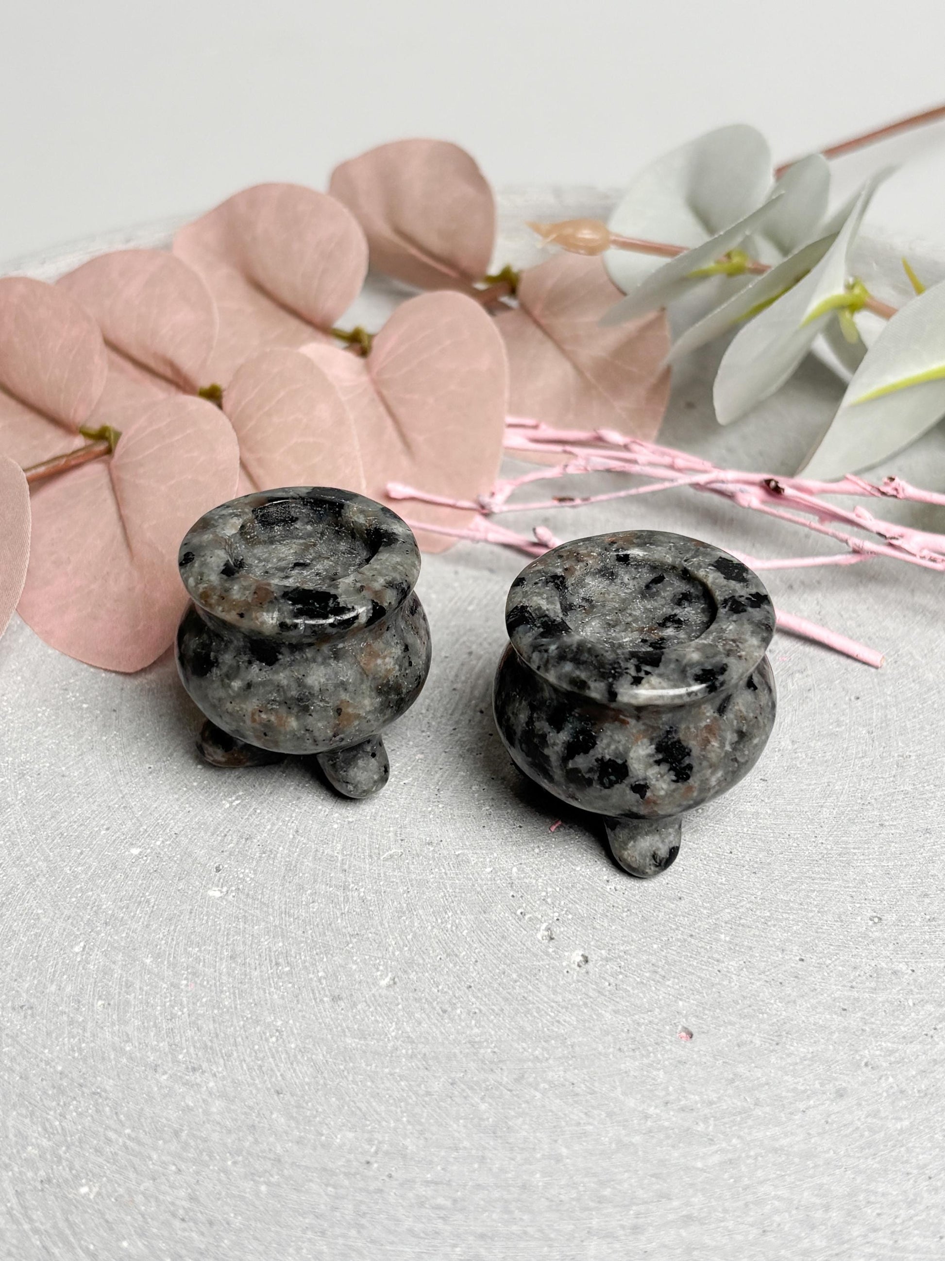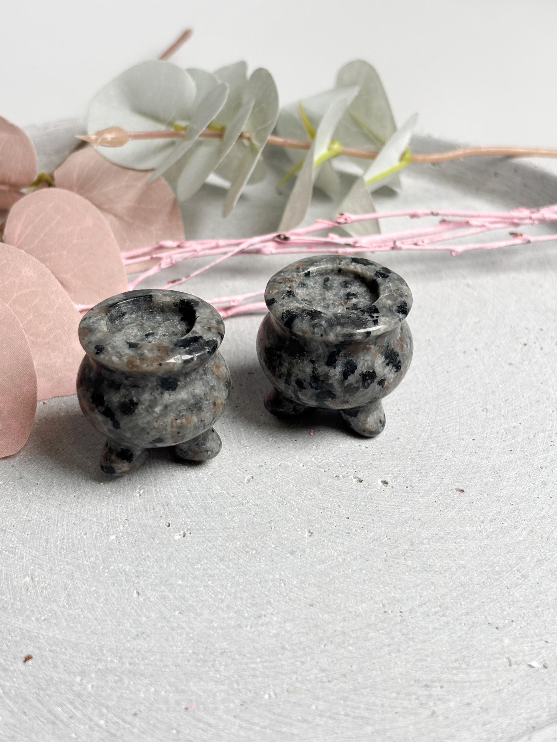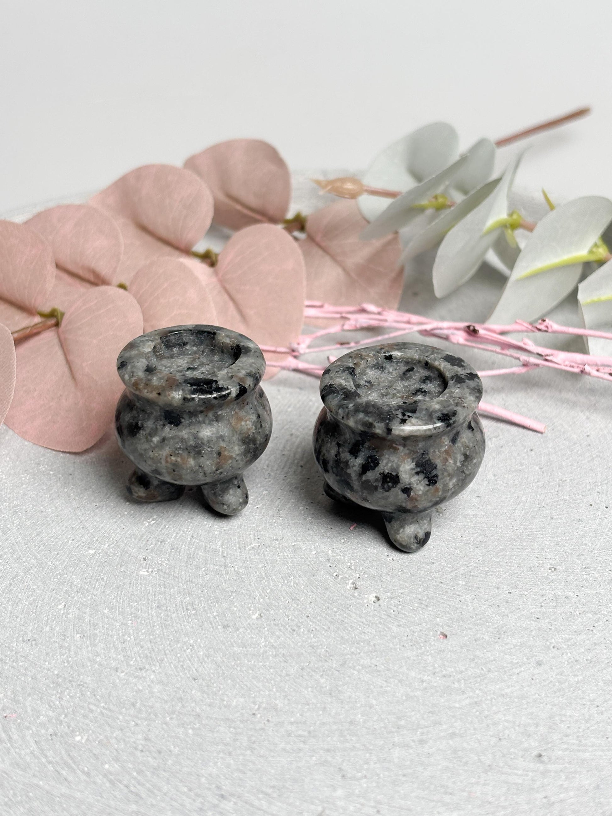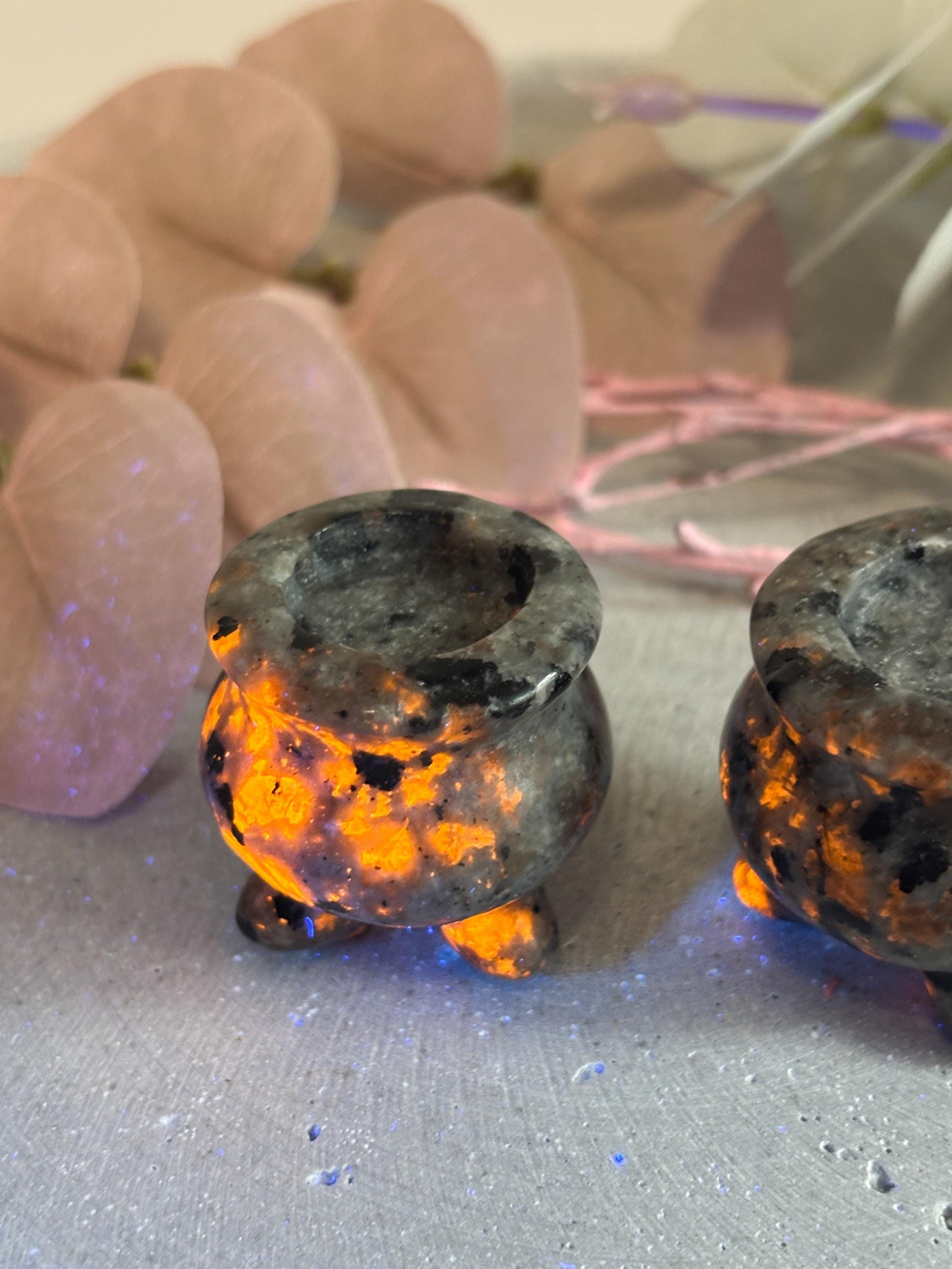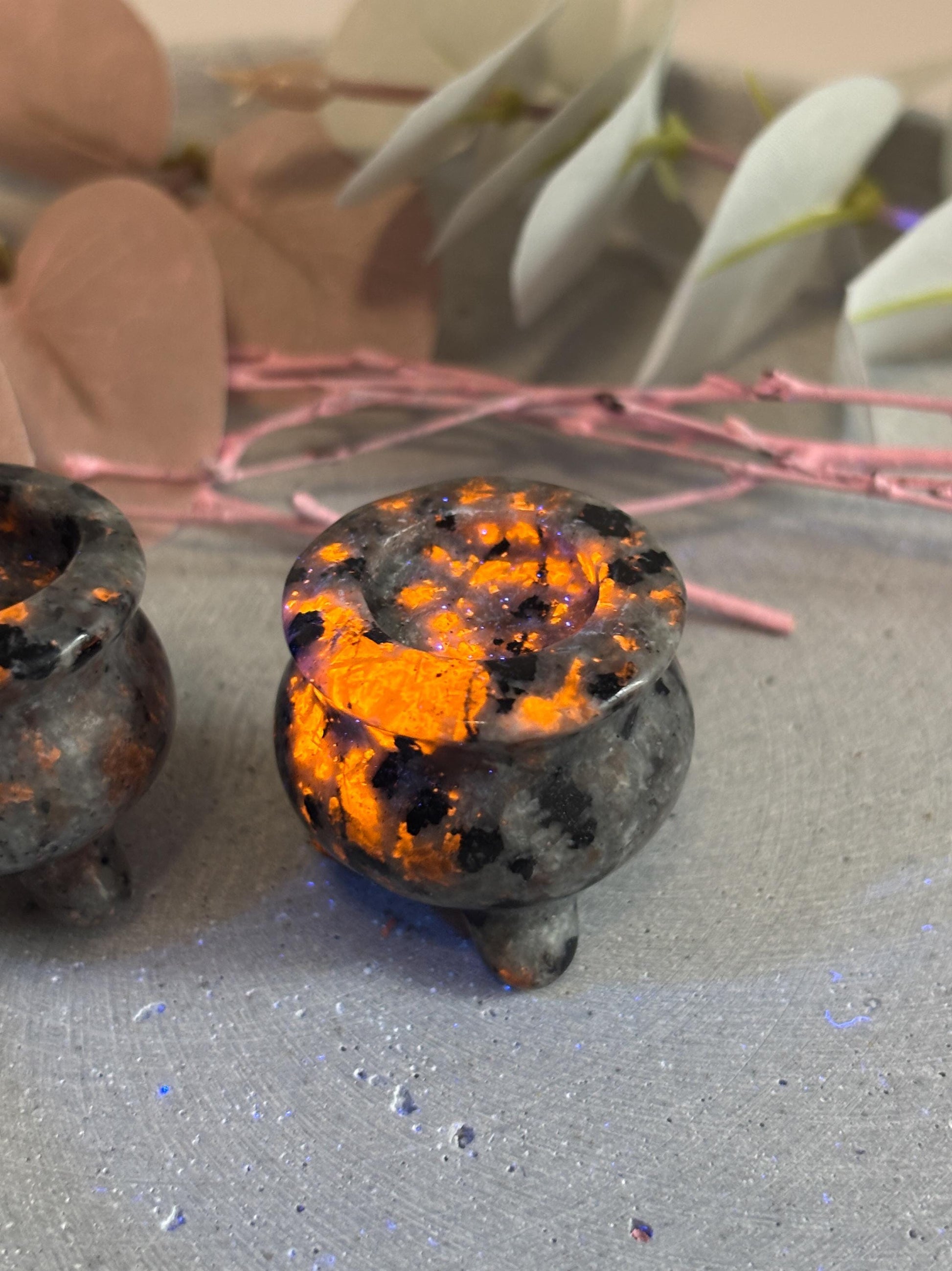 Yooperlite Hexenkessel ca. 3 cm kleine Kristall Deko, Mini Hexenkessel aus Yooperlite, spirituelle Altardeko, Hexenaltar Zubehör