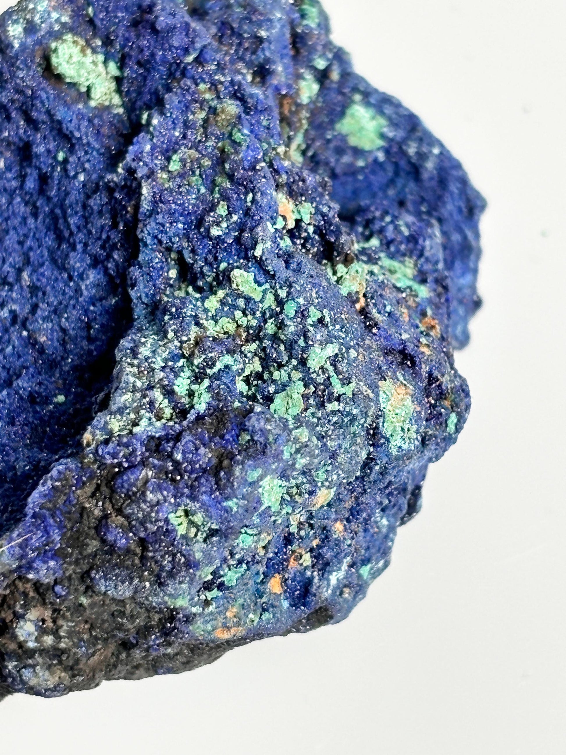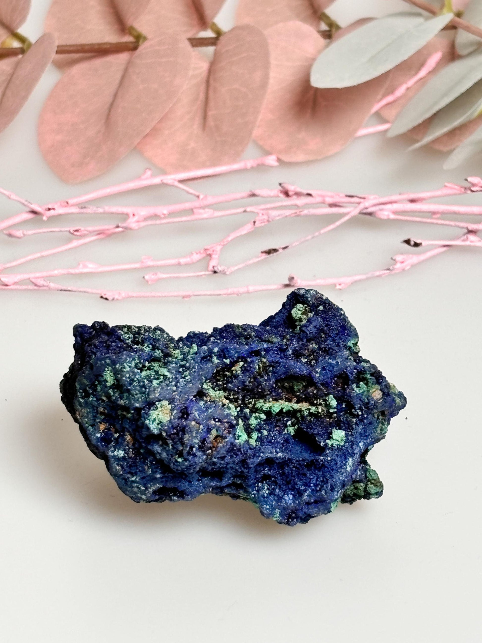 Dieses beeindruckende Azurit Natursteinstück besticht durch seine faszinierende Struktur und den einzigartigen Glitzer. Mit einer Größe von ca. 6,1 x 4,4 x 3,7 cm und einem Gewicht von 96 g zeigt es eine atemberaubende Farbzusammensetzung in tiefen Blau- und Grüntönen. Das Stück ist naturbelassen und bietet einen natürlichen Glanz, der jeden Kristallliebhaber begeistert.