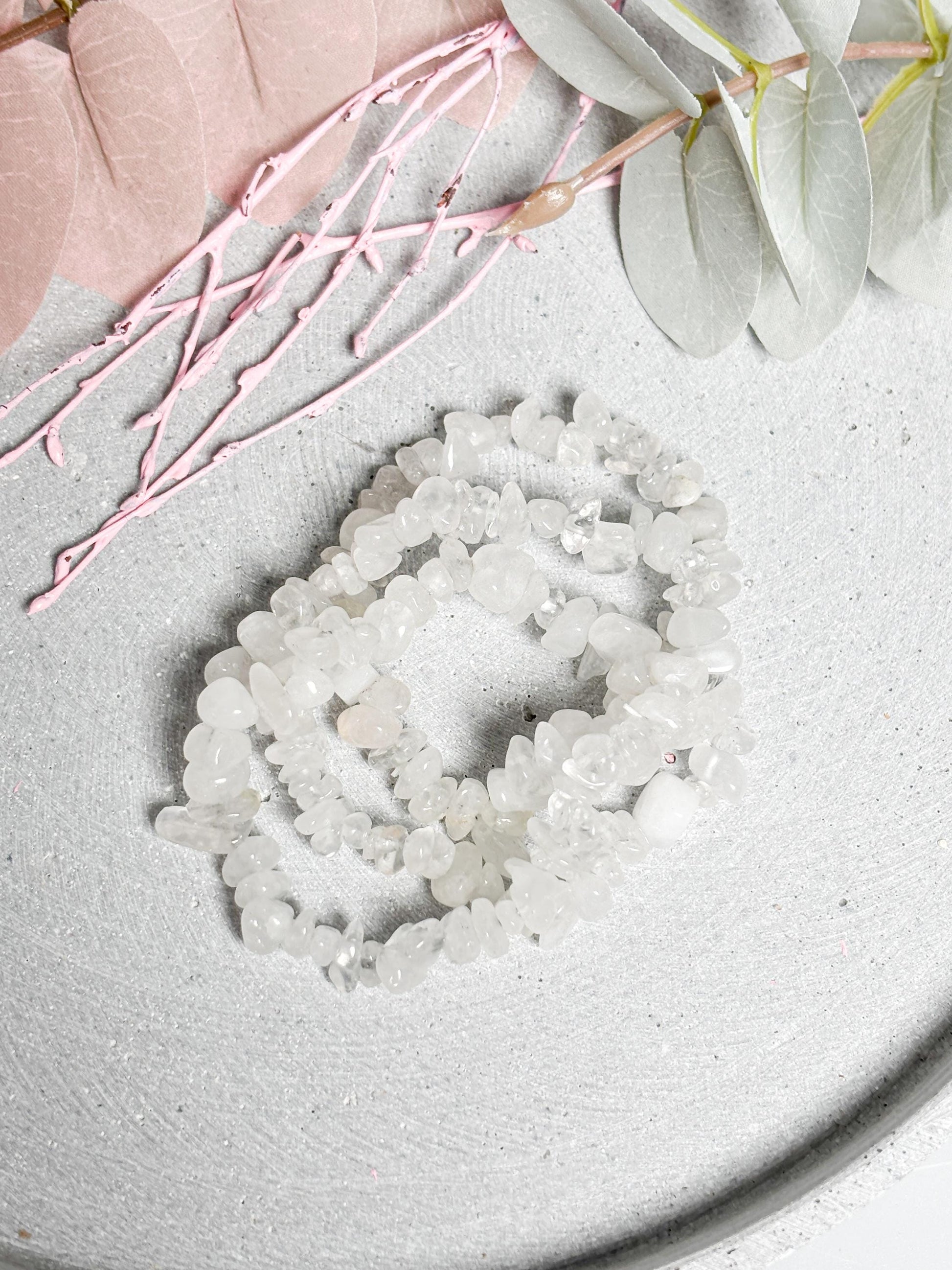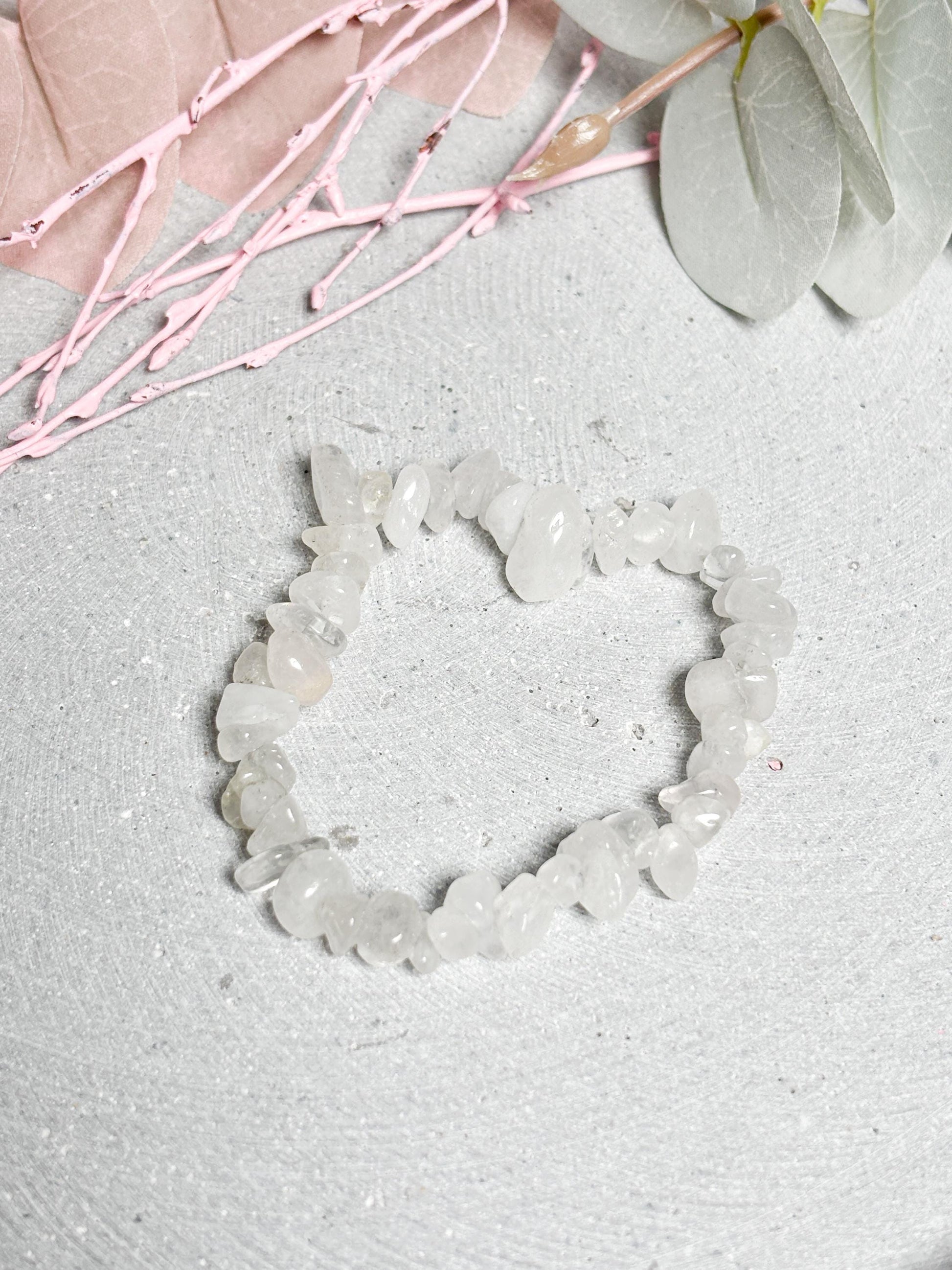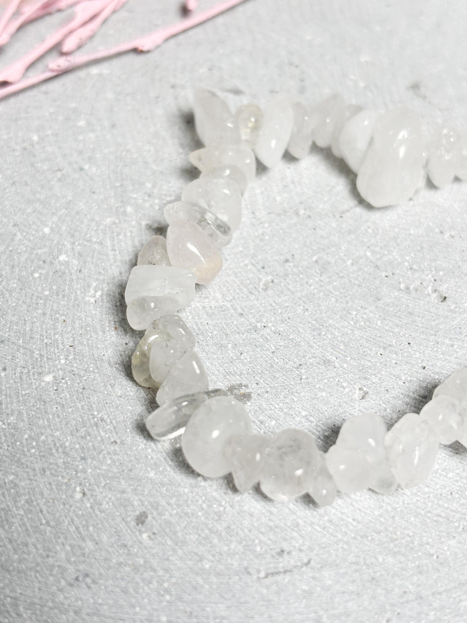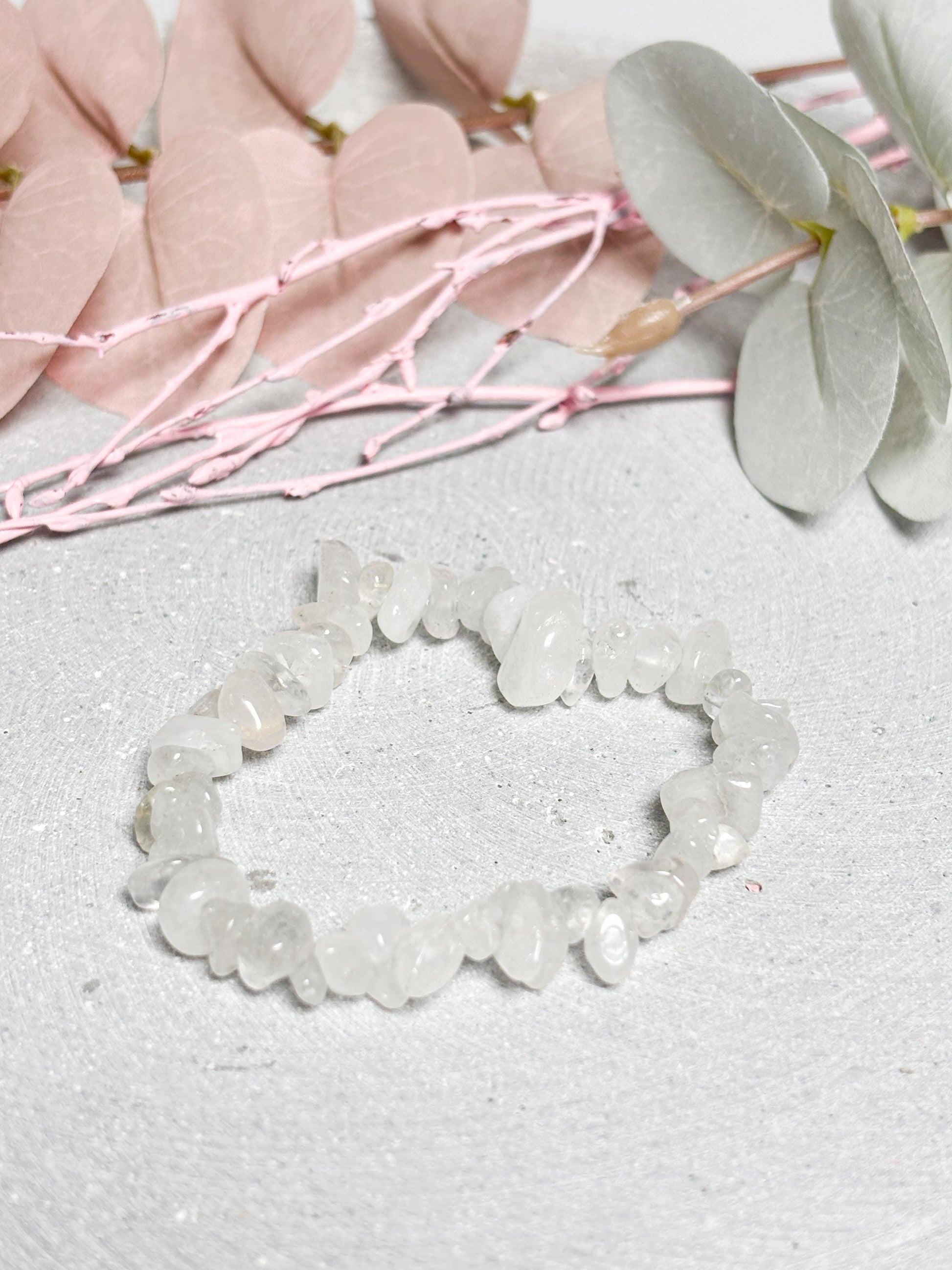 Bergkristall Splitterarmband elastisches Edelstein Armband ca. 17,5 cm, milchig klar, Kristall Schmuck, Naturstein Armband 8 mm