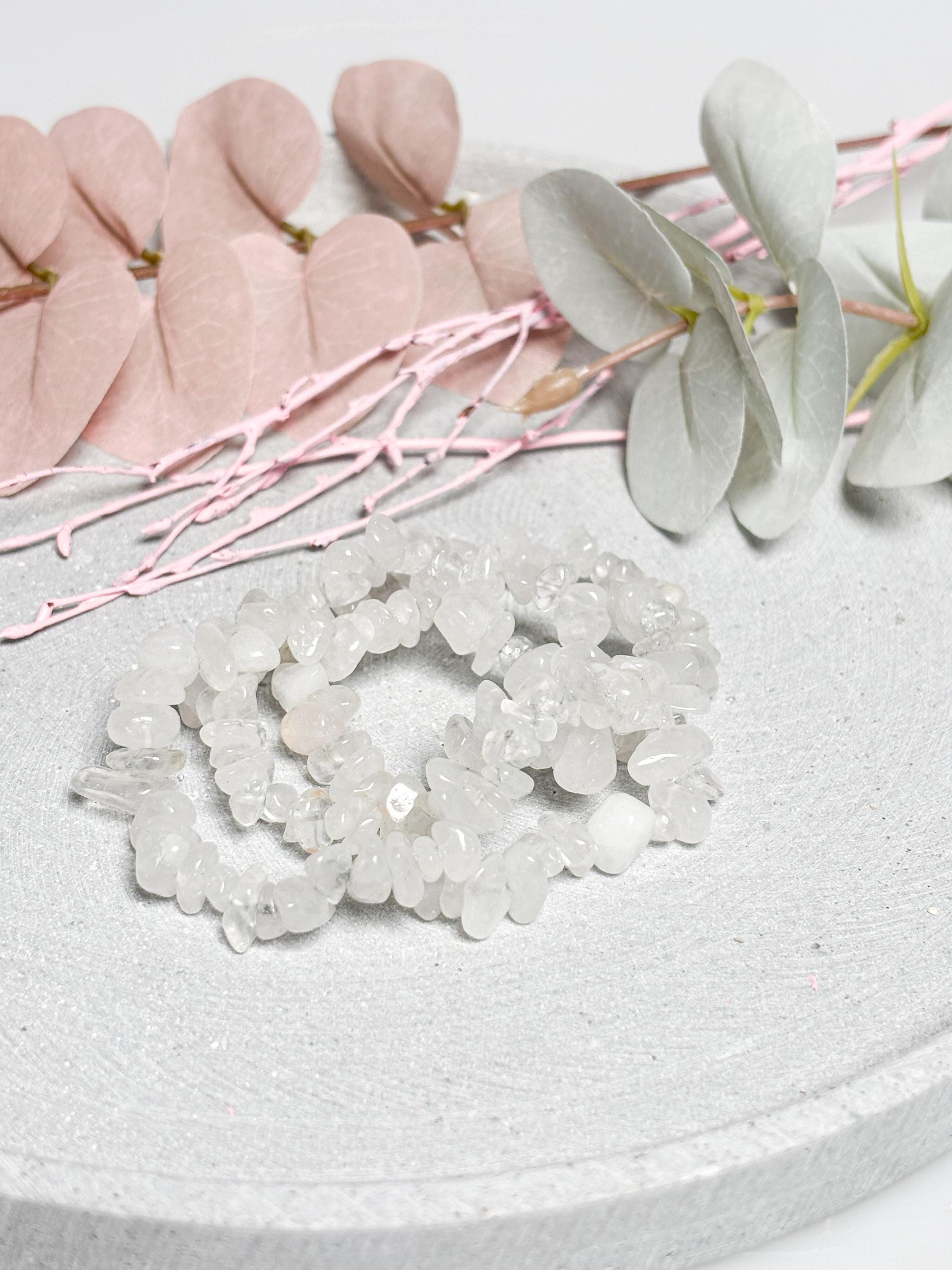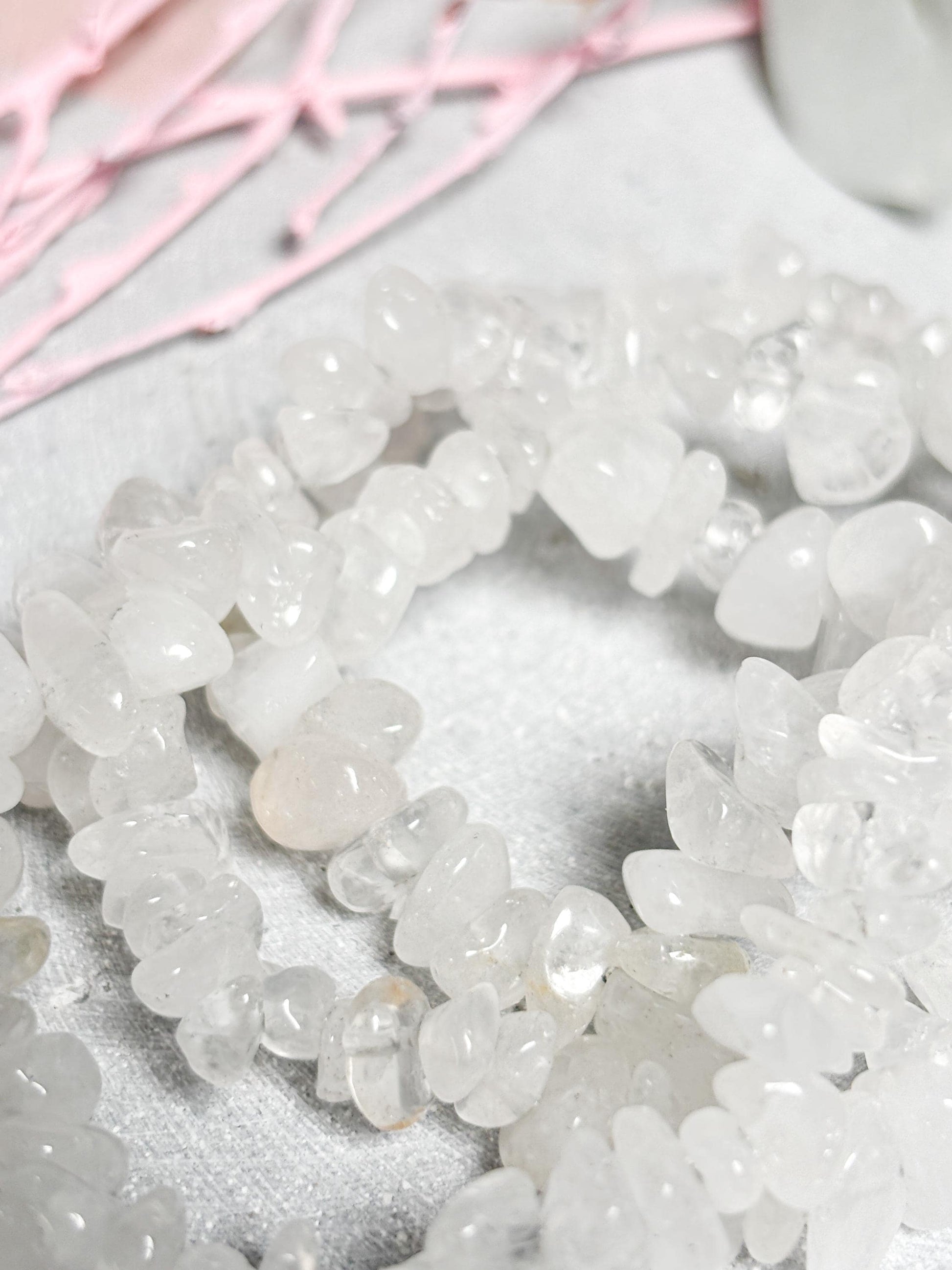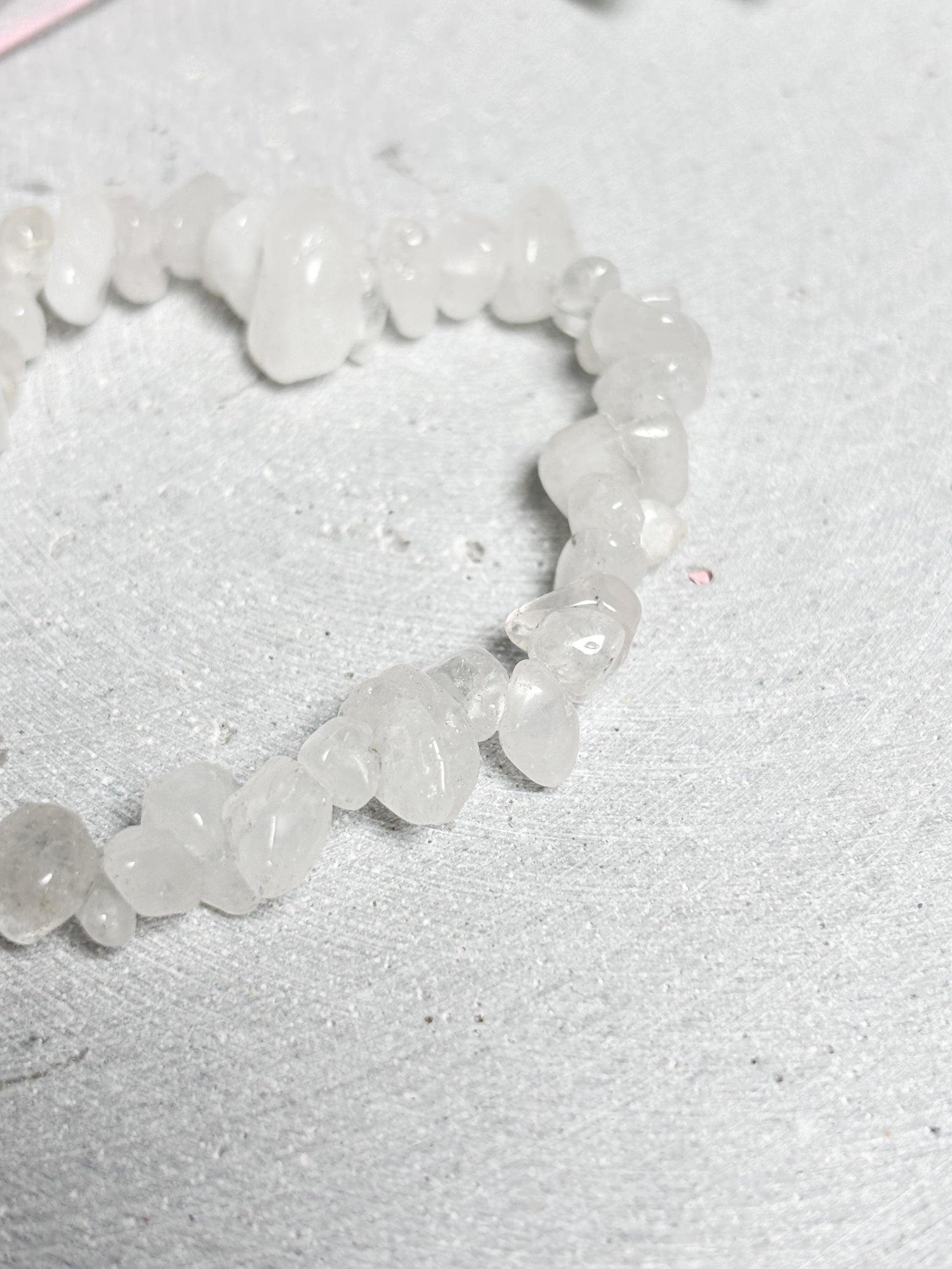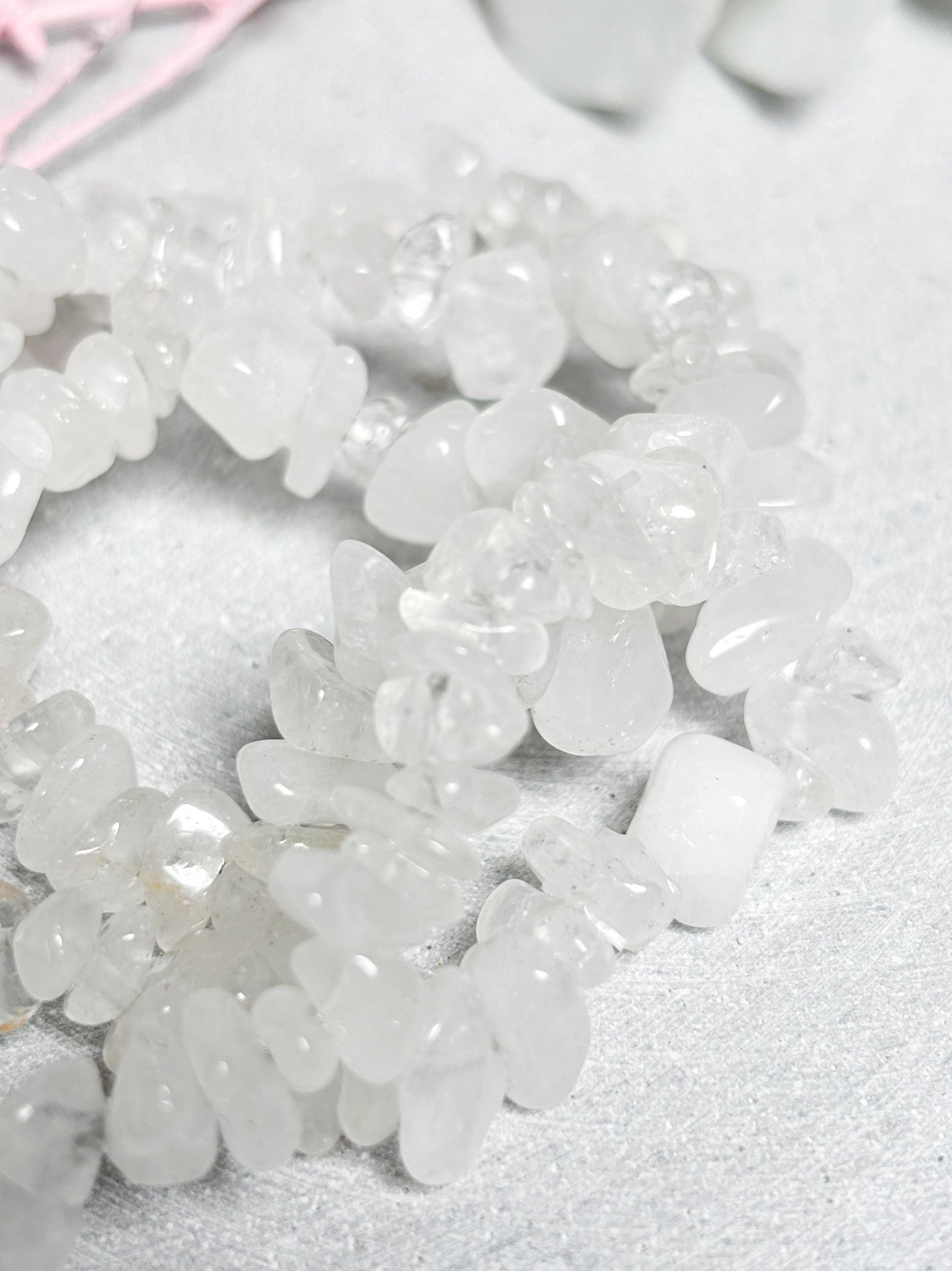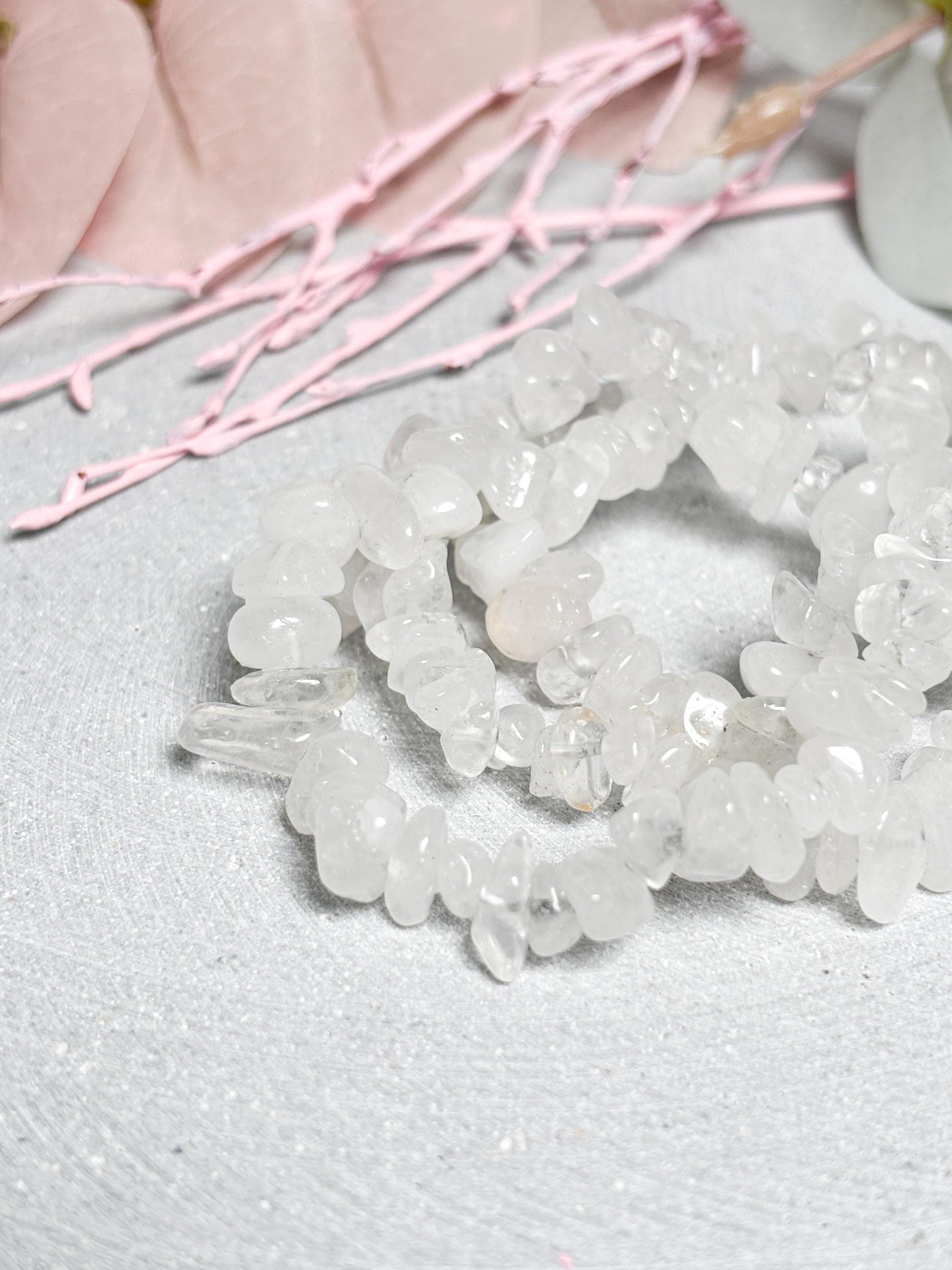 Bergkristall gilt als „Meisterstein“ unter den Kristallen – er steht für Klarheit, Energie und Harmonie. In seiner leicht milchigen Form schenkt er eine sanfte, ausgleichende Schwingung, die Körper und Geist in Balance bringt. Er soll helfen, die Konzentration zu fördern, innere Ruhe zu stärken und neue Energie zu spenden. Dieses milchig-weiße Splitterarmband aus Bergkristall verbindet Natürlichkeit mit schlichter Eleganz – ein zeitloser Begleiter im Alltag oder bei Meditation.
