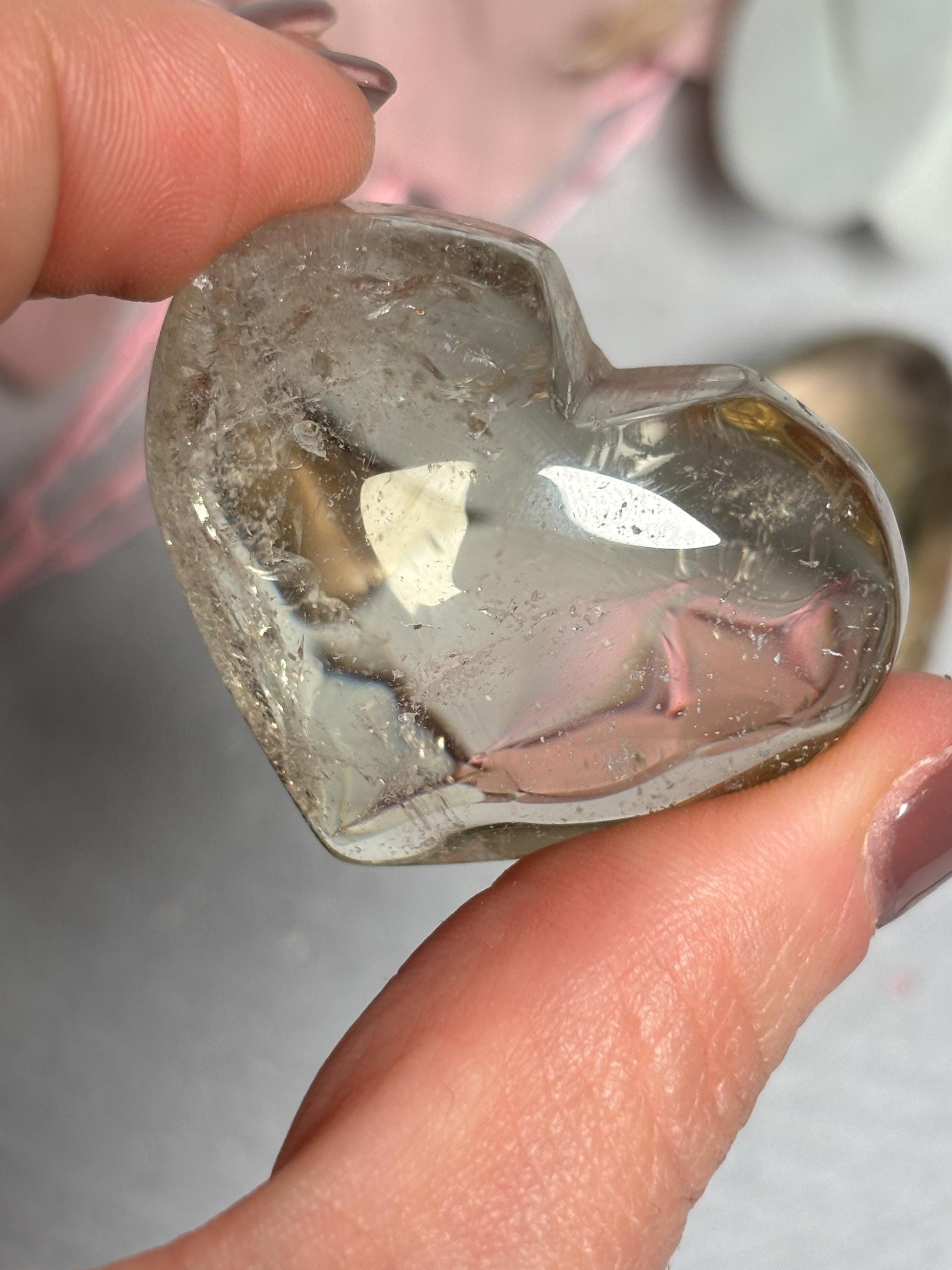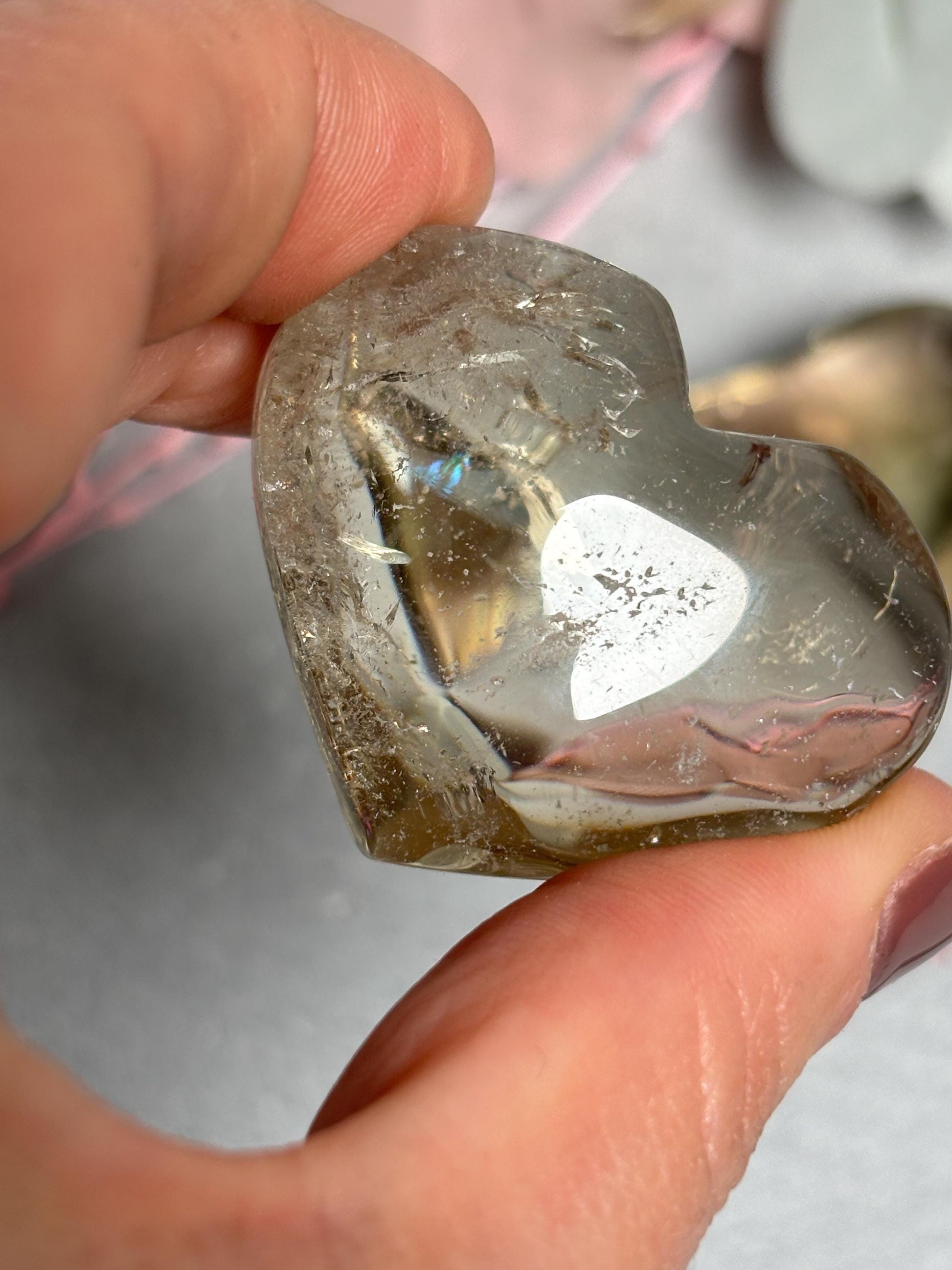 Citrin Rauchquarz Herz ca. 4,35 cm, teils mit Gartenquarz Einschlüssen, transparentes Edelstein Herz, Kristallherz, Healing Crystal Heart