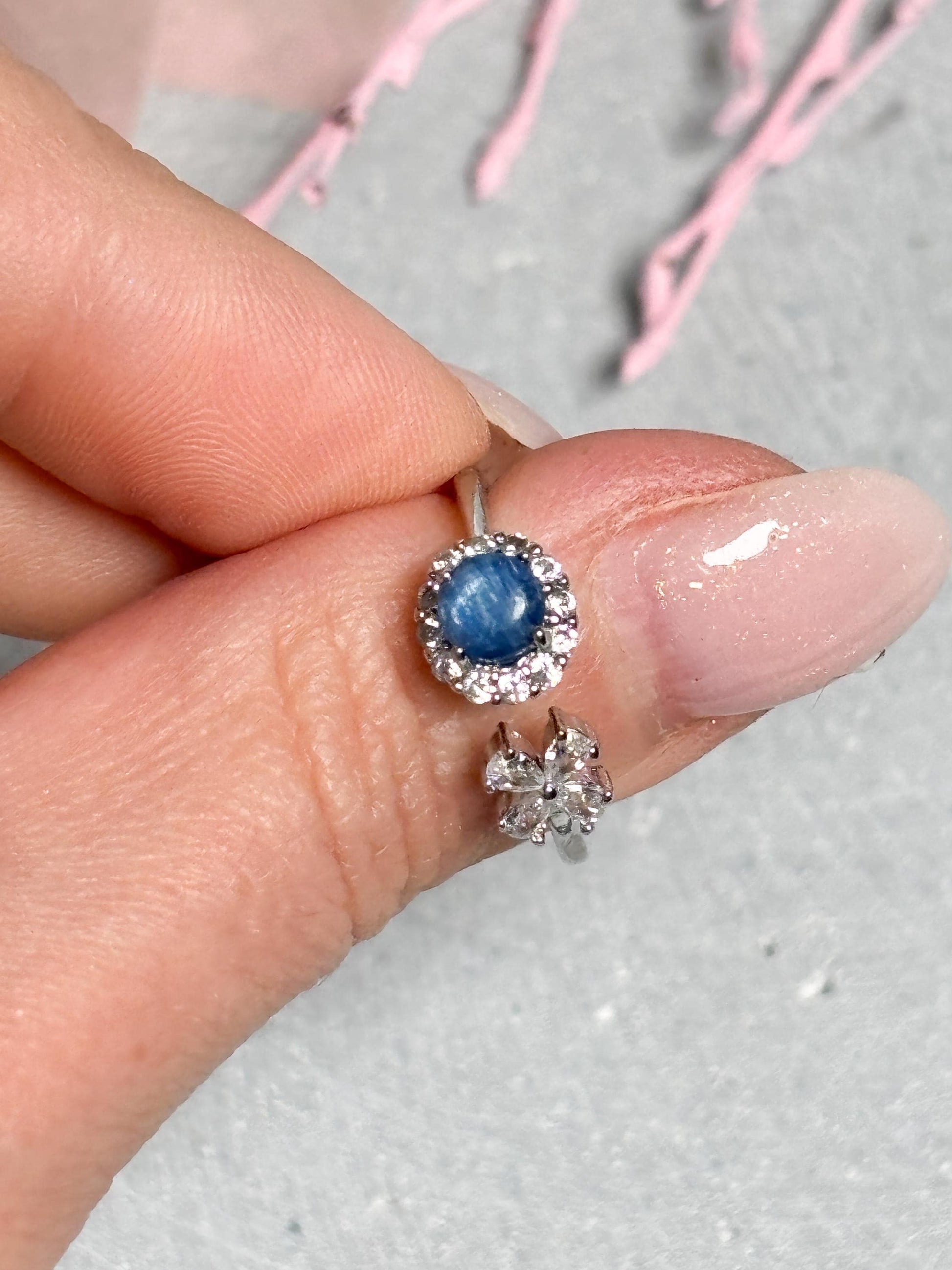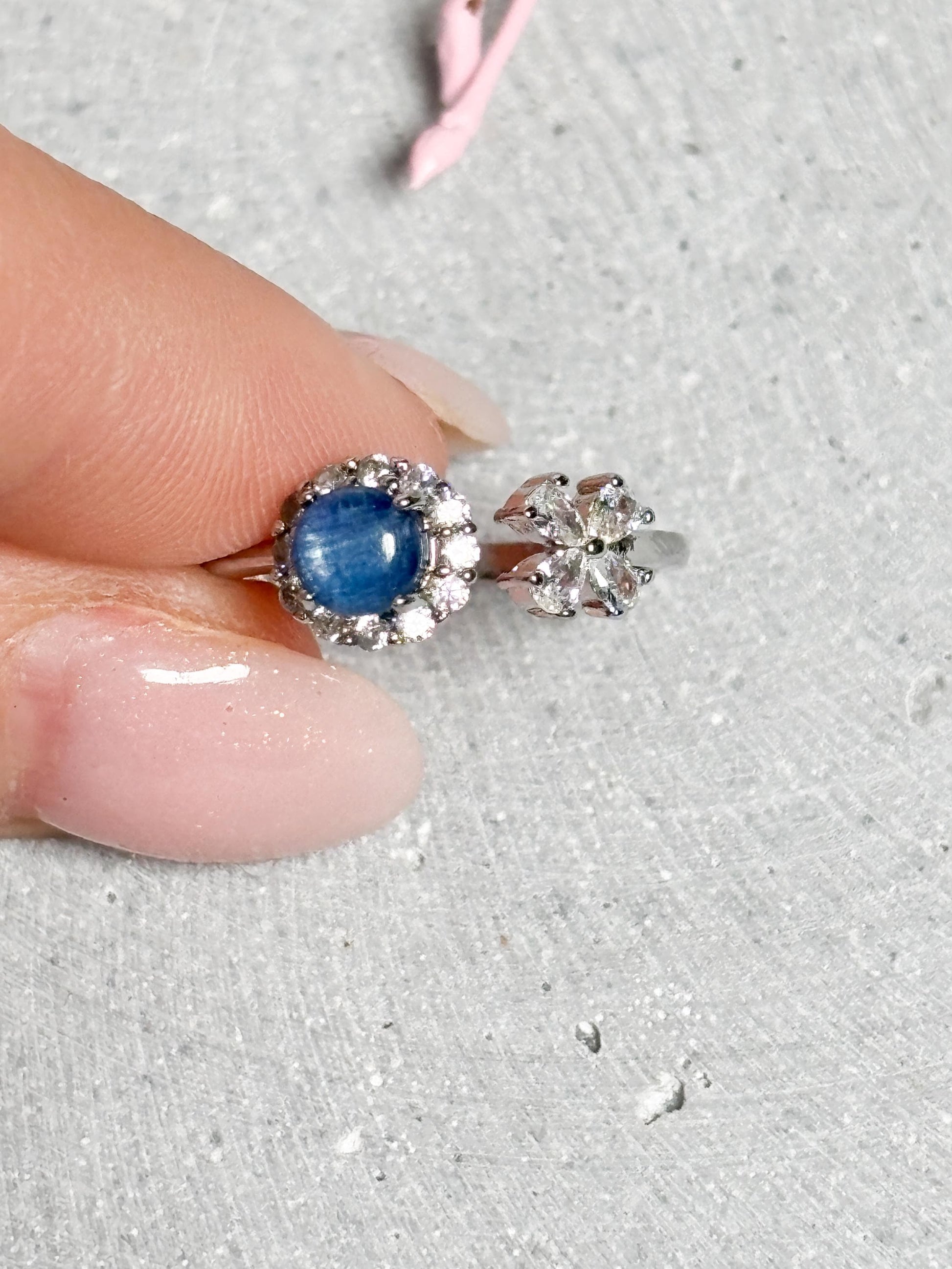 Edelstahl Ring Silber eleganter Ring mit Kyanit Perle, Kristall Schmuck, blauer Edelstein Ring, größenverstellbarer Edelstahl Schmuck