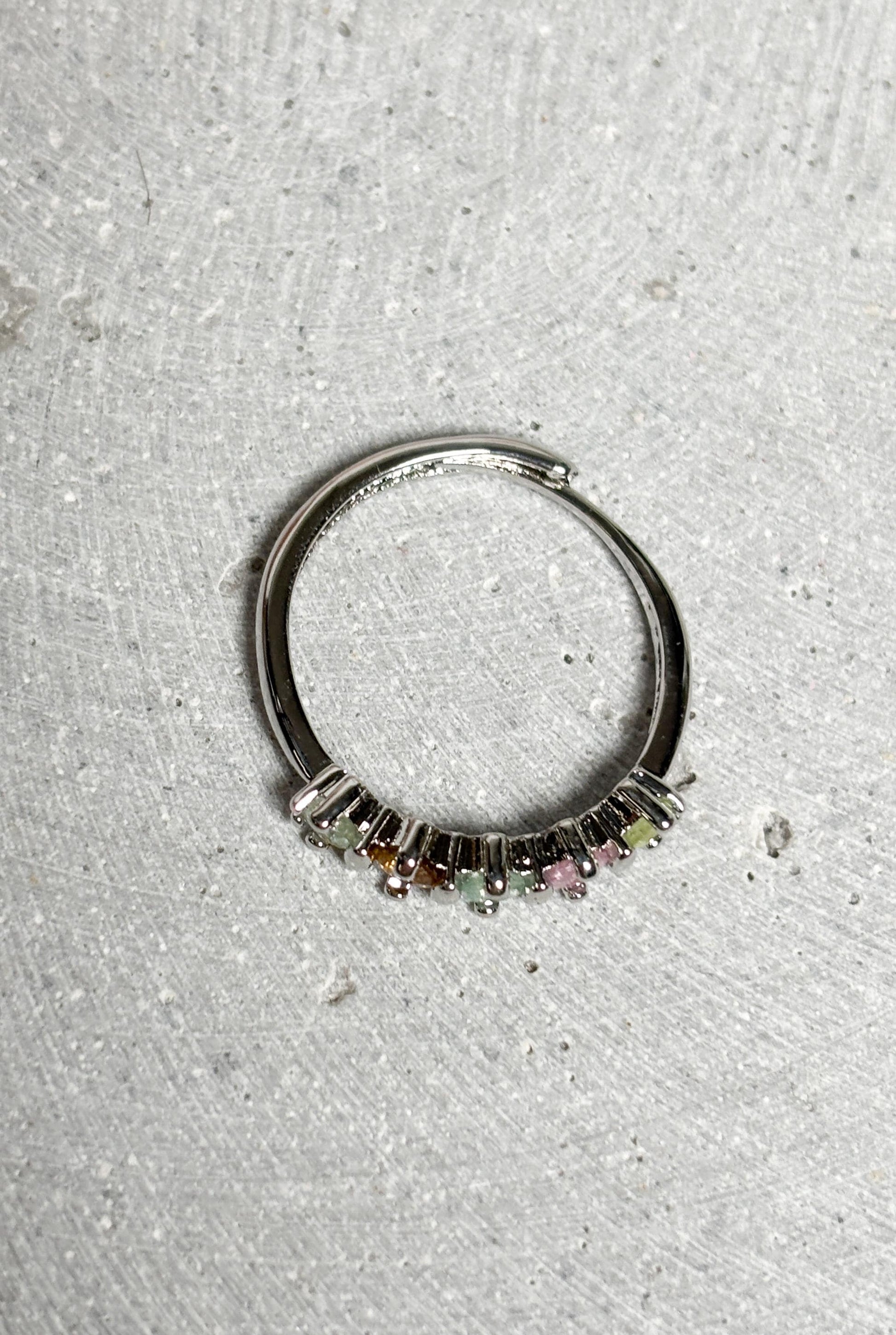 Edelstahl Ring Silber größenverstellbarer Ring mit bunten Turmalin Steinen, Kristall Schmuck, Edelstein Ring, Rainbow Tourmaline Jewelry