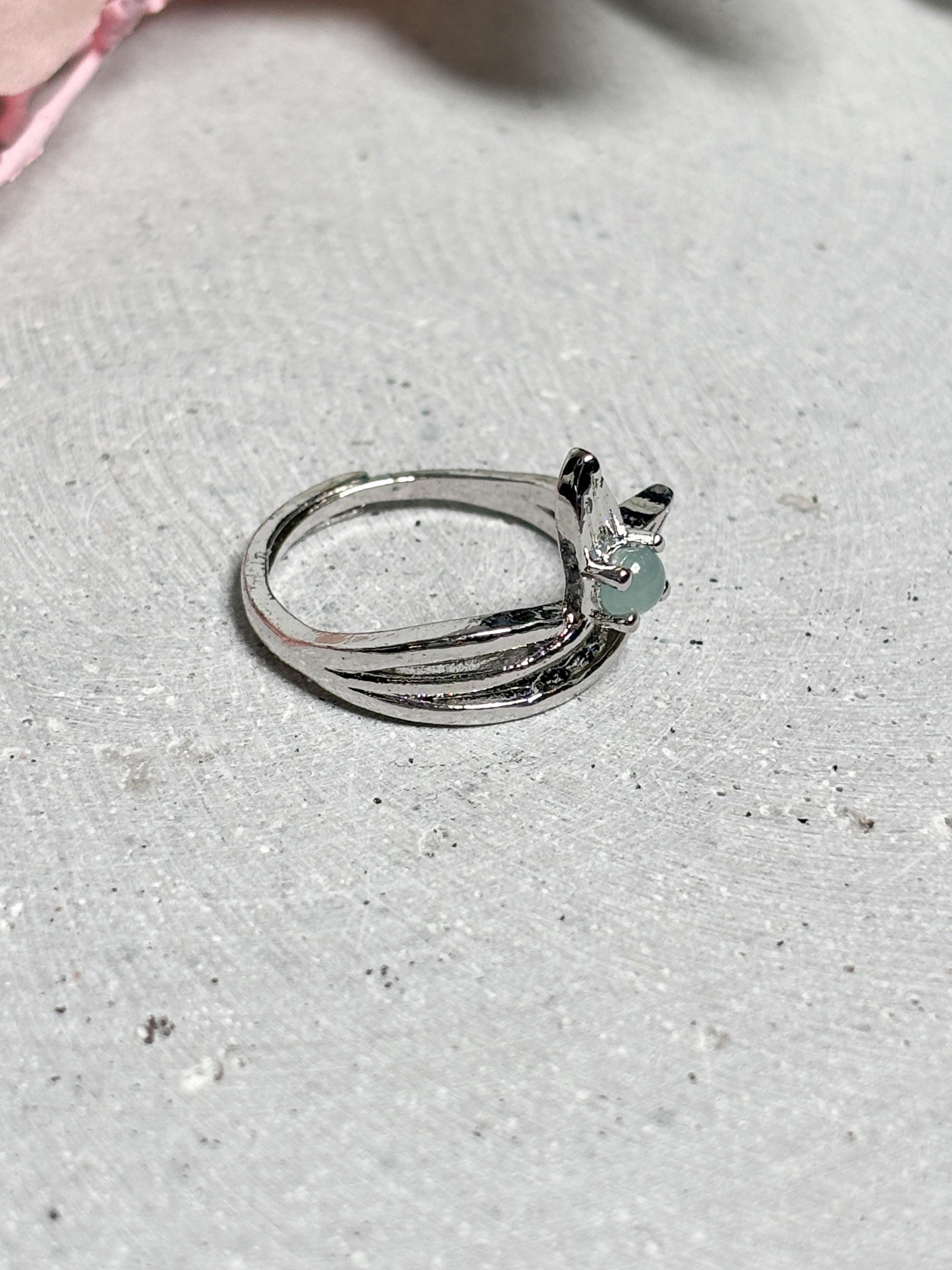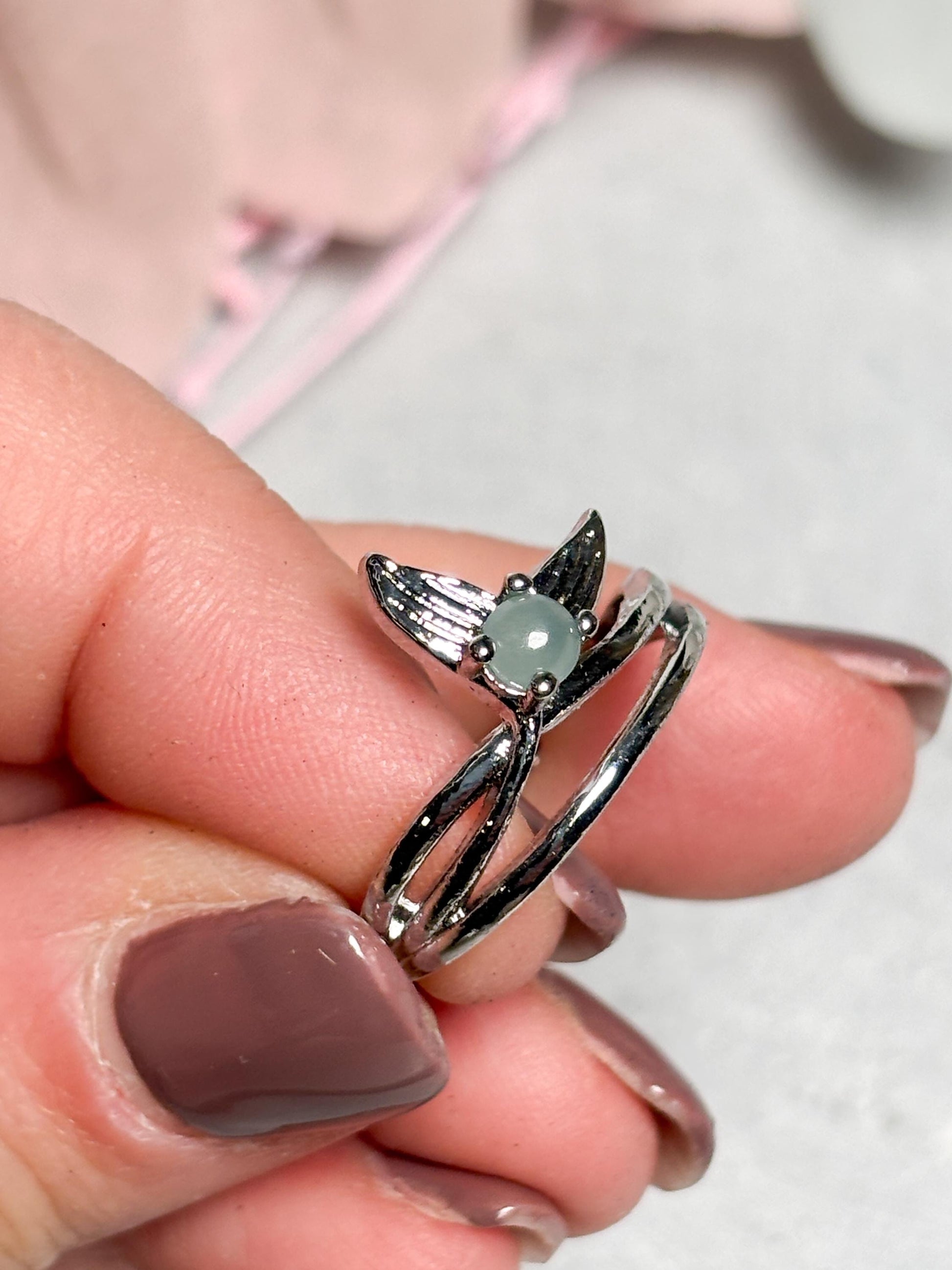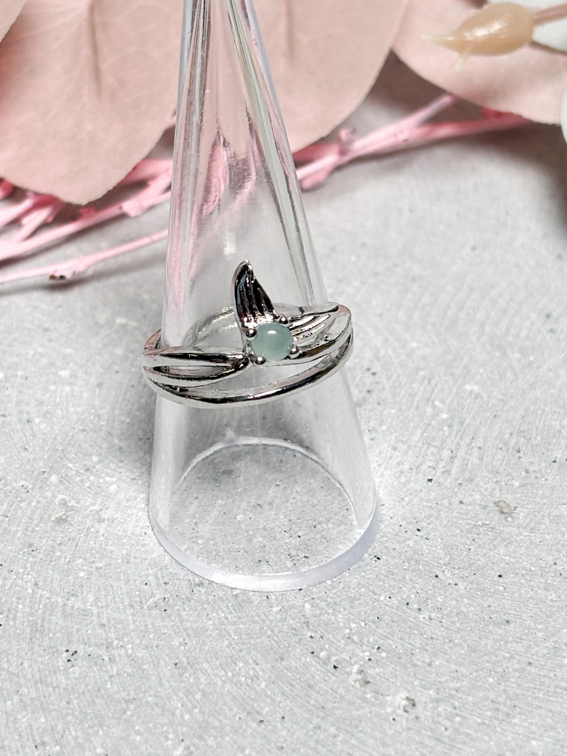 Edelstahlring mit Aquamarin Kugel verstellbarer Ring mit Fischflosse / Meerjungfrauenflosse, Kristallring, Aquamarine Ring