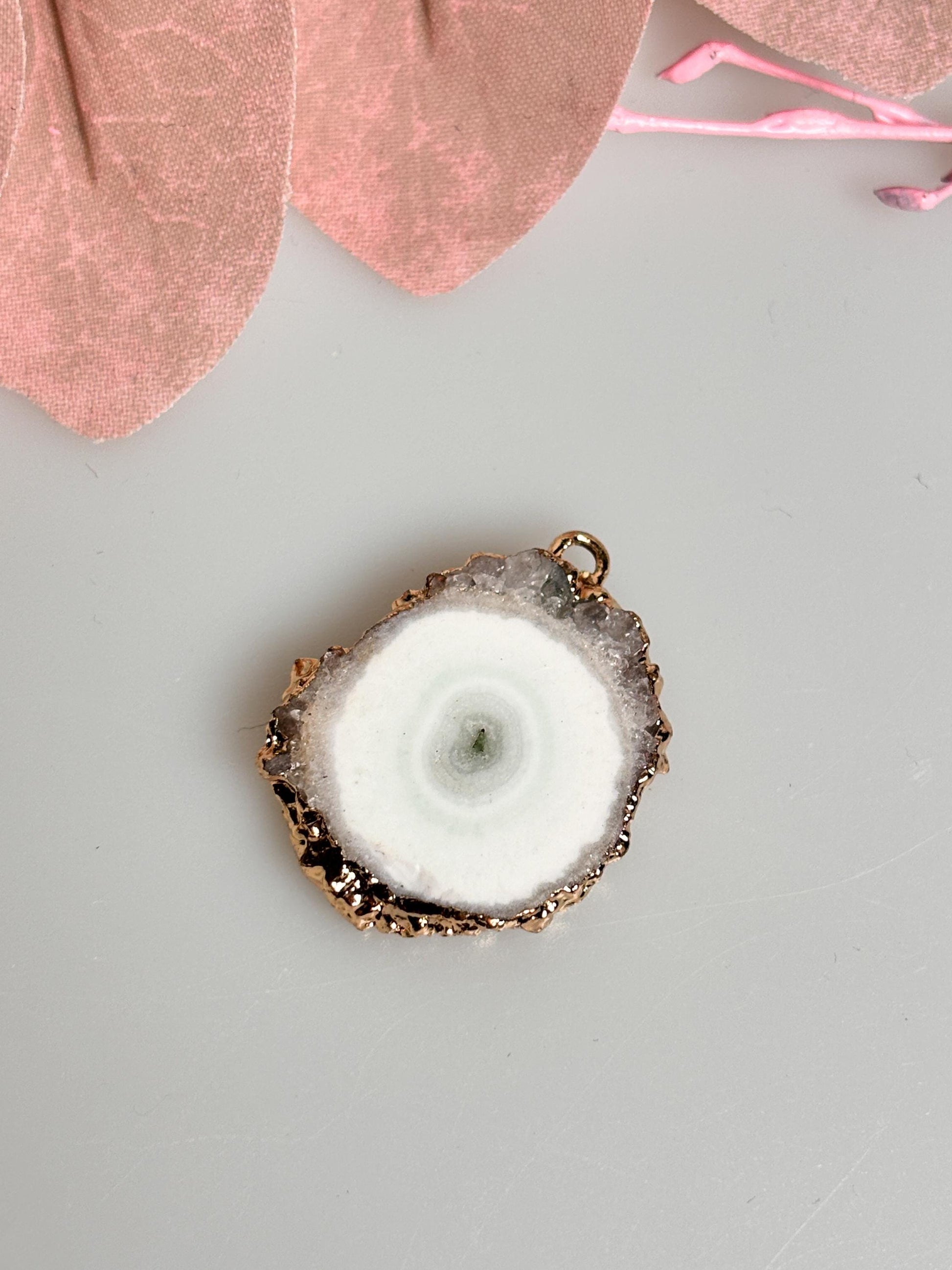 Eleganter Kettenanhänger aus Druzy Achatscheibe mit goldener Umrandung – Einzigartiges Schmuckstück und perfektes Geschenk