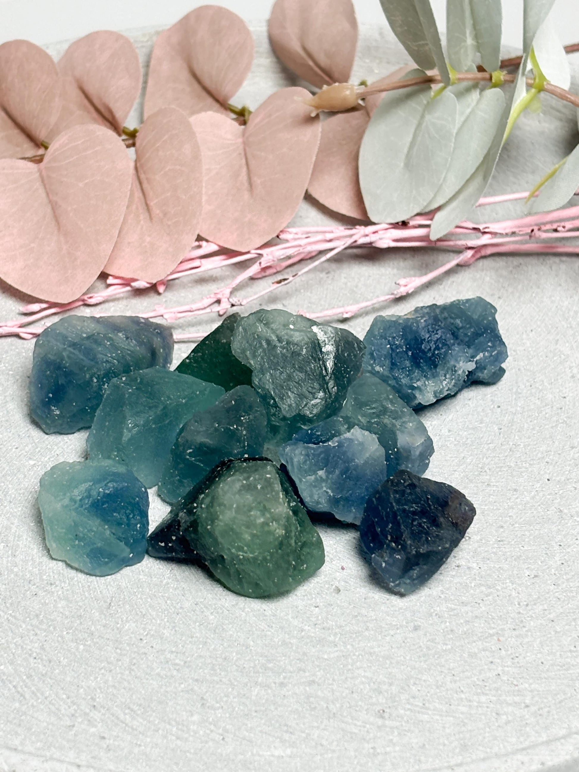 Fluorit Rohsteine 23 cm rohe Fluoritstücke in Blau und Grün, Naturstein Rohstein, Healing Crystal, Fluorite Rough Stones
