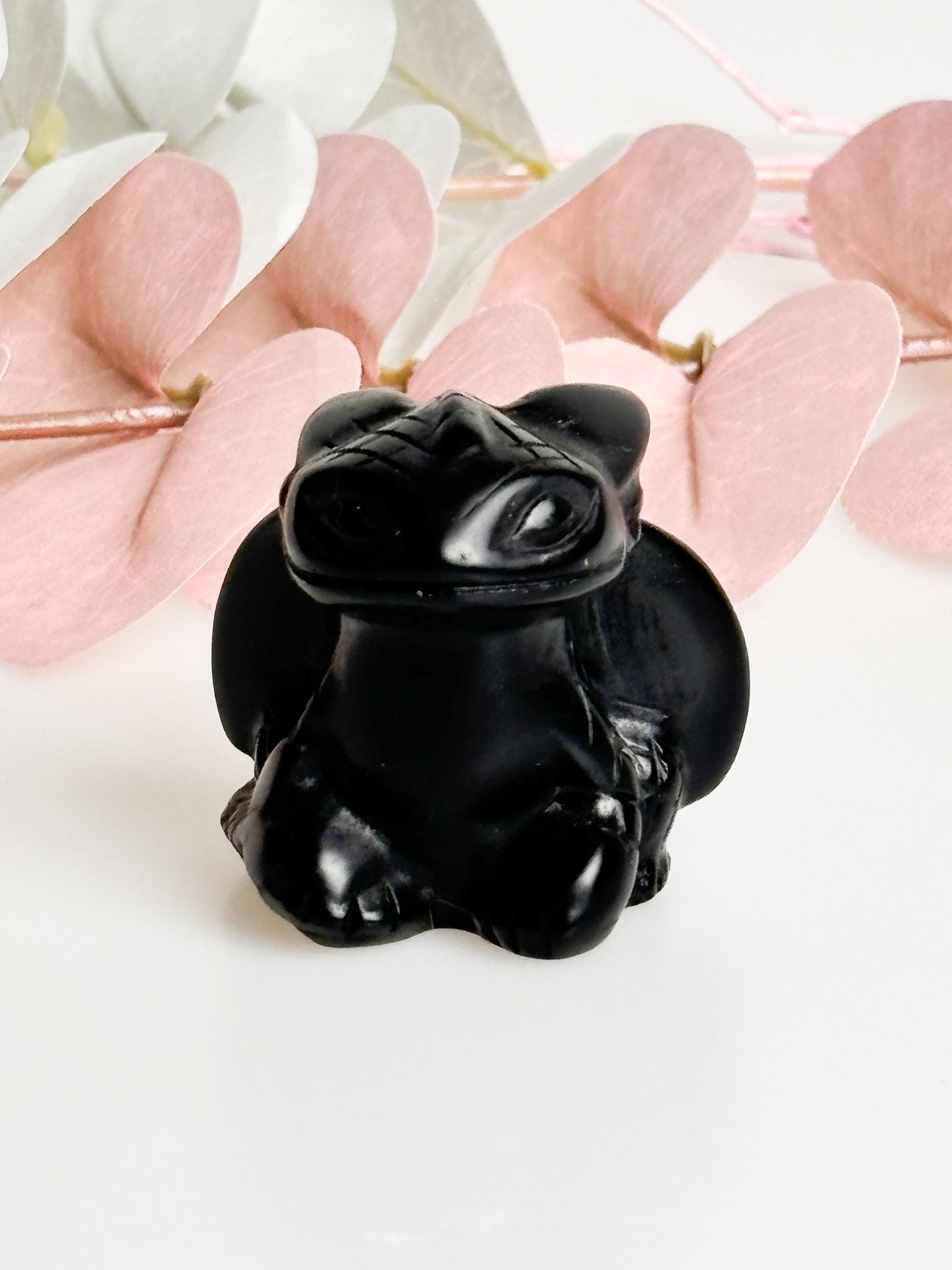 Entdecken Sie unsere beeindruckende Drachenfigur, handgeschnitzt aus schwarzem Obsidian oder Yooperlite. Mit einer Größe von 4,1x3,9 cm und einem Gewicht von 50 g ist diese exquisite Skulptur nicht nur ein wunderschönes Dekorationsstück, sondern auch ein kraftvolles Symbol.