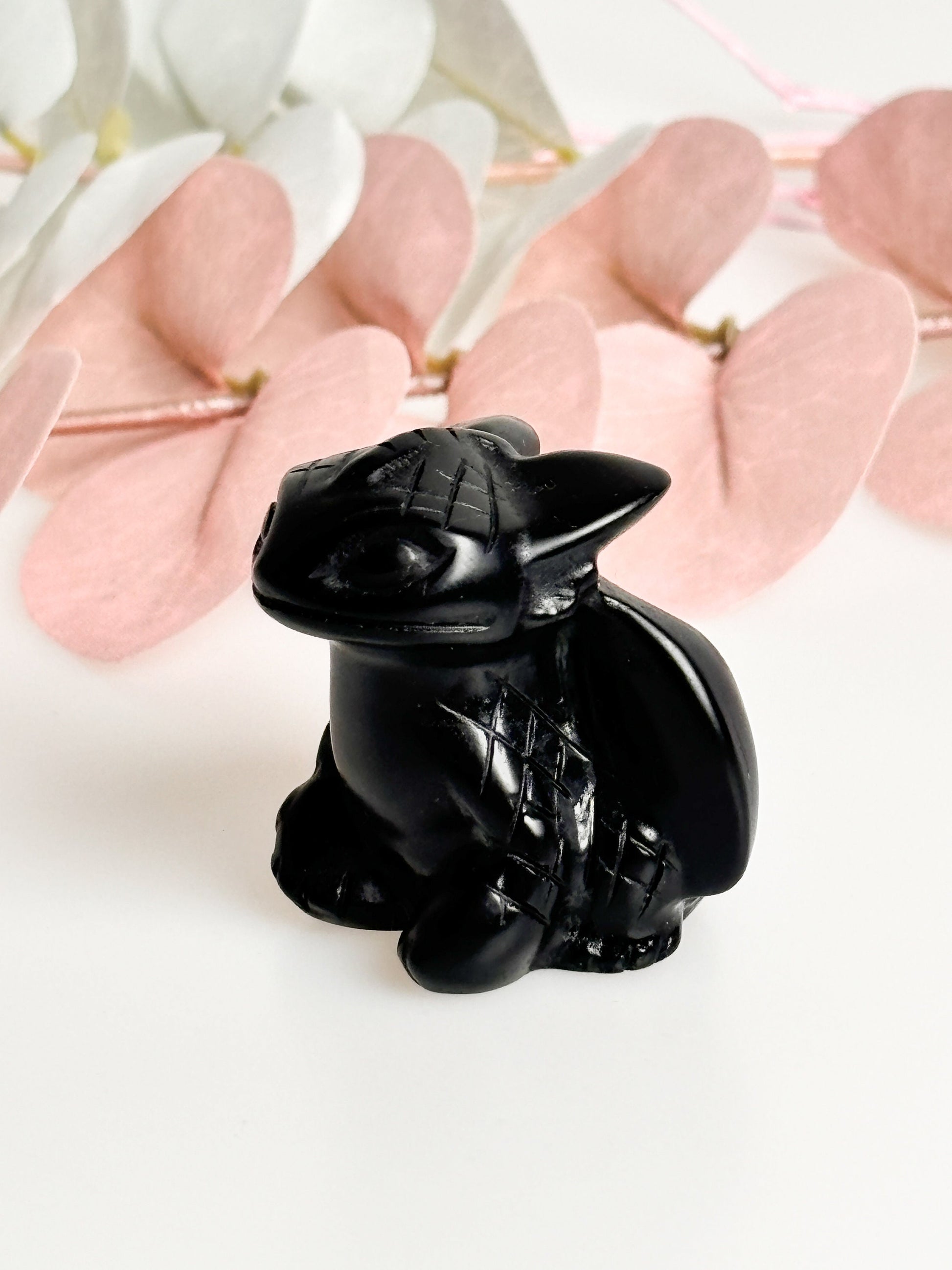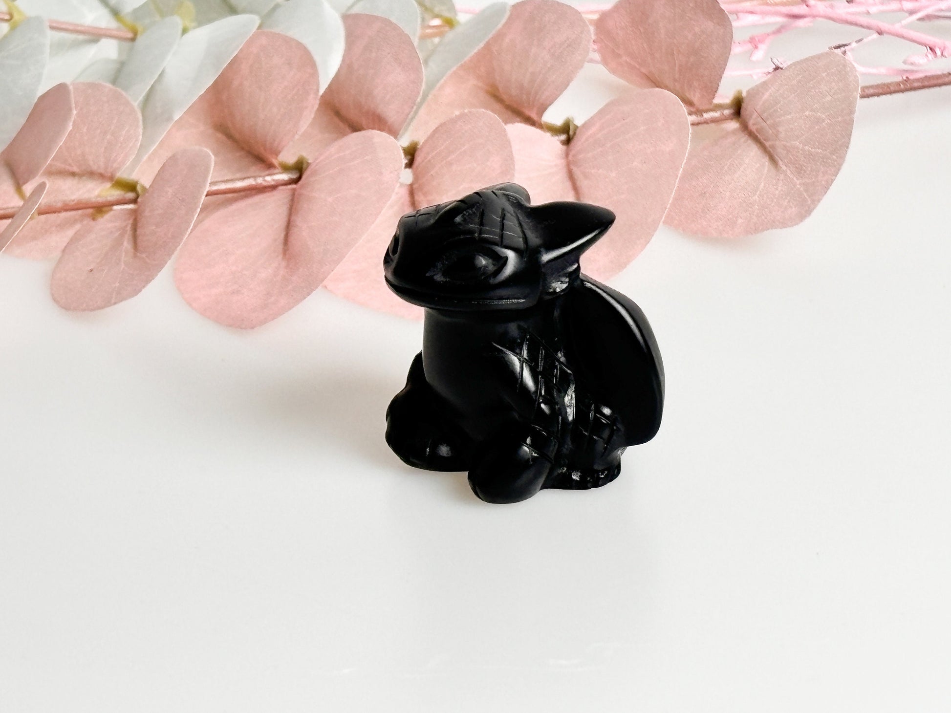 geschnitzte Drachenfigur in schwarzem Obsidian oder Yooperlite – Mystische Dekoration und spiritueller Schutz