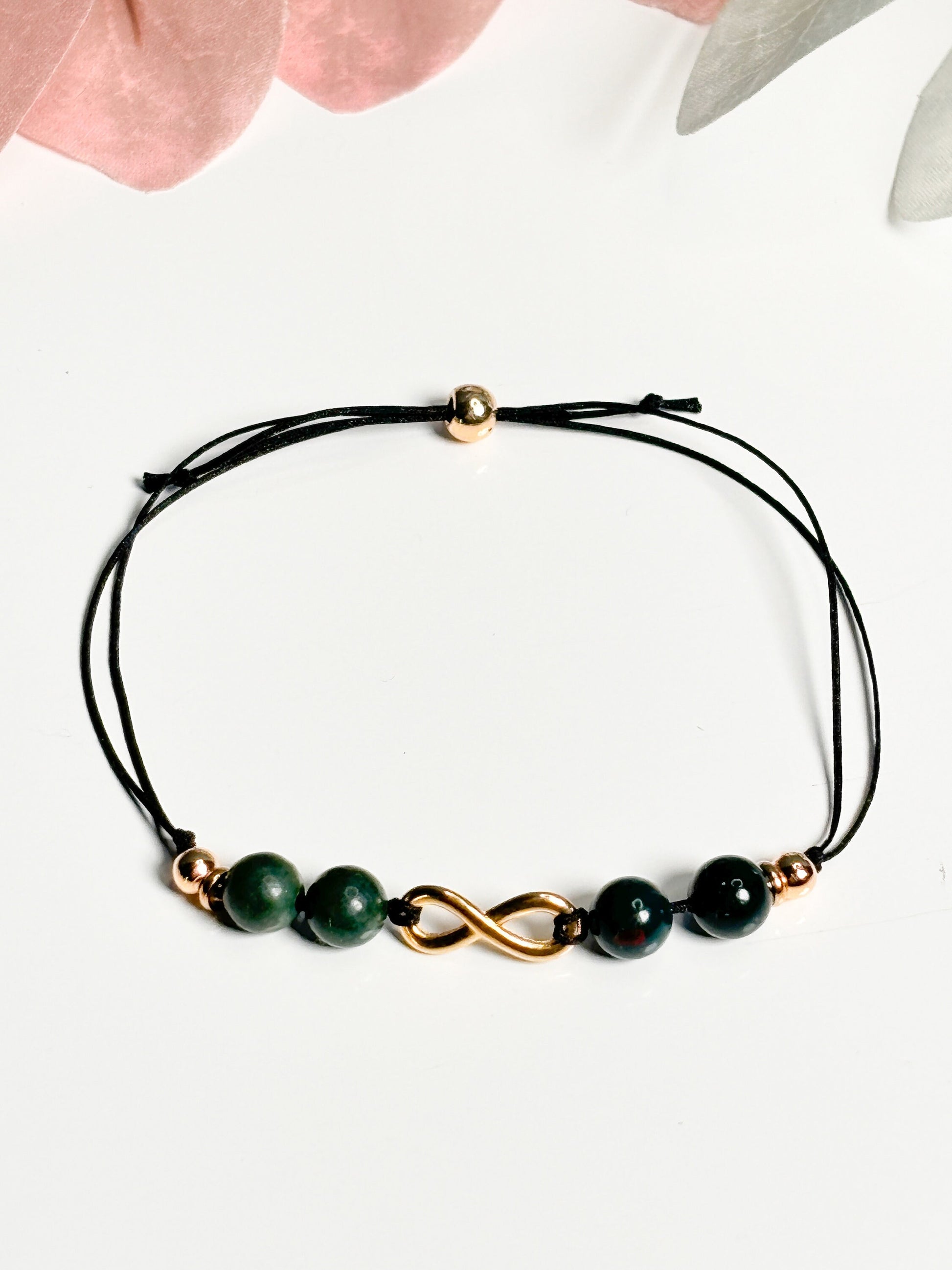 Heliotroparmband mit Unendlichkeitszeichen| 6mm| Verschlussperle|grün|gold| zart