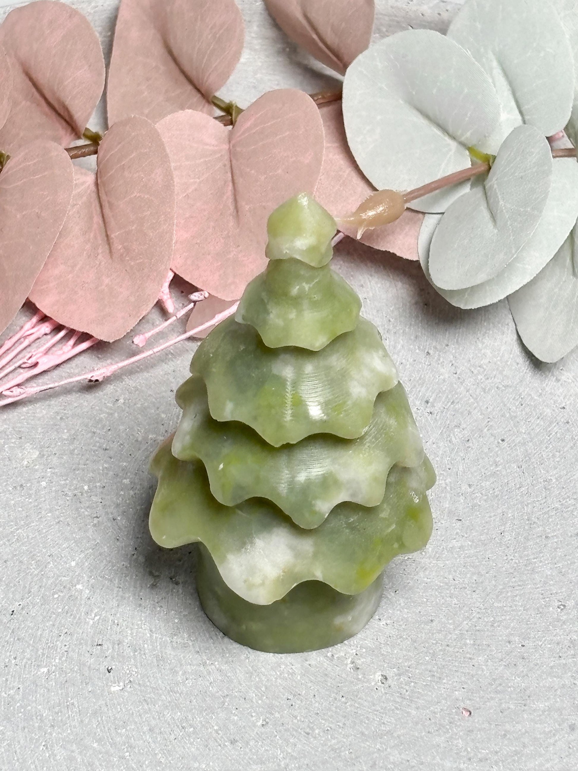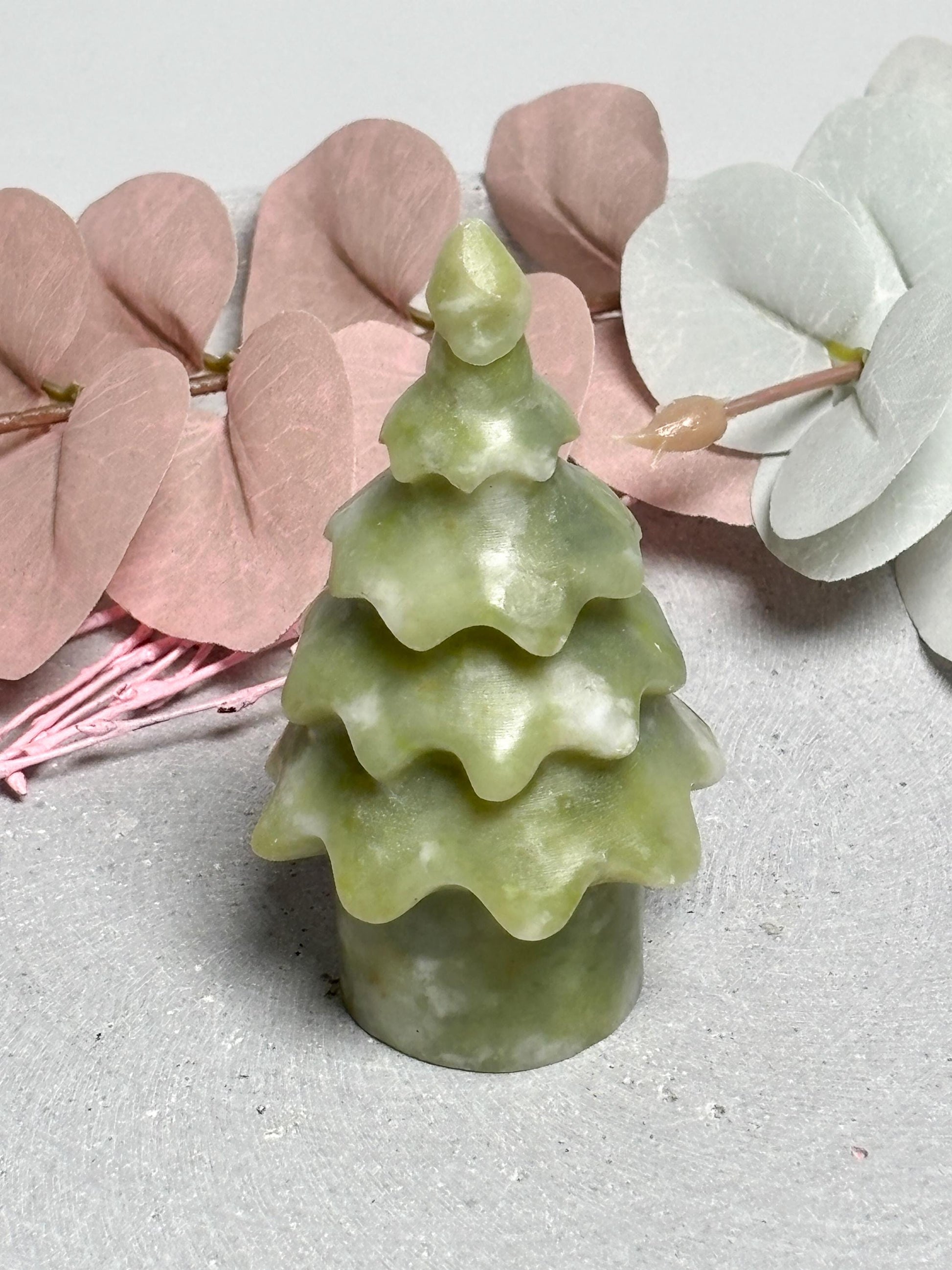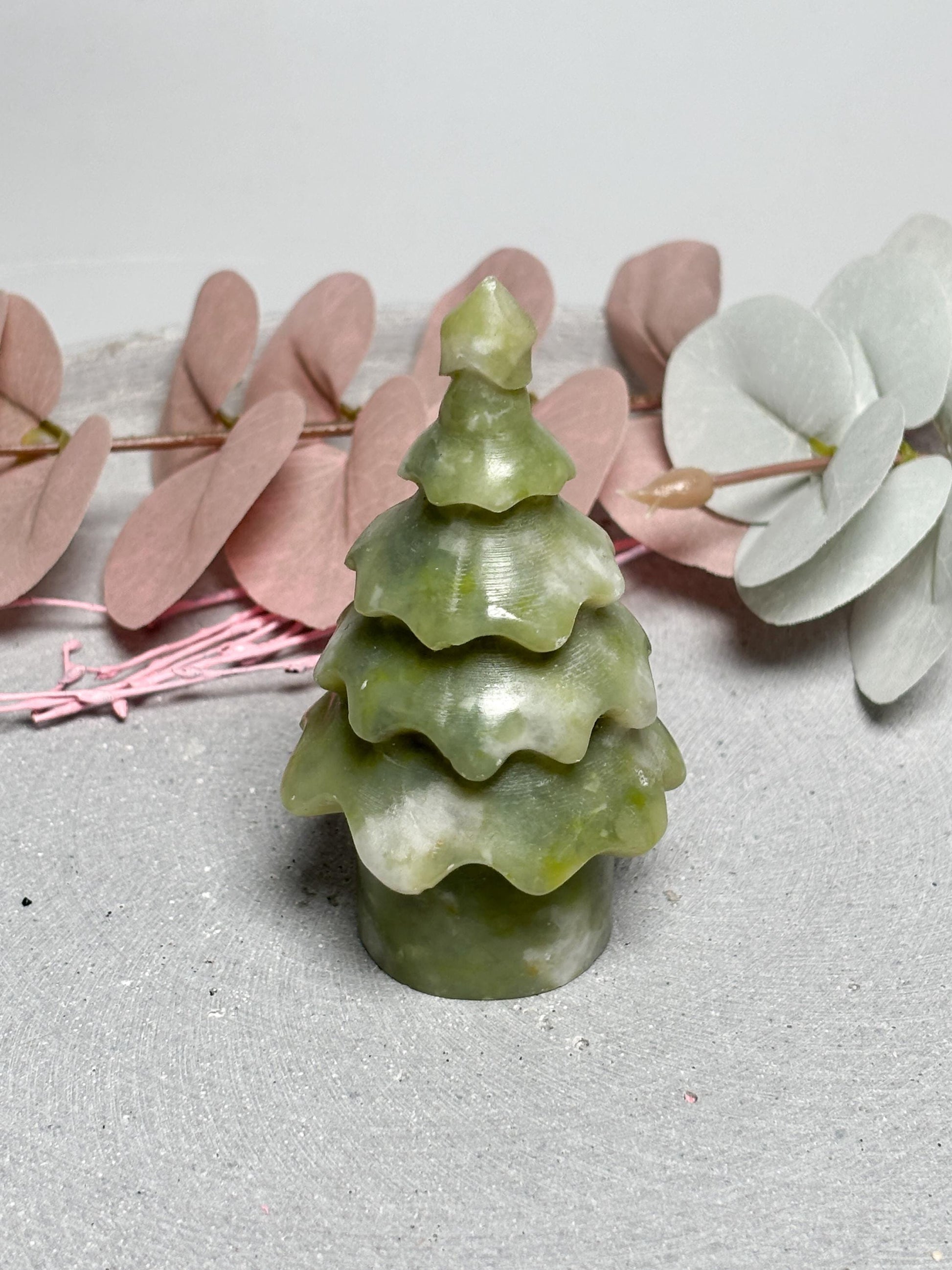 Jade Weihnachtsbaum ca. 8,8 cm Deko Baum aus grüner Jade, Edelstein Figur, Naturstein Deko, Healing Crystal Tree