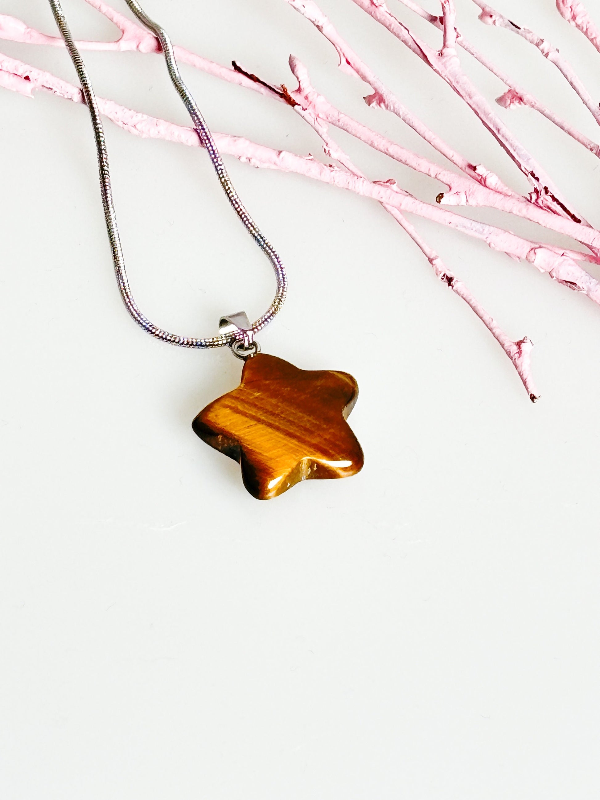 Kettenanhänger mit Öse aus Tigerauge|Stern | Edelstein| Kristall| Heilstein| Stärke
