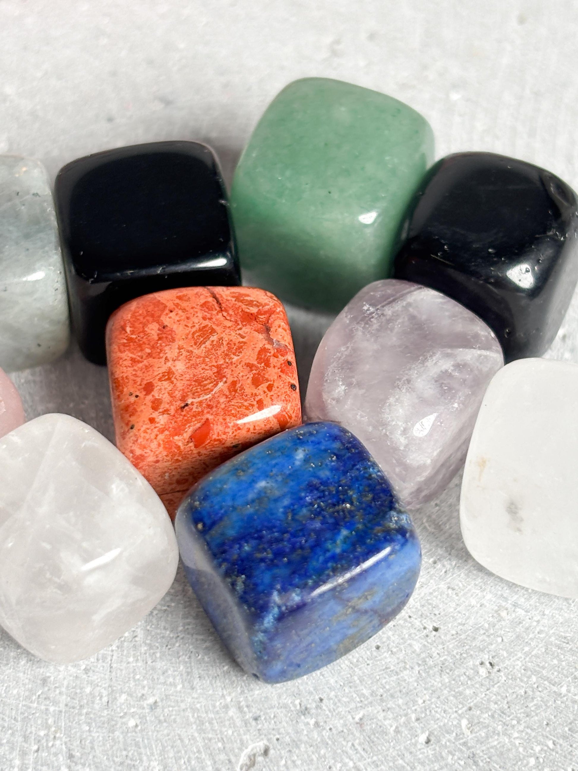 Die kleinen Edelsteinwürfel sind ideal für Meditation, Kristallgitter oder als hübsches Dekoelement. Ob auf dem Schreibtisch, im Regal oder als Glücksstein in der Tasche – sie bringen Harmonie und positive Energie in deinen Alltag.