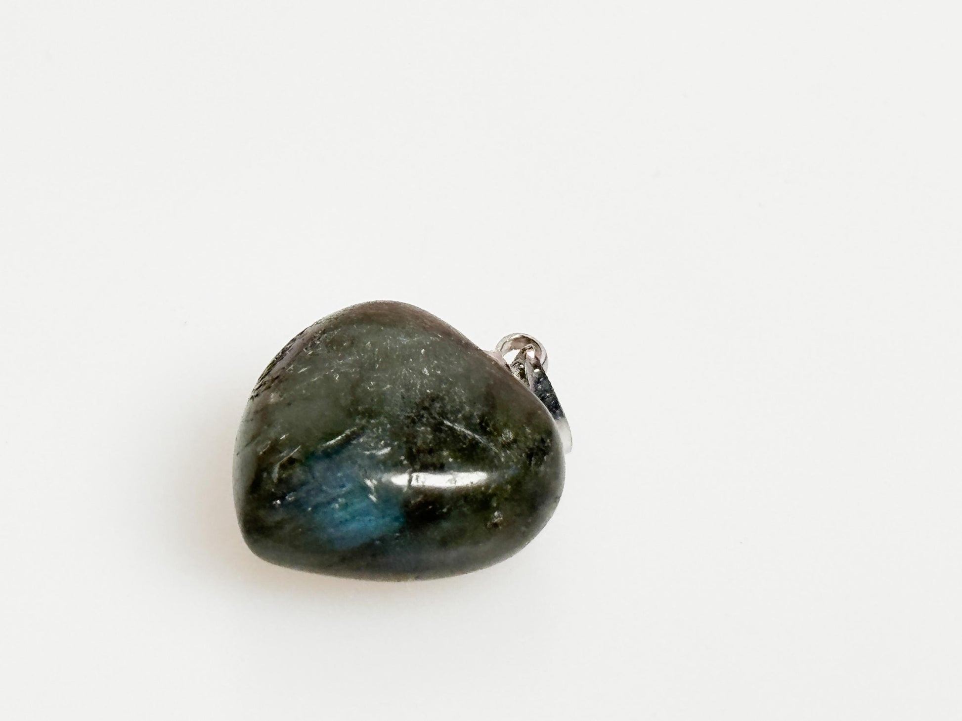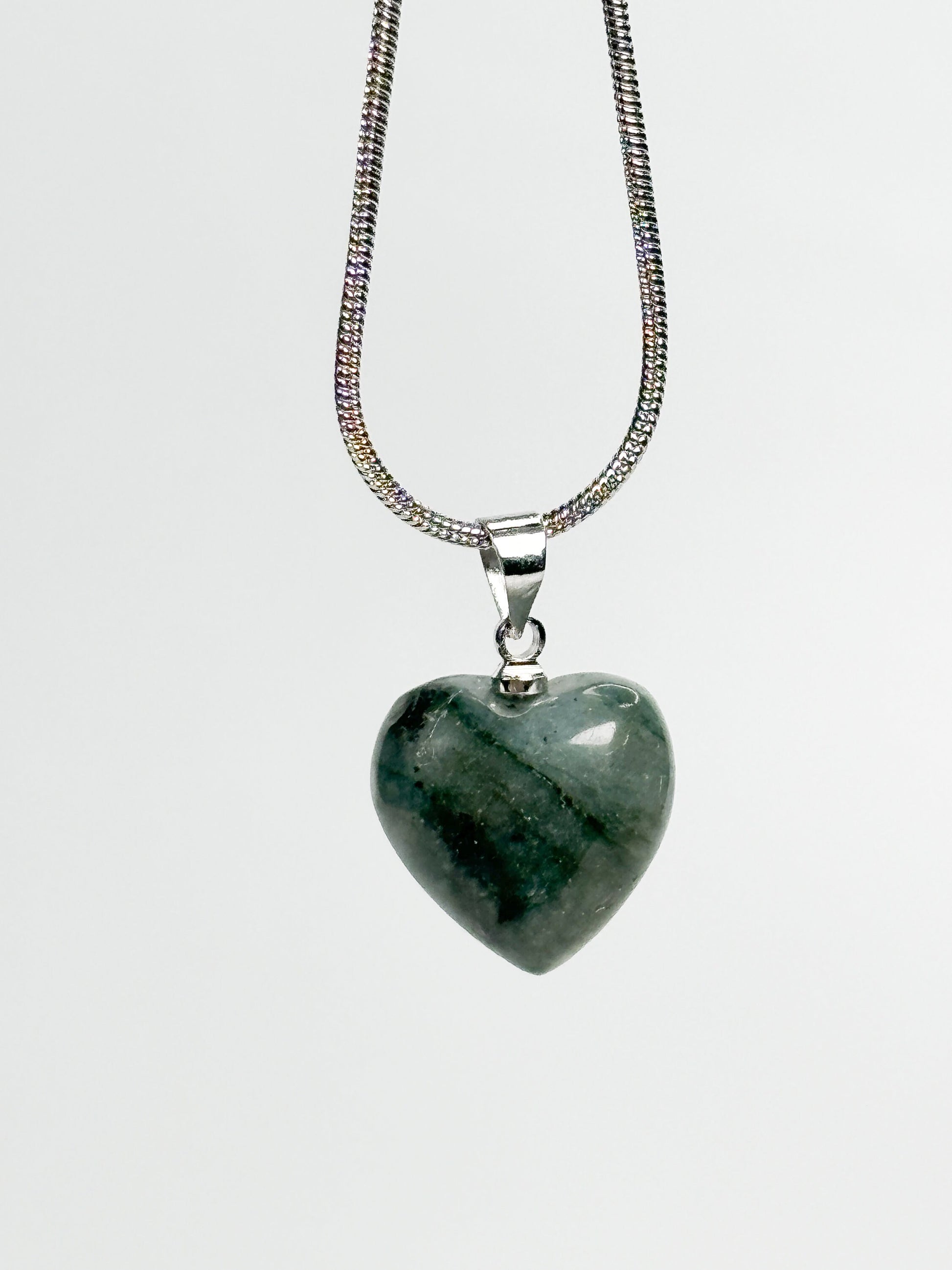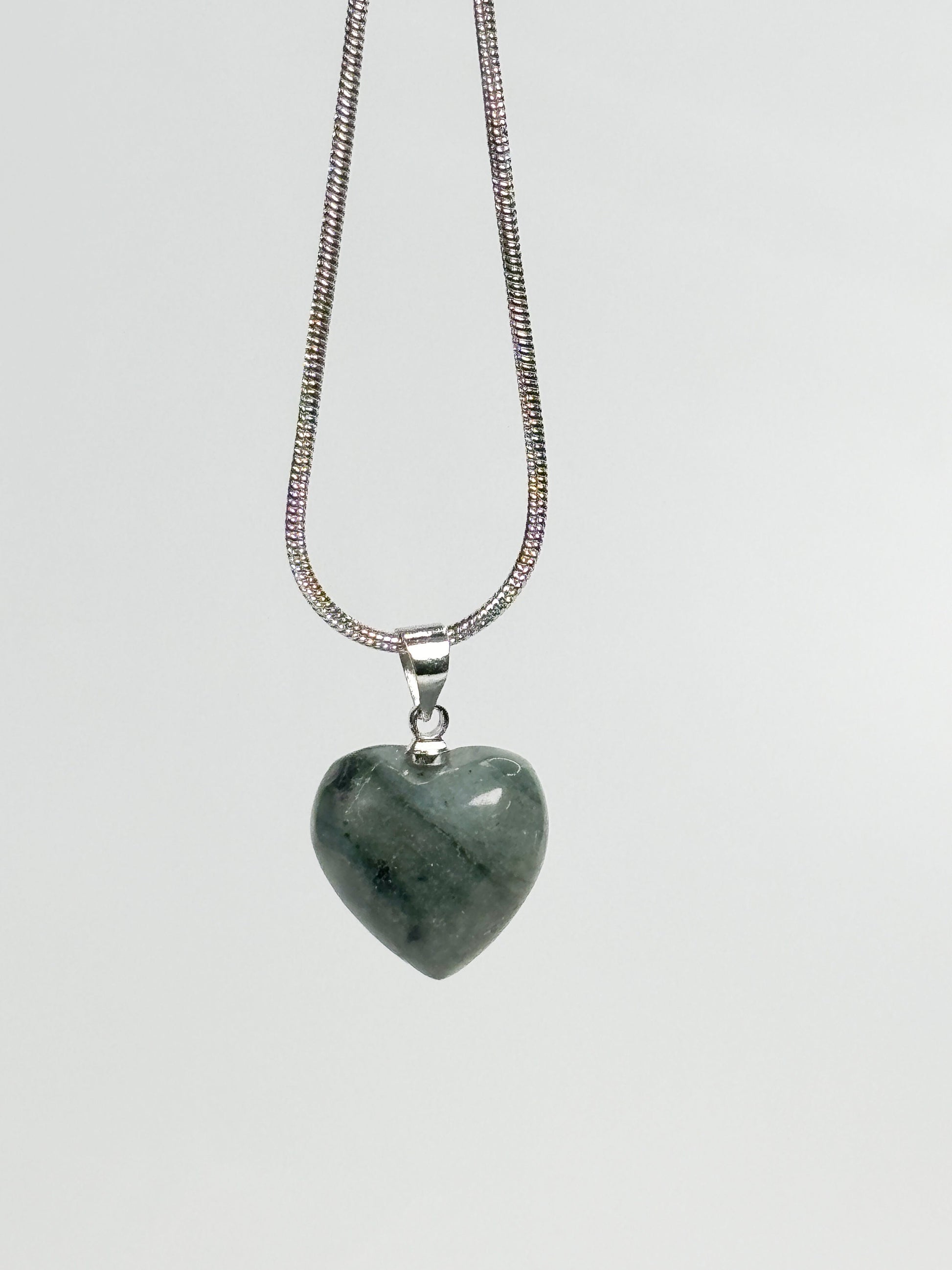 Labradorit Kettenanhänger Herz klein/ grün grau/ silber/ Heilstein/ Kristall/ Erdung
