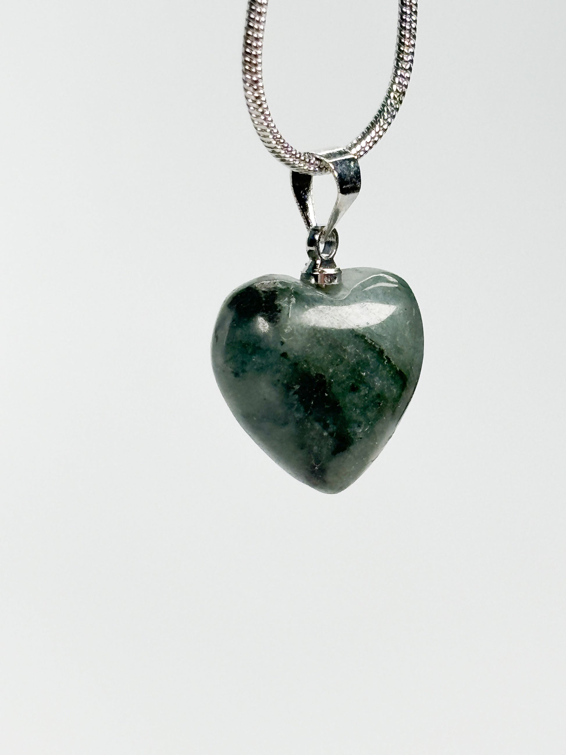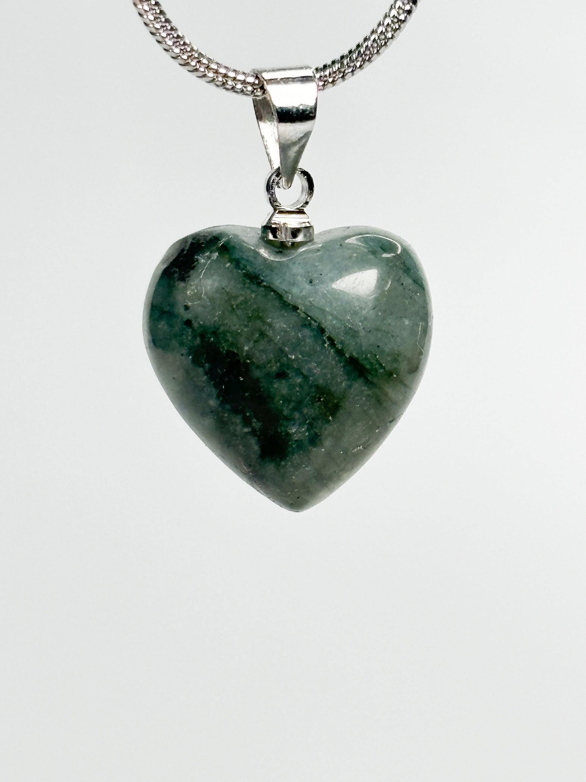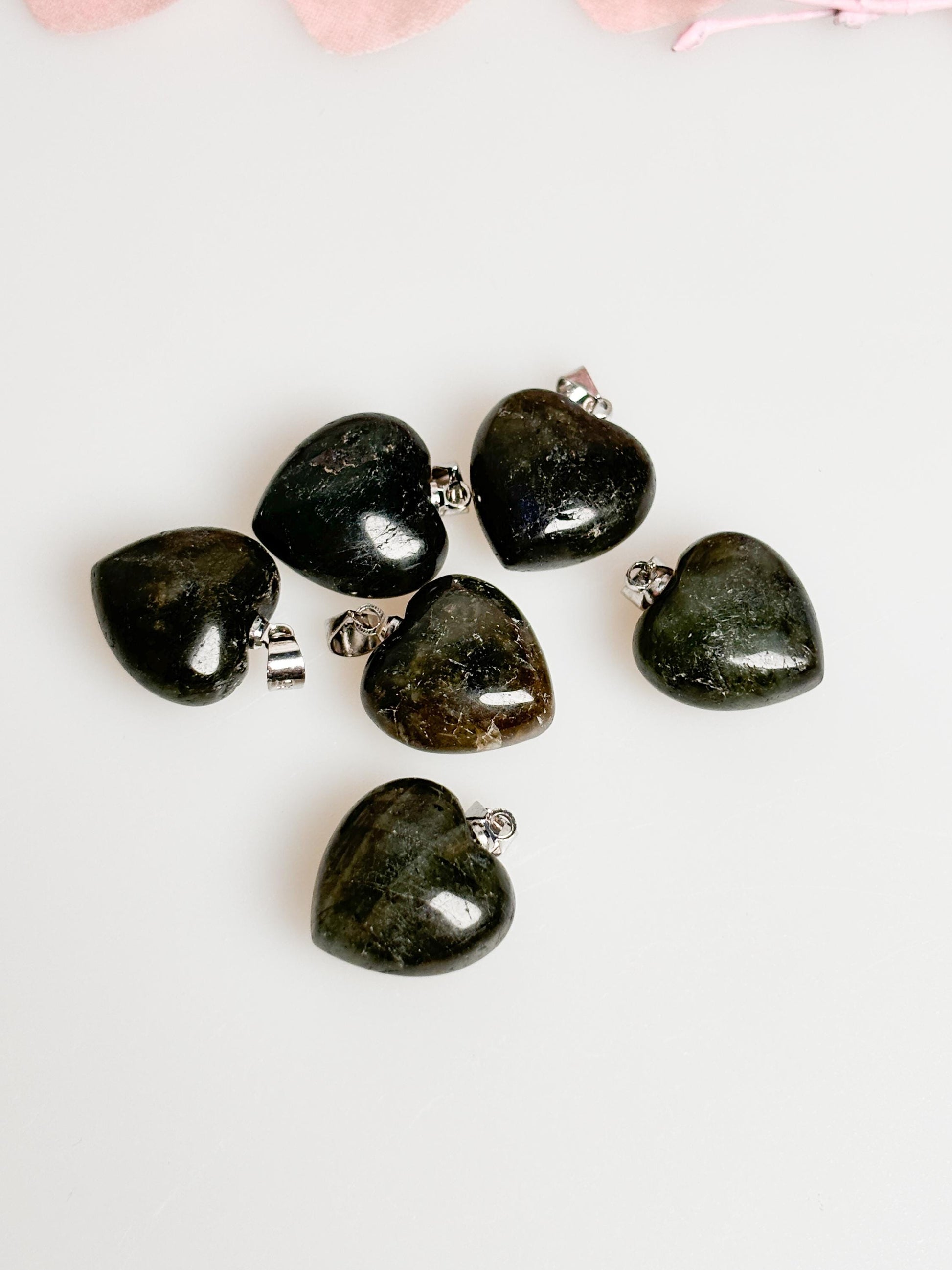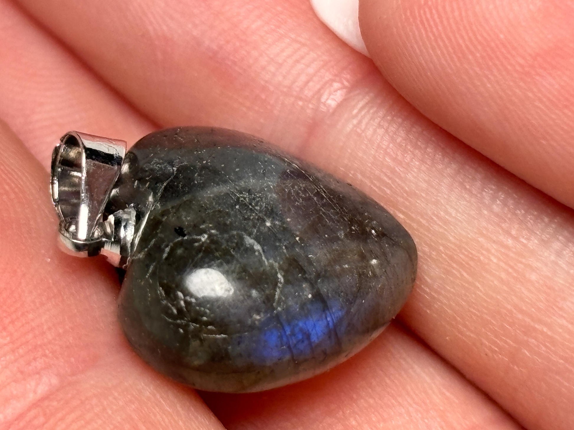 Labradorit Kettenanhänger Herz klein/ grün grau/ silber/ Heilstein/ Kristall/ Erdung