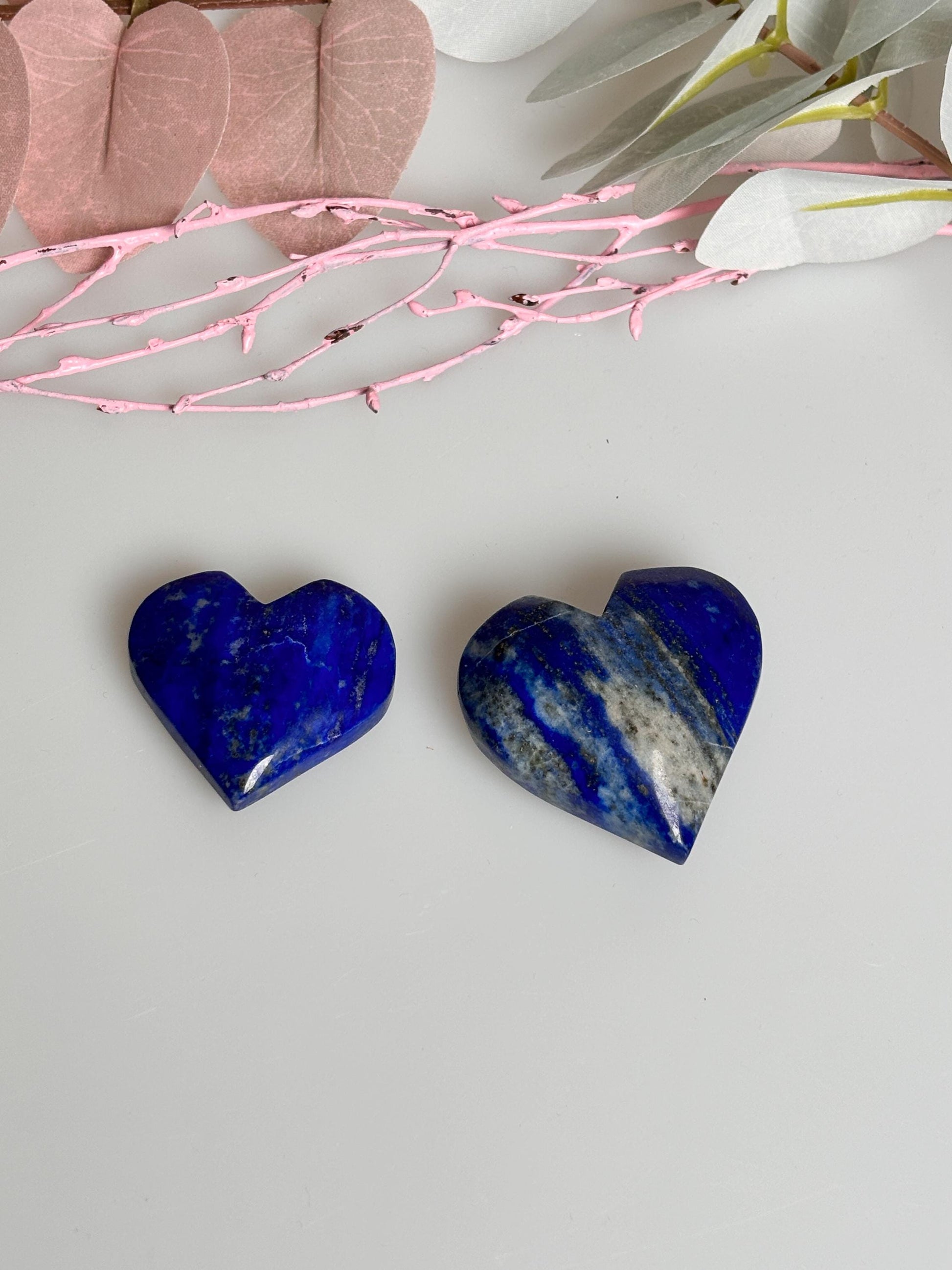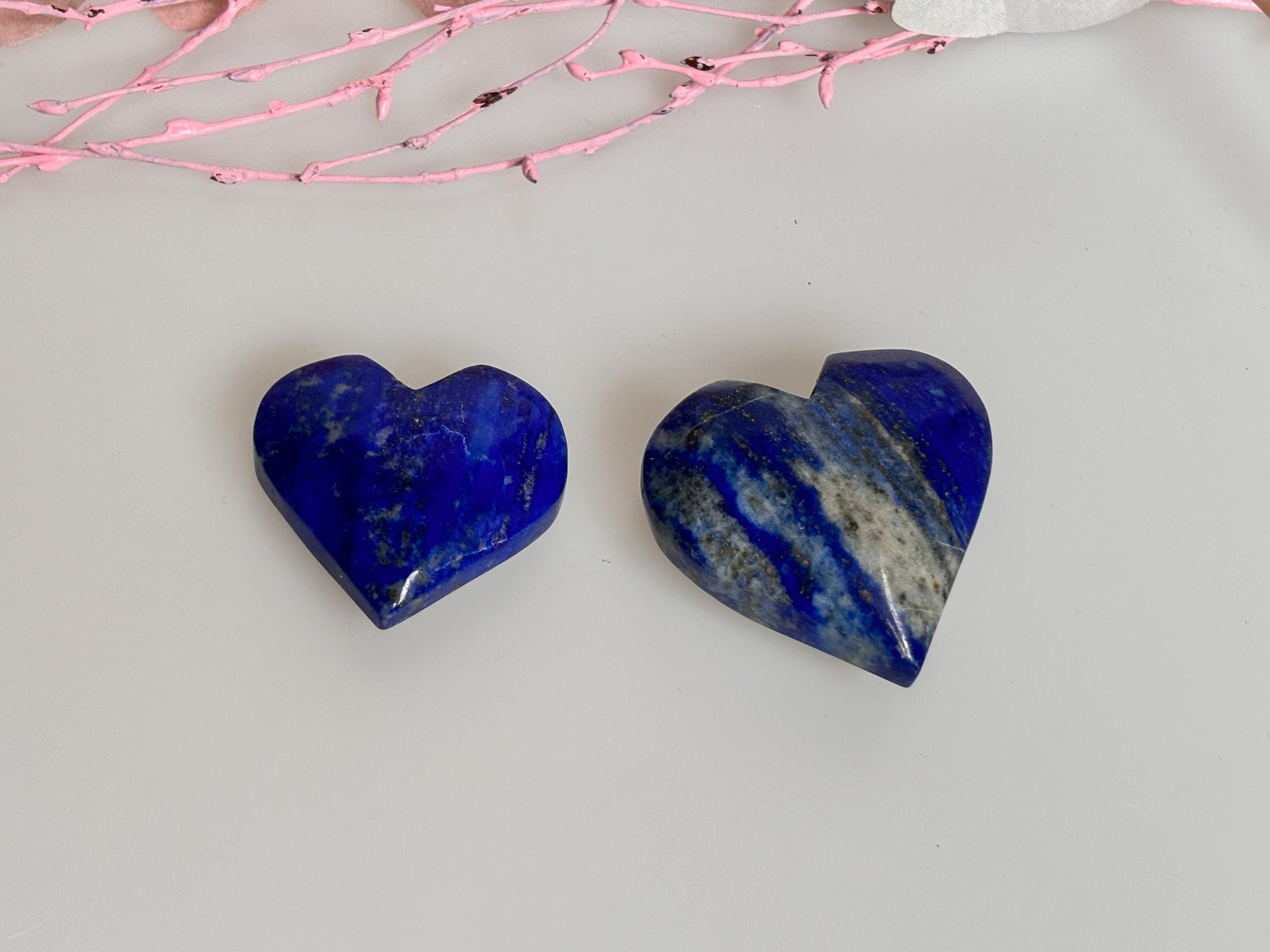 Diese wunderschönen Lapislazuli-Herzen sind einzigartige Deko-Objekte, die den Raum mit ihrem tiefblauen Farbton und goldenen Pyrit-Highlights verzaubern. Jedes Herz ist ein handverlesenes Einzelstück, das die Magie und Kraft der Natur einfängt und perfekt für Sammler, spirituelle Rituale oder als Geschenk für Kristallliebhaber ist. Die Herzen sind in zwei Größen verfügbar: